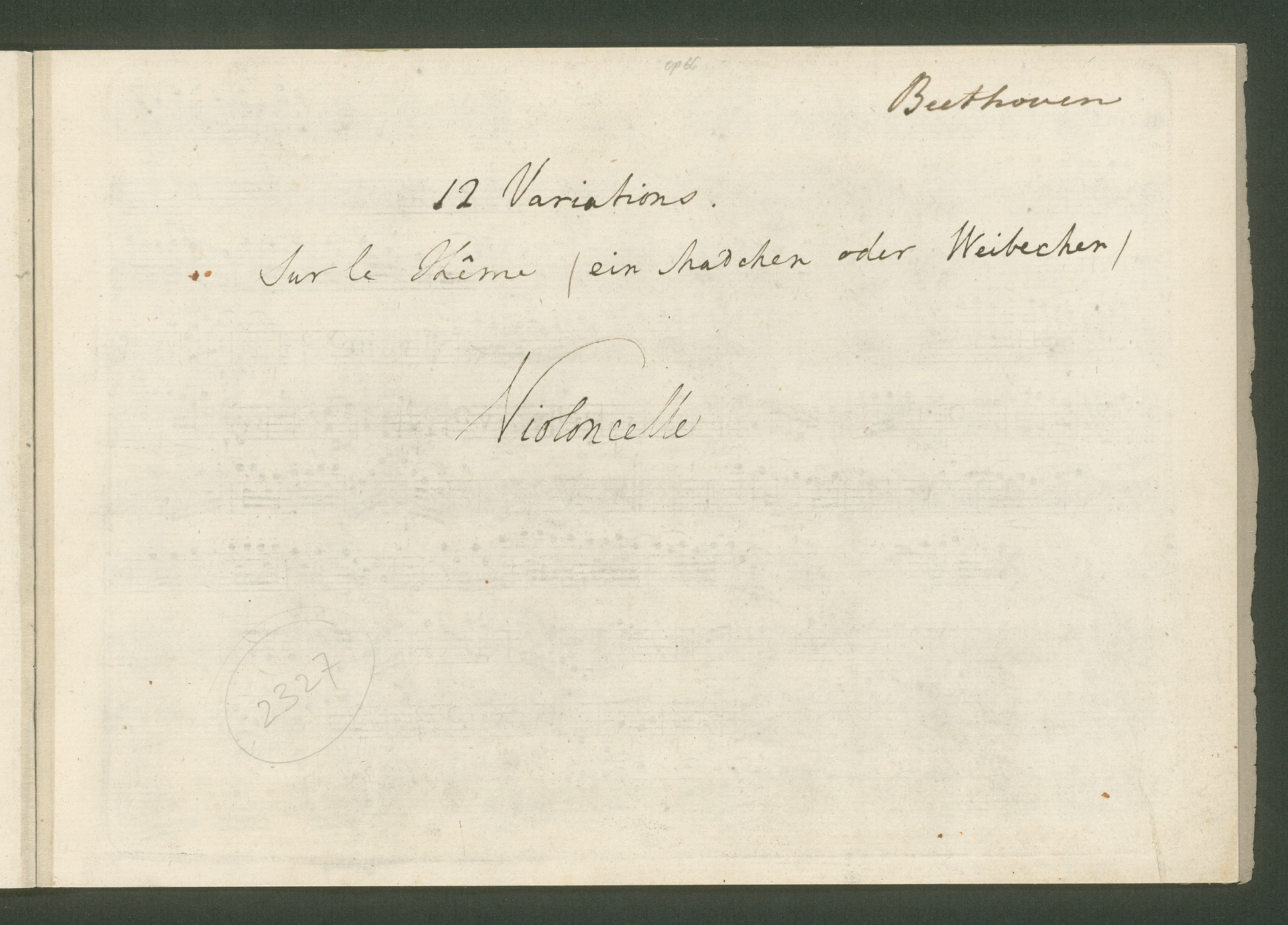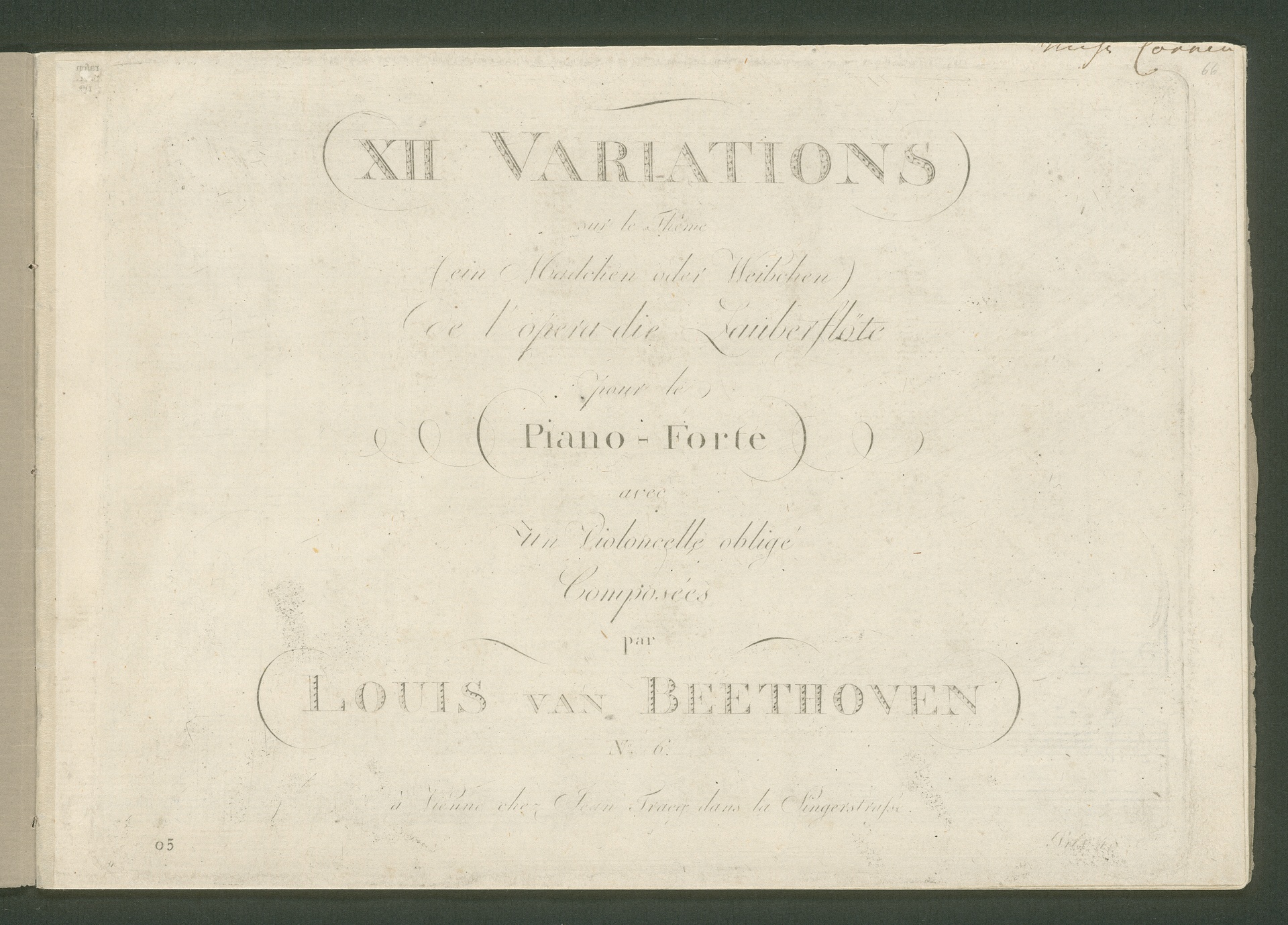 Ludwig van Beethoven, Variationen über "Ein Mädchen oder Weibchen" aus Wolfgang Amadeus Mozarts Oper "Die Zauberflöte" für Klavier und Violoncello (F-Dur) op. 66, Stimmen, Traeg, 05