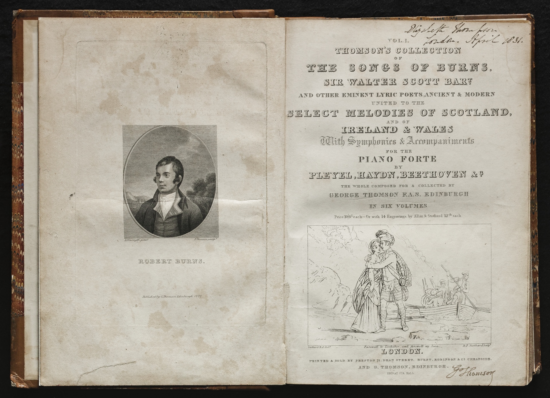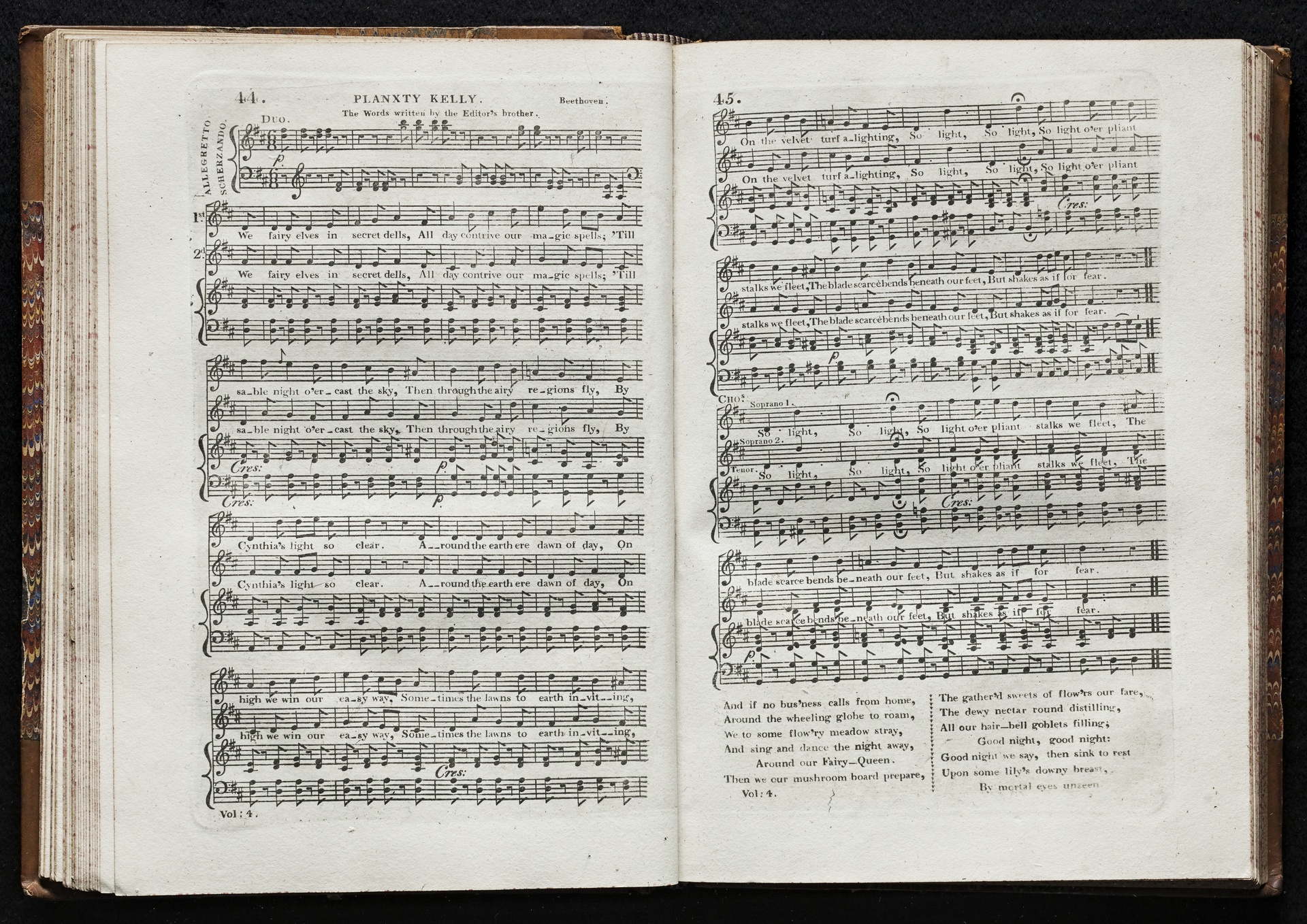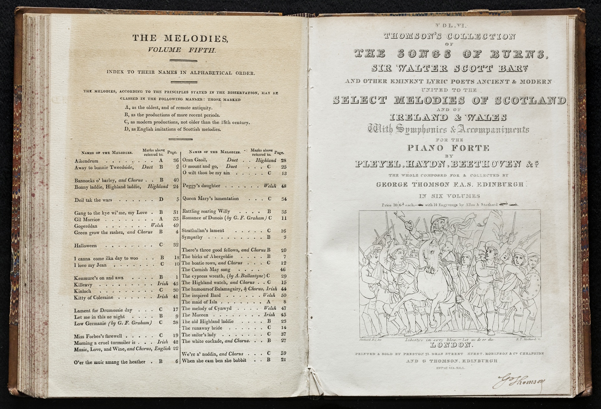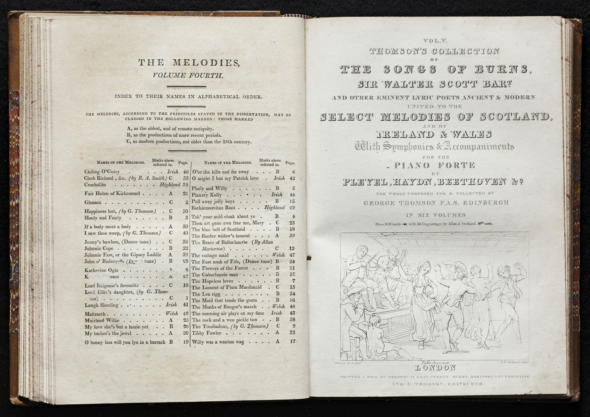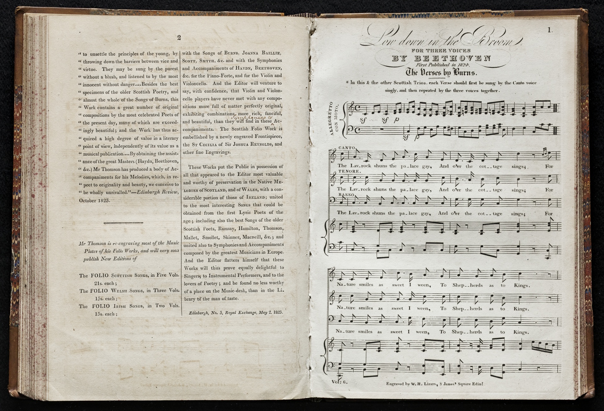 Ludwig van Beethoven, Sammlung von britischen Volksliedern für eine oder mehrere Singstimmen, Violine, Violoncello und Klavier aus op. 108, WoO 152-153, WoO 155-157 und von anderen Komponisten, Klavierpartitur, Thomson