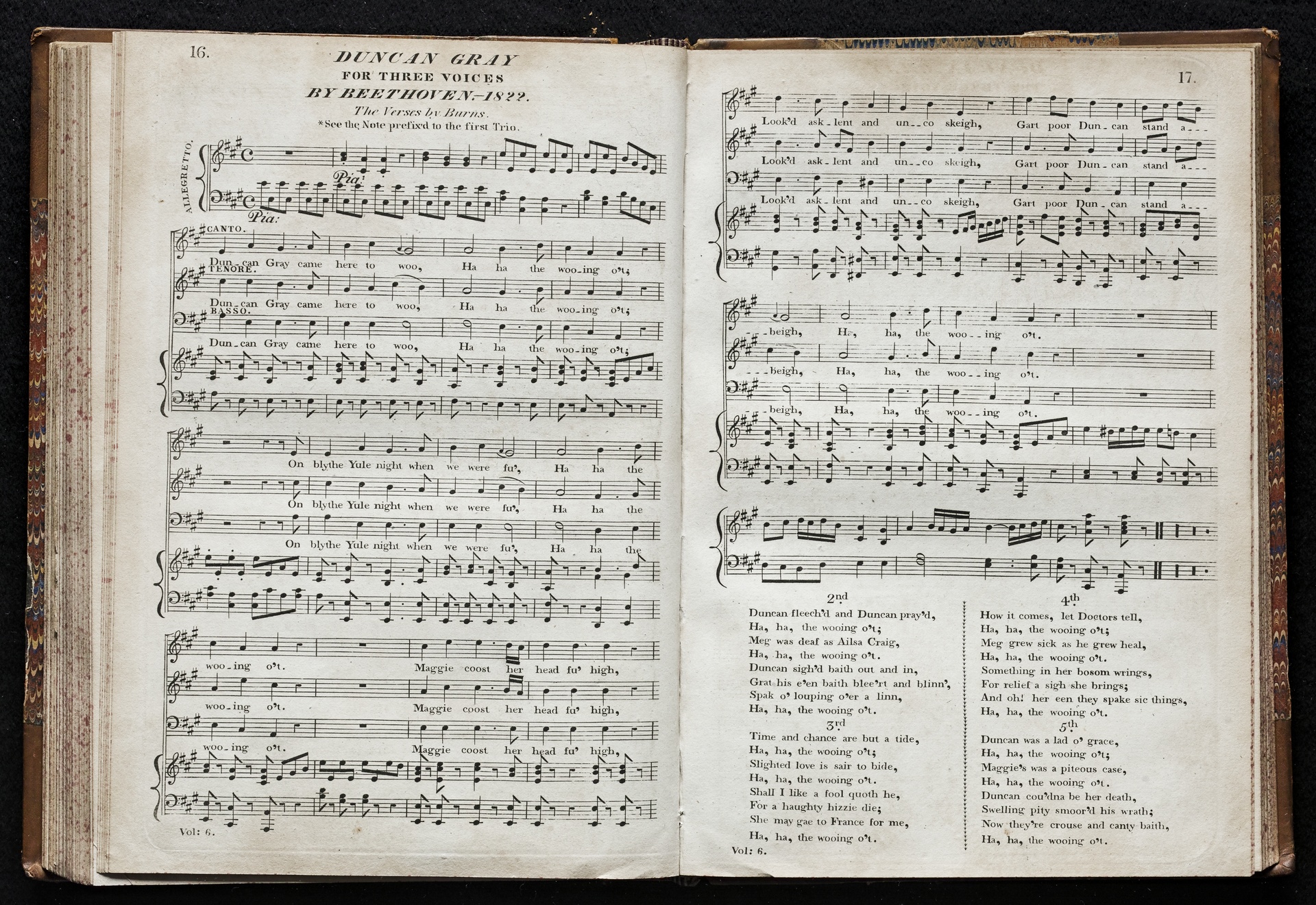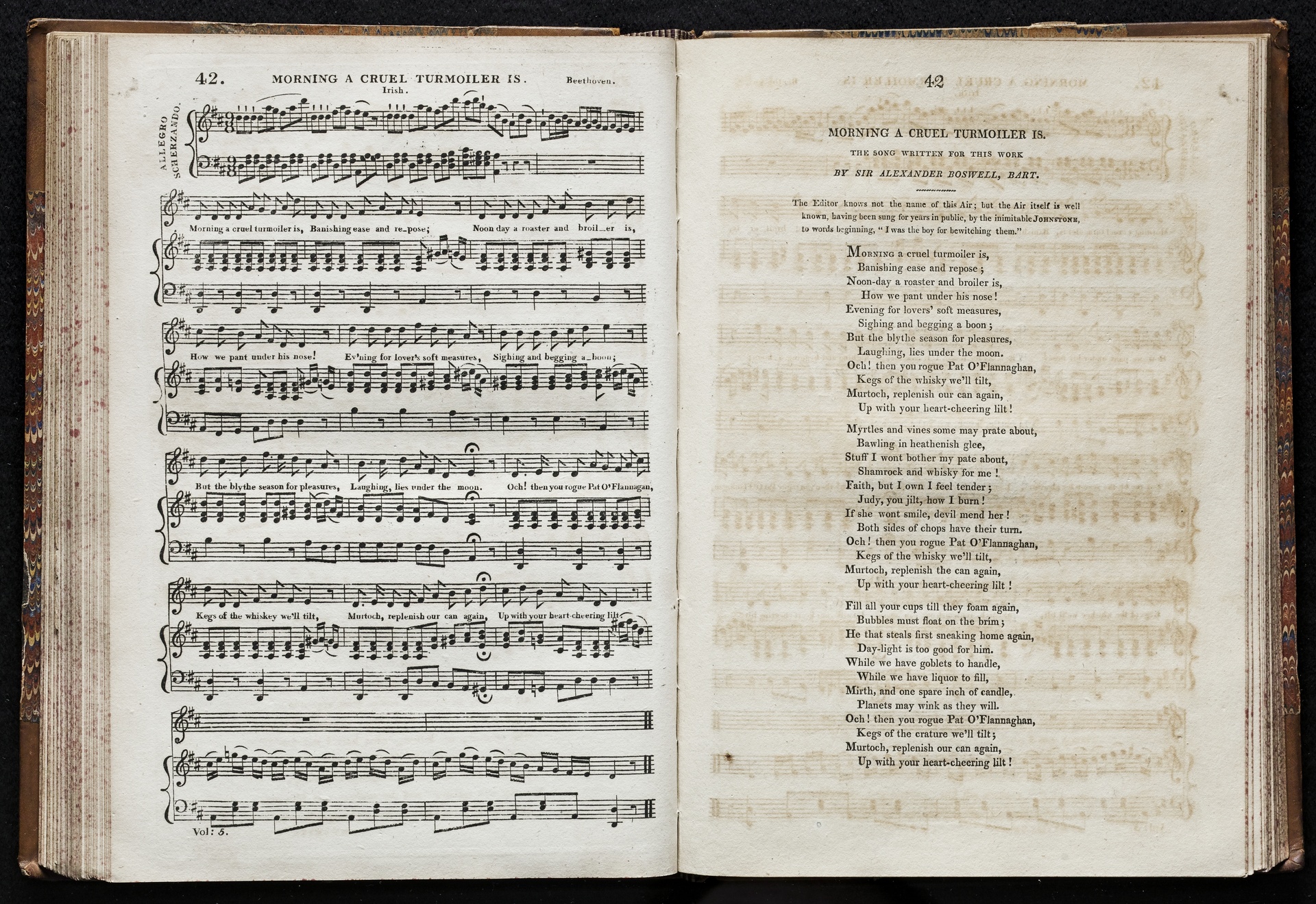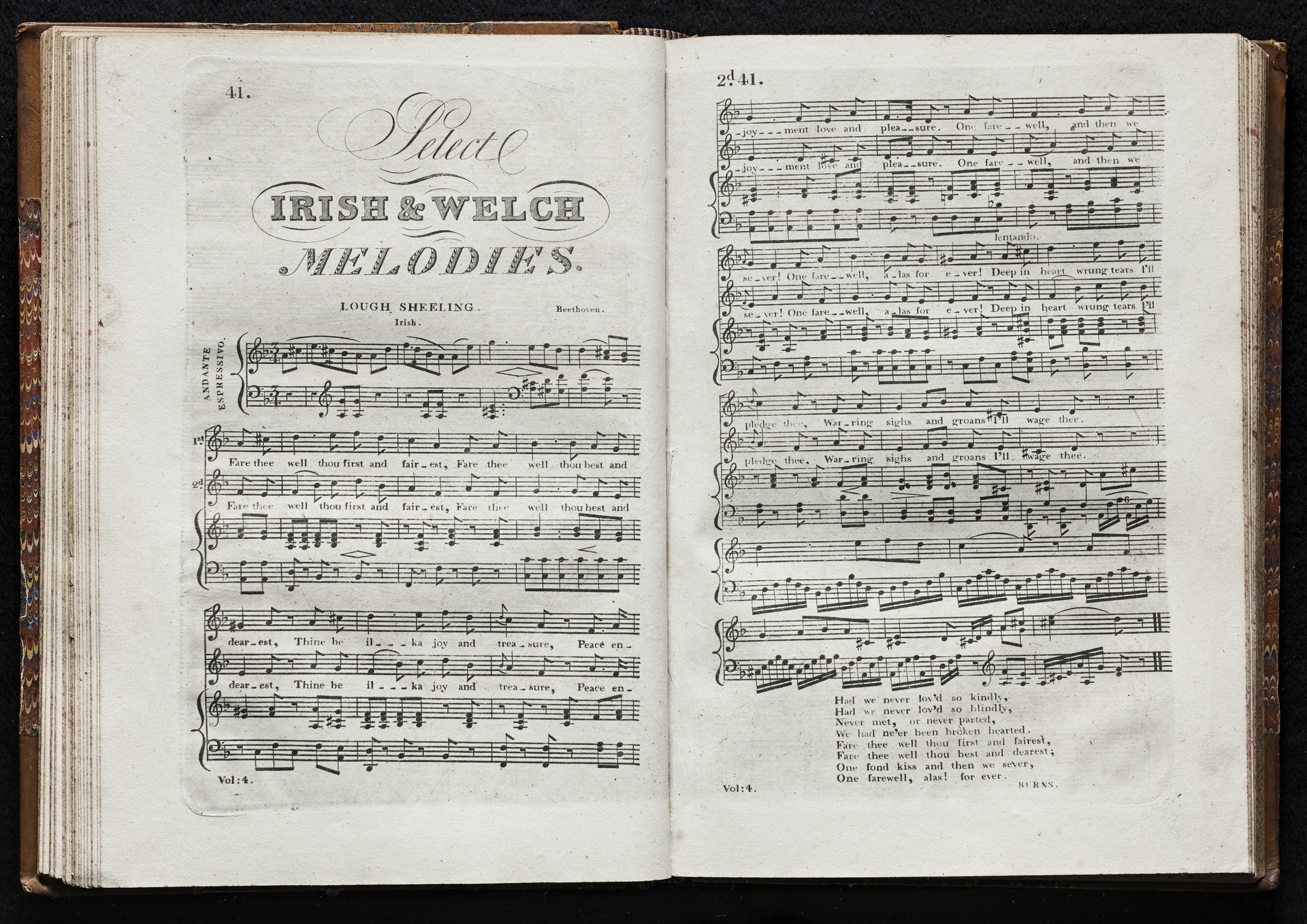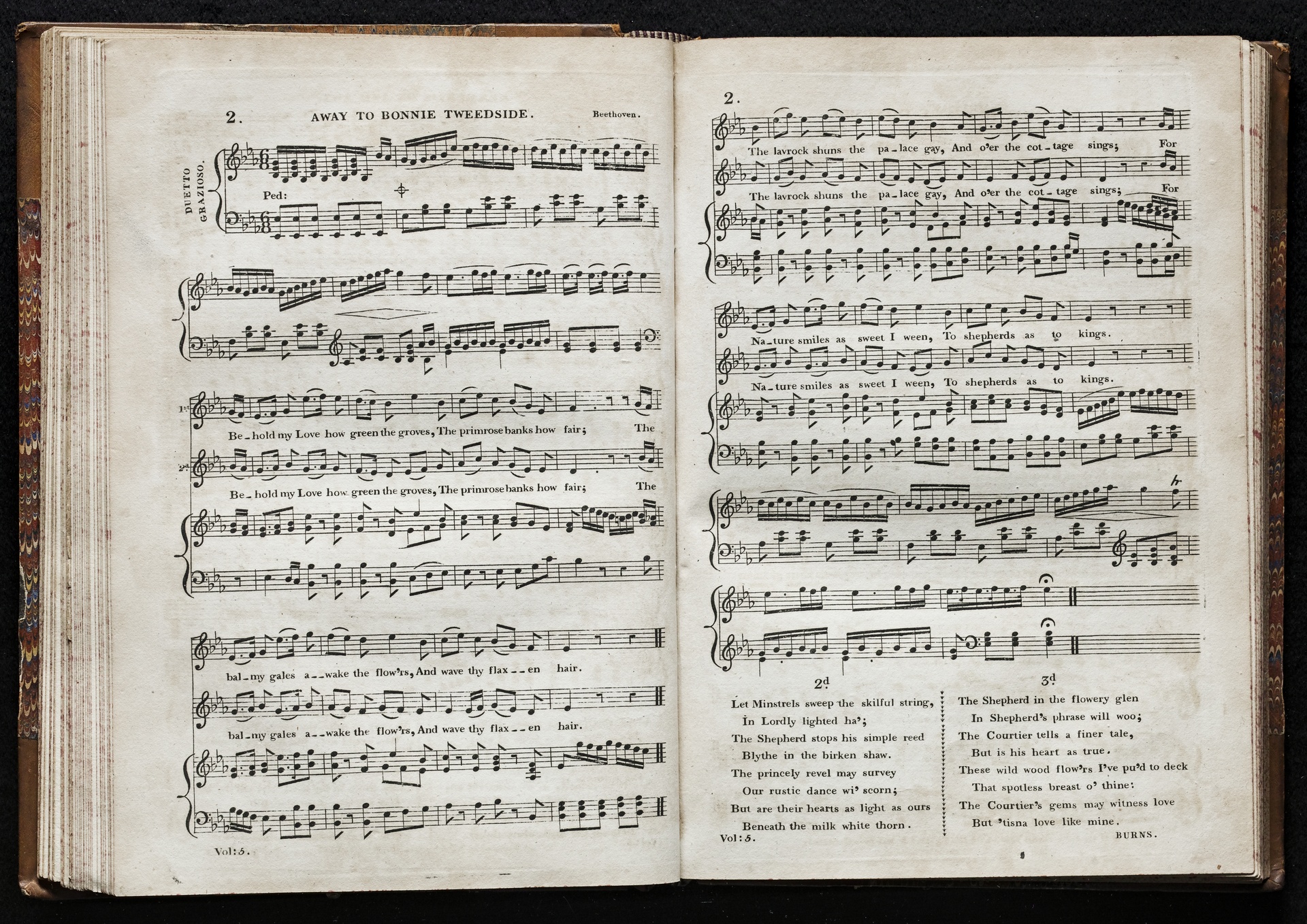 Ludwig van Beethoven, Sammlung von britischen Volksliedern für eine oder mehrere Singstimmen, Violine, Violoncello und Klavier aus op. 108, WoO 152-153, WoO 155-157 und von anderen Komponisten, Klavierpartitur, Thomson