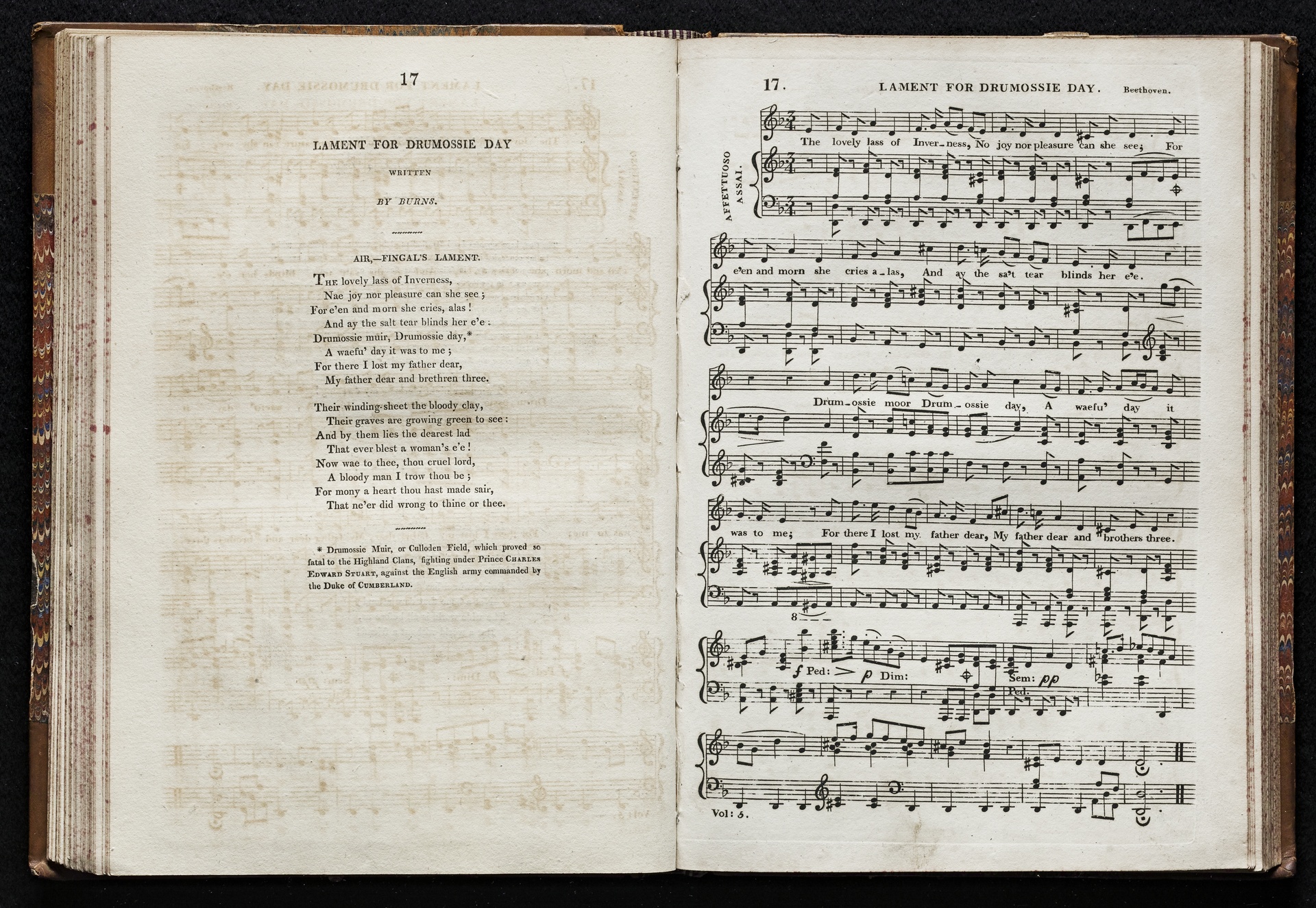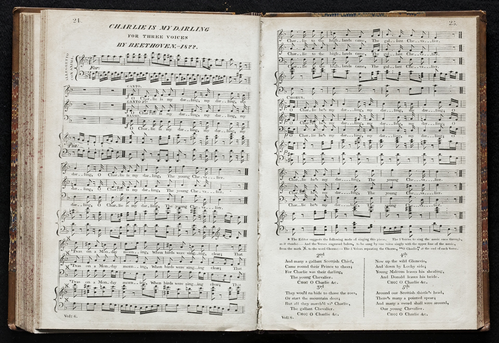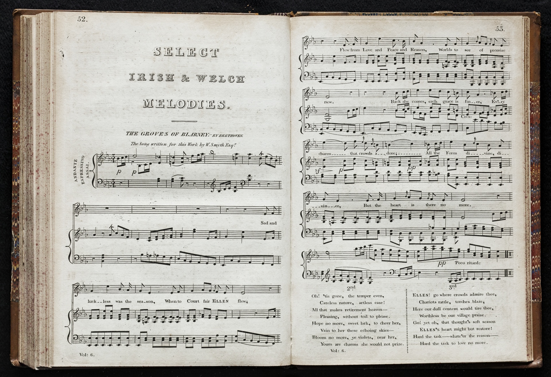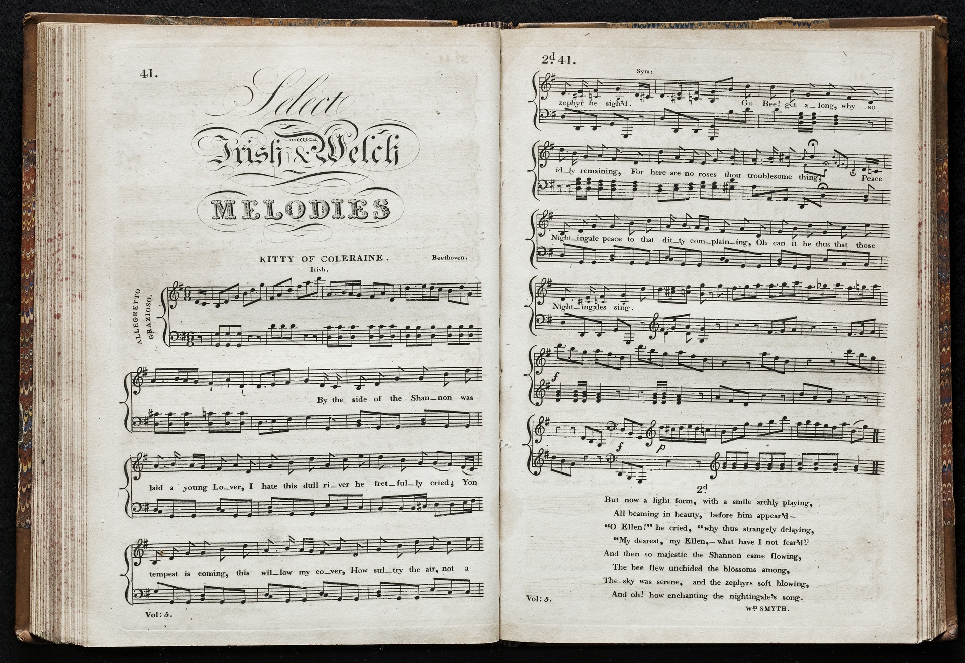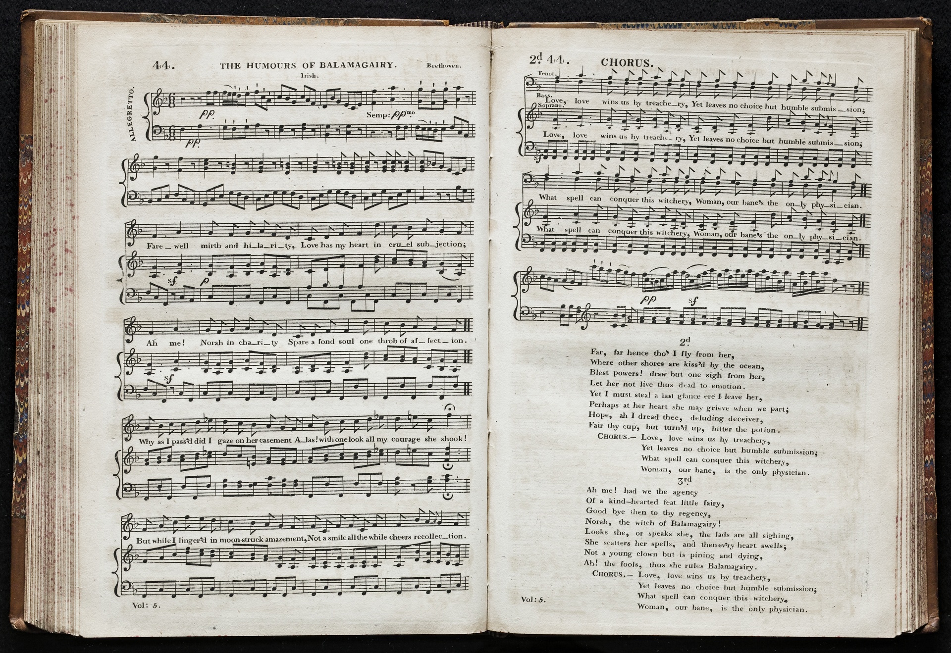 Ludwig van Beethoven, Sammlung von britischen Volksliedern für eine oder mehrere Singstimmen, Violine, Violoncello und Klavier aus op. 108, WoO 152-153, WoO 155-157 und von anderen Komponisten, Klavierpartitur, Thomson