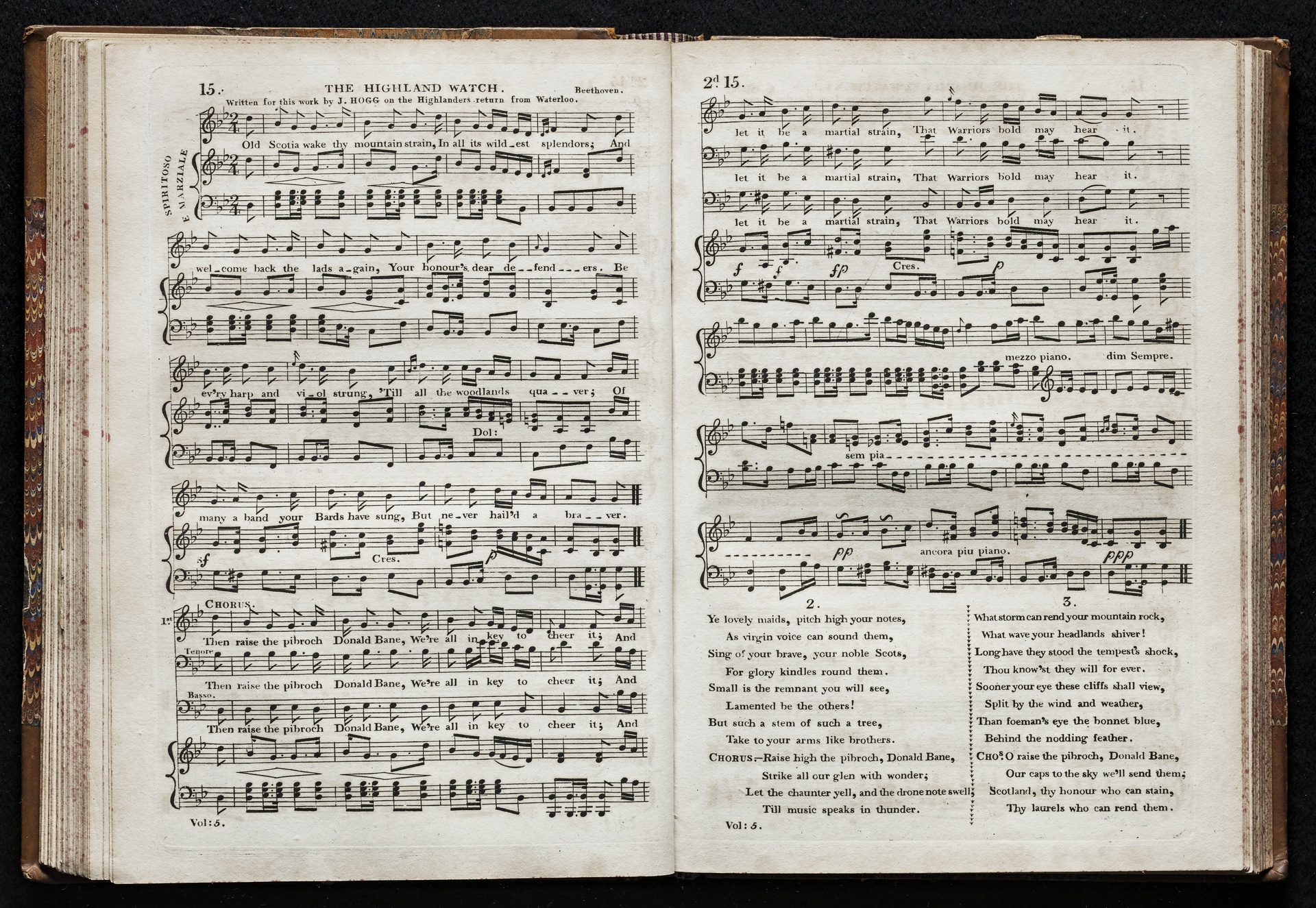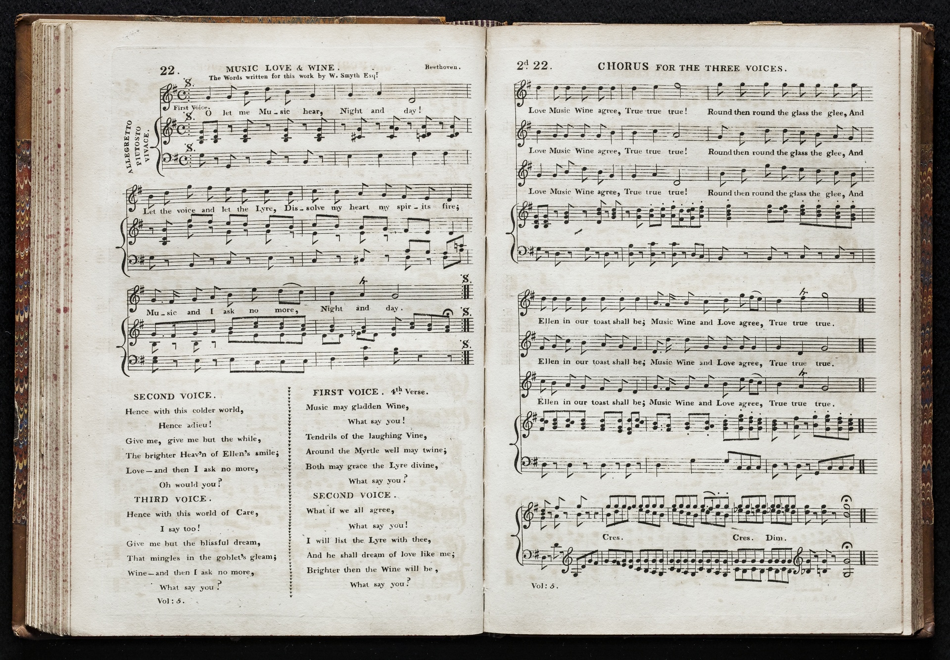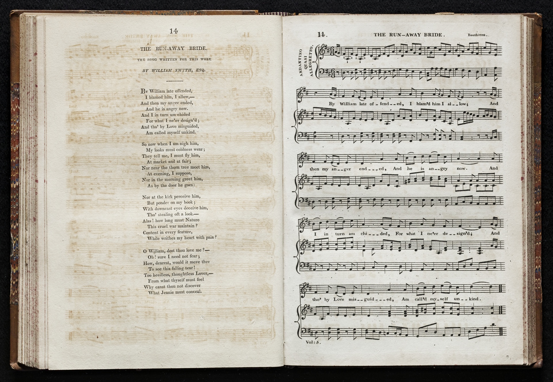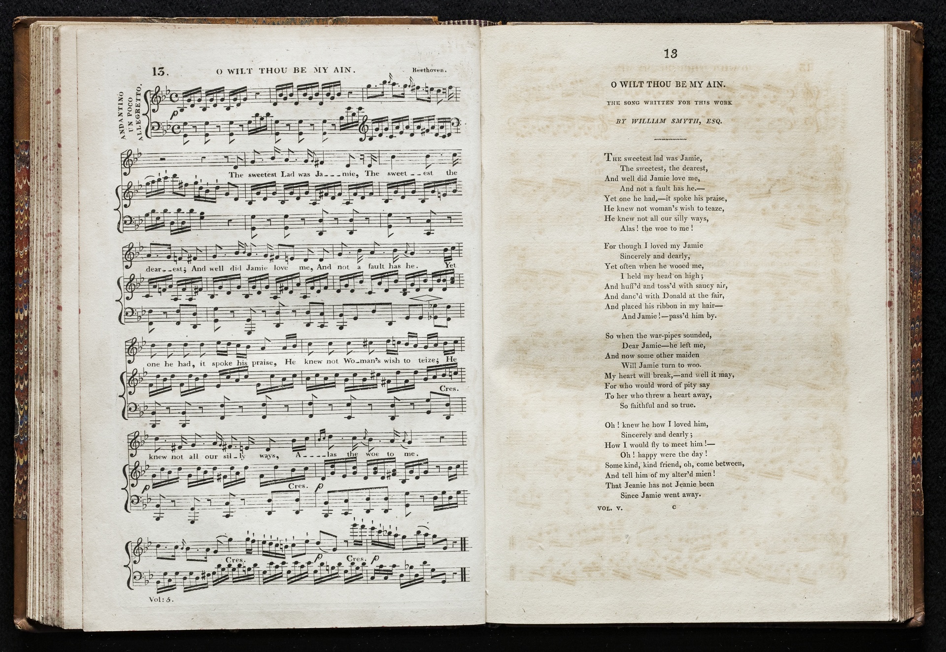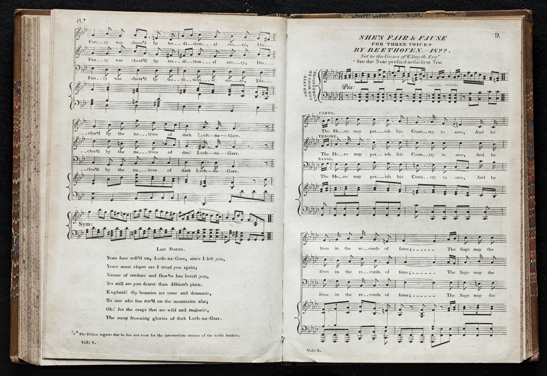 Ludwig van Beethoven, Sammlung von britischen Volksliedern für eine oder mehrere Singstimmen, Violine, Violoncello und Klavier aus op. 108, WoO 152-153, WoO 155-157 und von anderen Komponisten, Klavierpartitur, Thomson