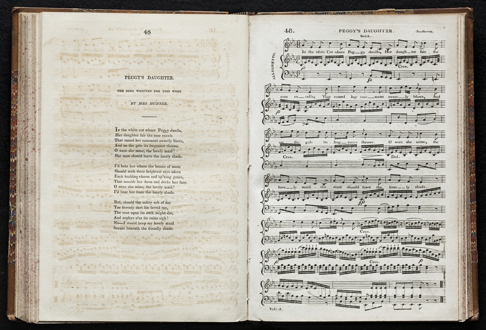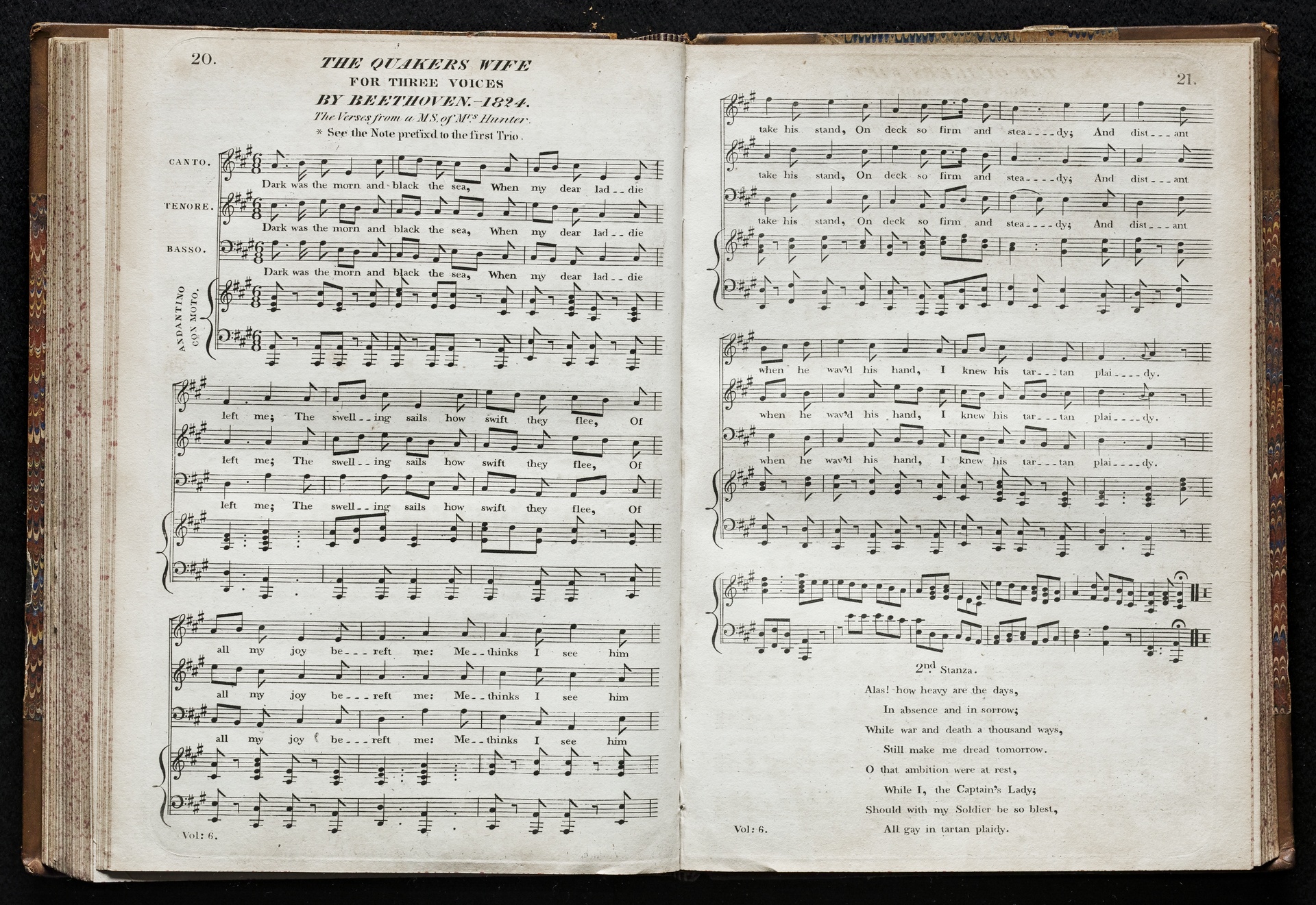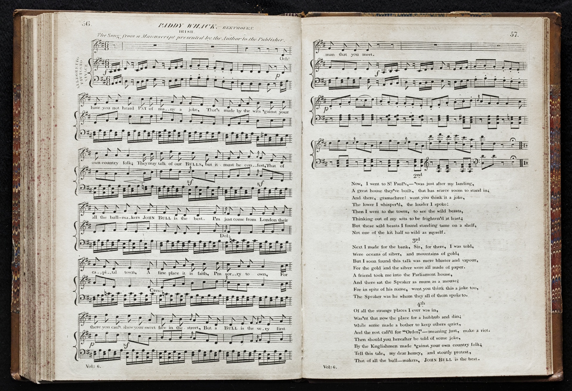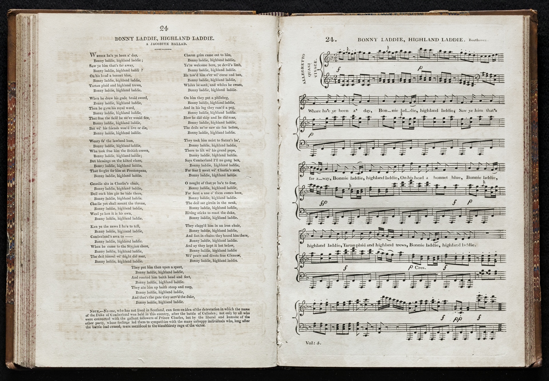 Ludwig van Beethoven, Sammlung von britischen Volksliedern für eine oder mehrere Singstimmen, Violine, Violoncello und Klavier aus op. 108, WoO 152-153, WoO 155-157 und von anderen Komponisten, Klavierpartitur, Thomson