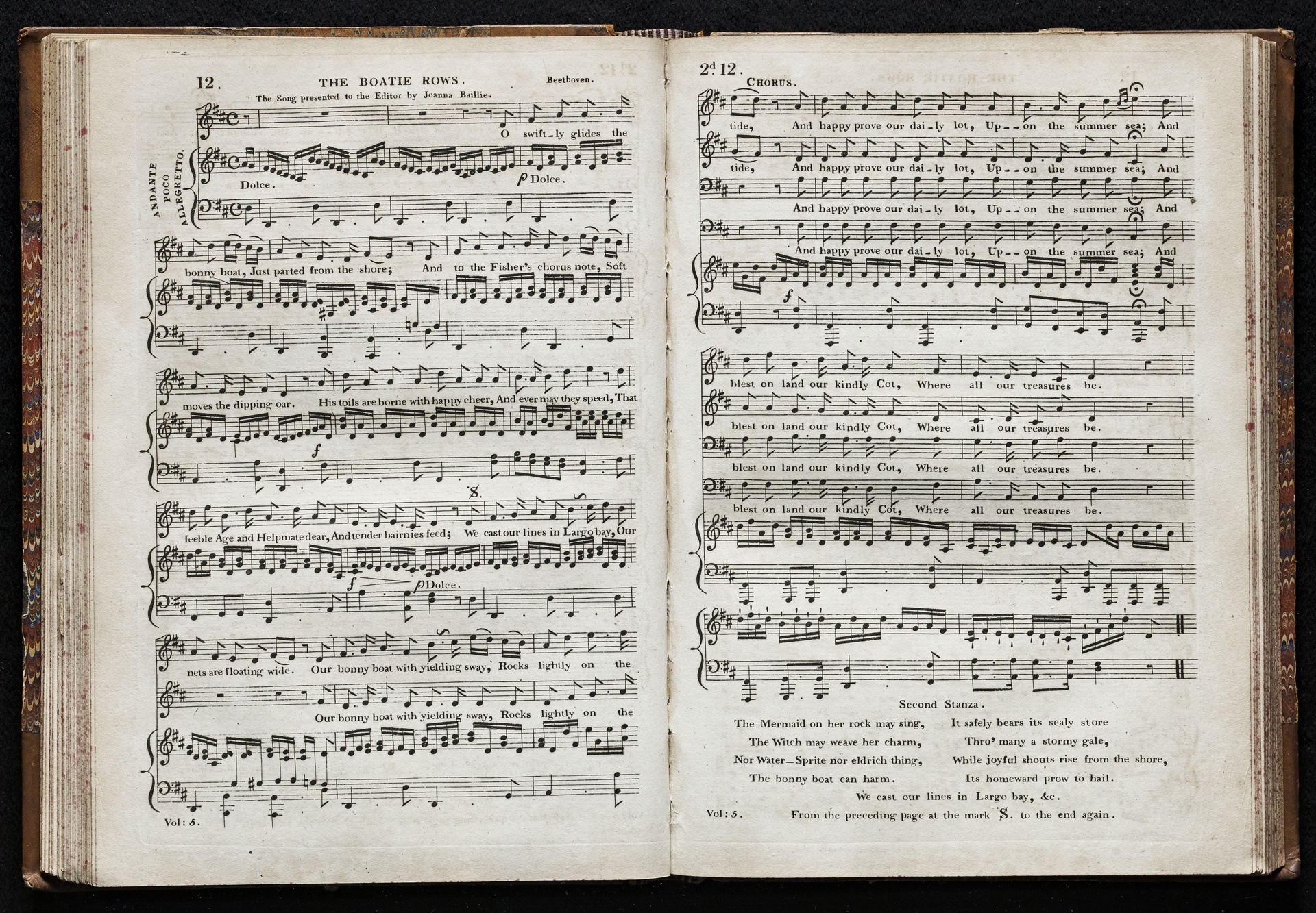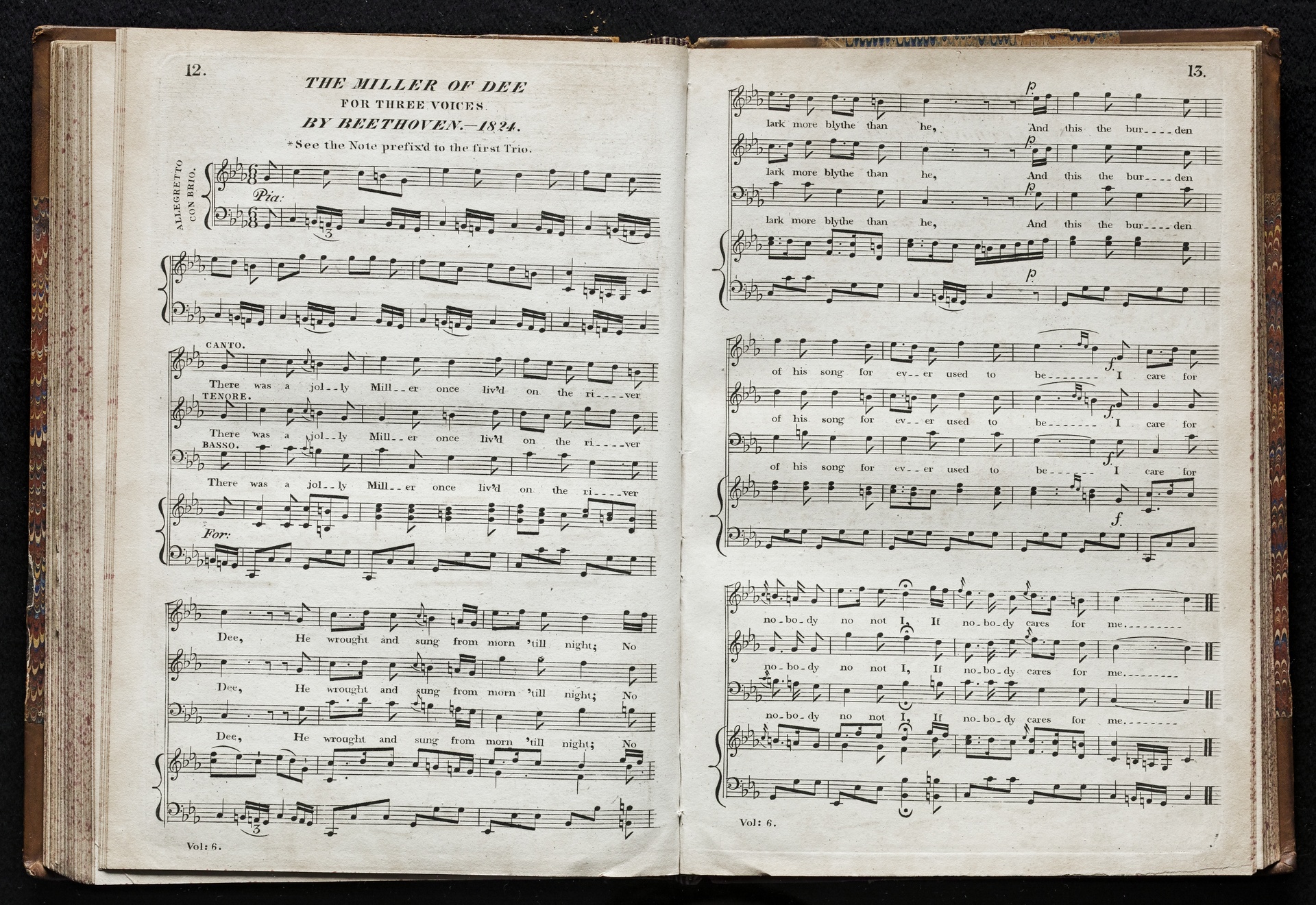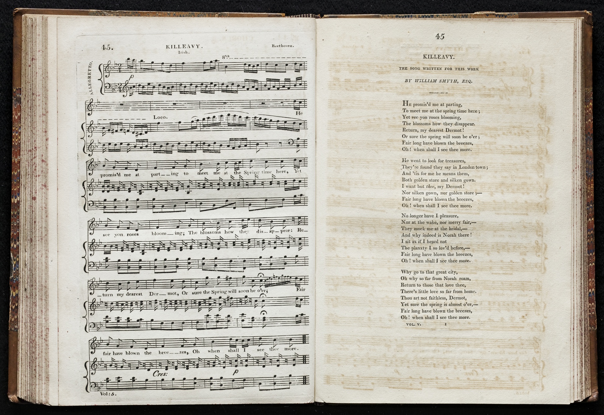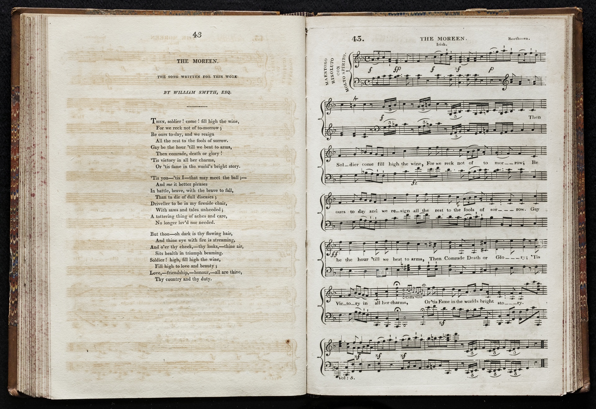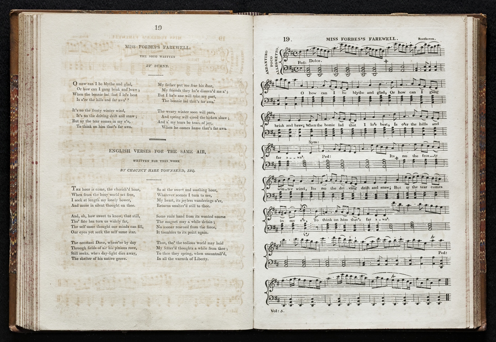 Ludwig van Beethoven, Sammlung von britischen Volksliedern für eine oder mehrere Singstimmen, Violine, Violoncello und Klavier aus op. 108, WoO 152-153, WoO 155-157 und von anderen Komponisten, Klavierpartitur, Thomson