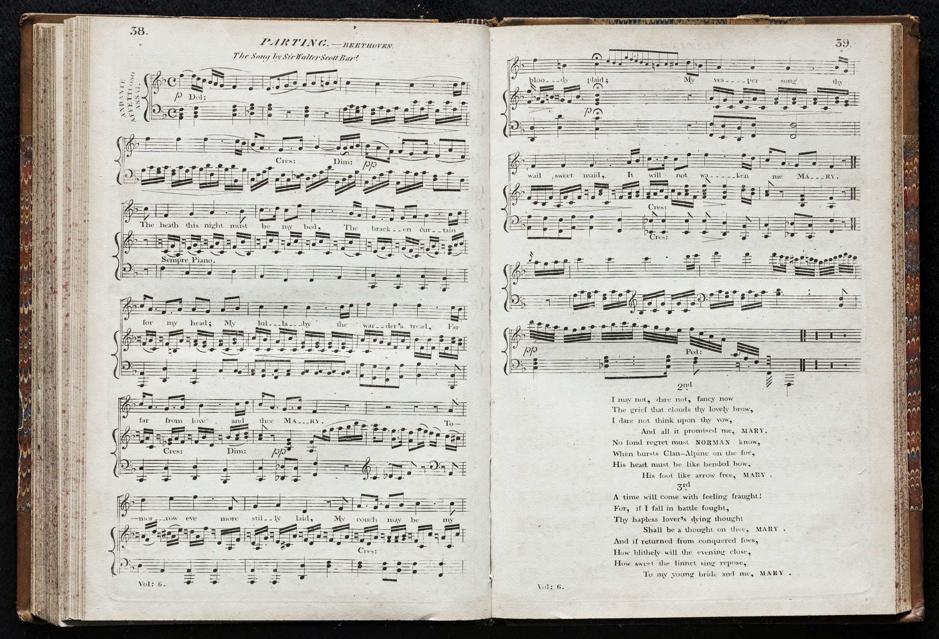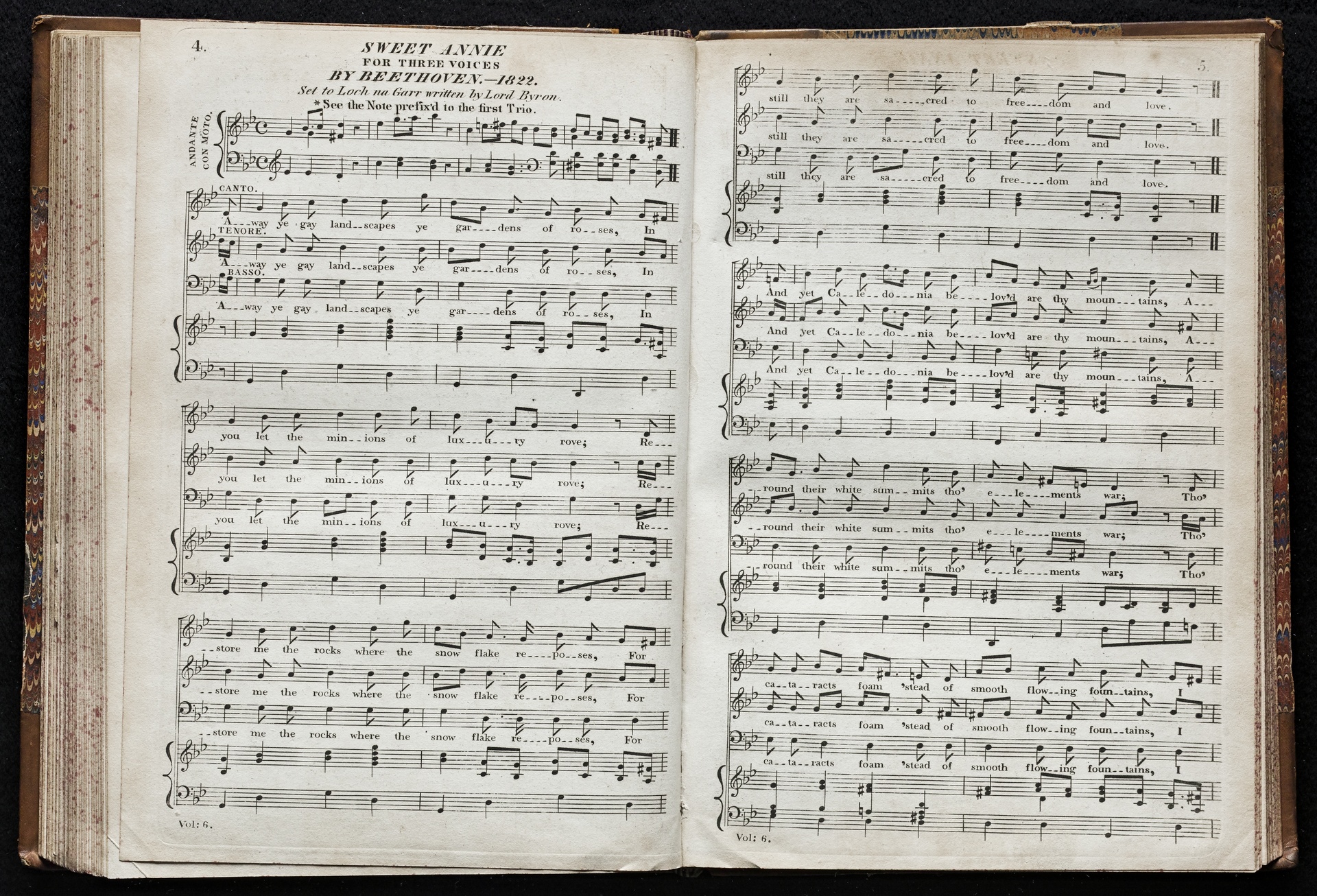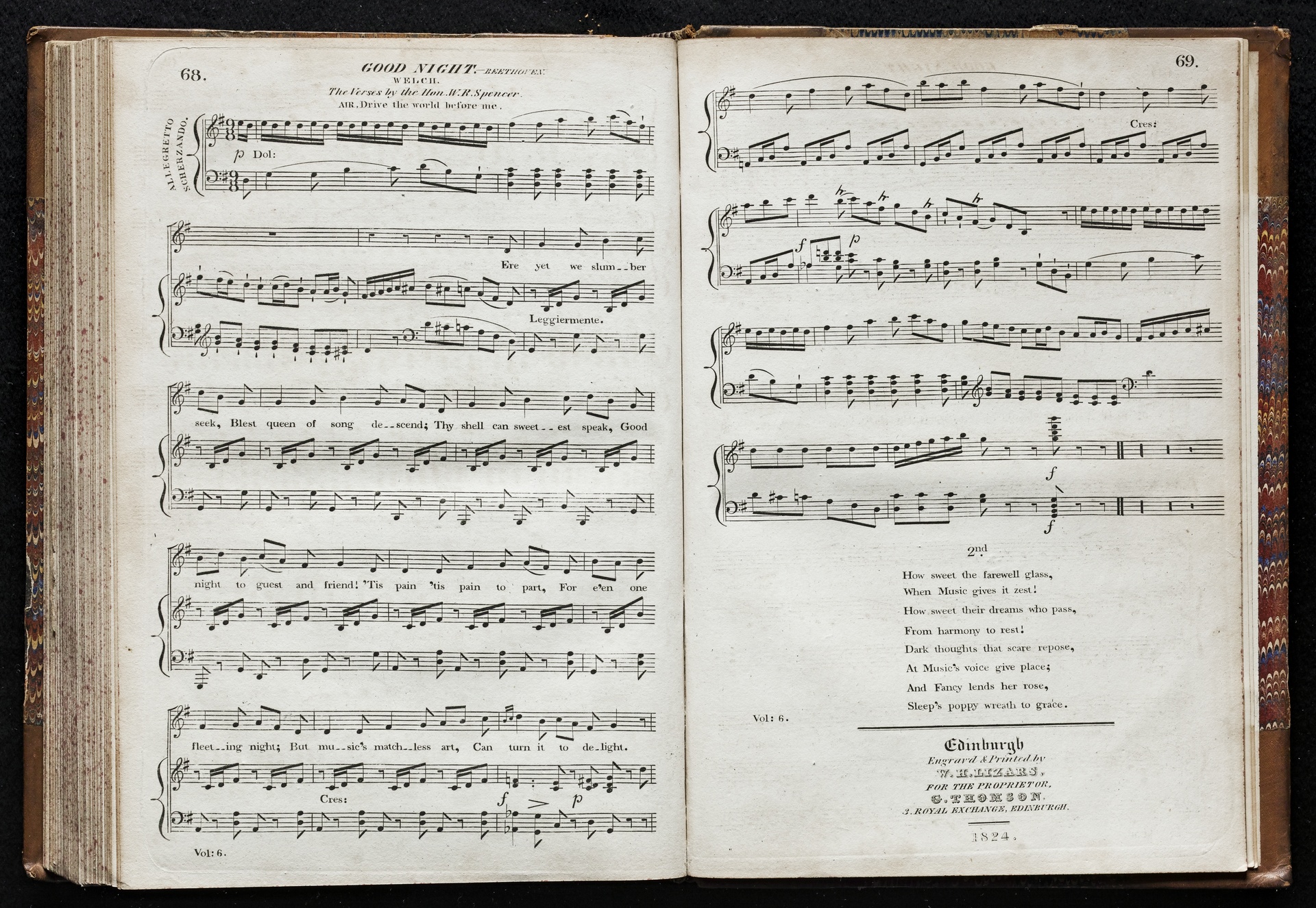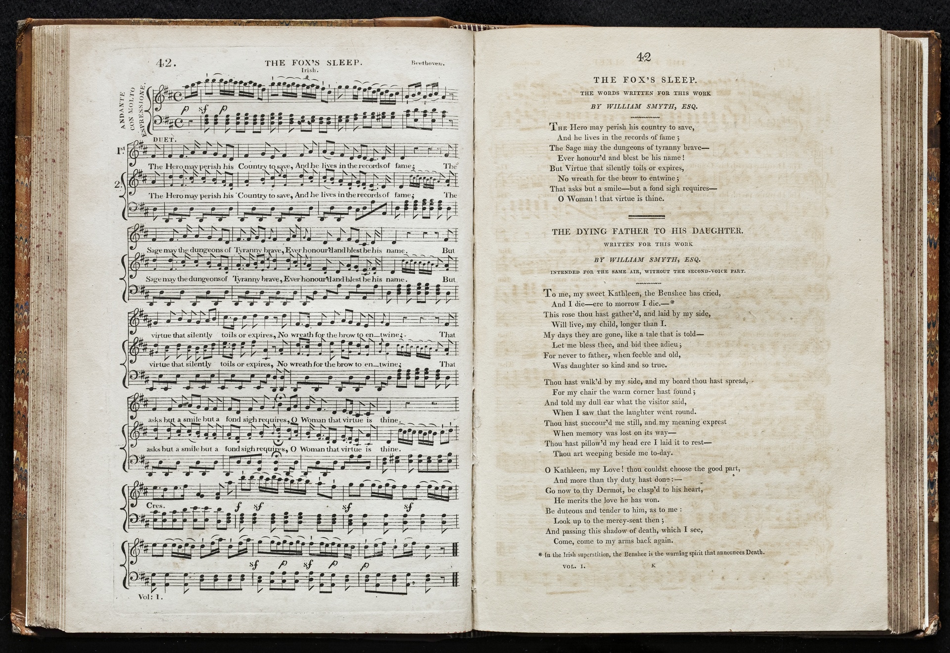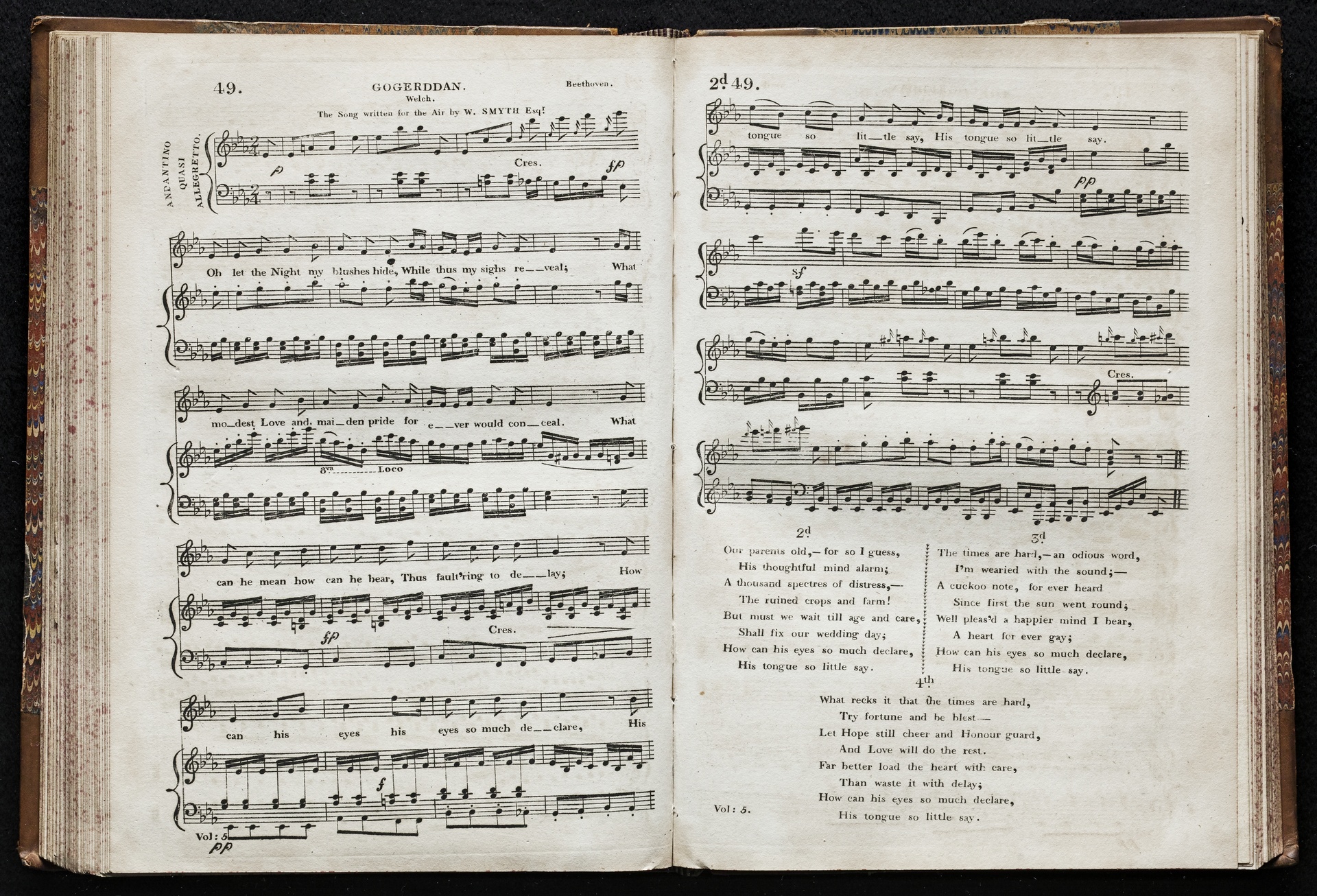 Ludwig van Beethoven, Sammlung von britischen Volksliedern für eine oder mehrere Singstimmen, Violine, Violoncello und Klavier aus op. 108, WoO 152-153, WoO 155-157 und von anderen Komponisten, Klavierpartitur, Thomson