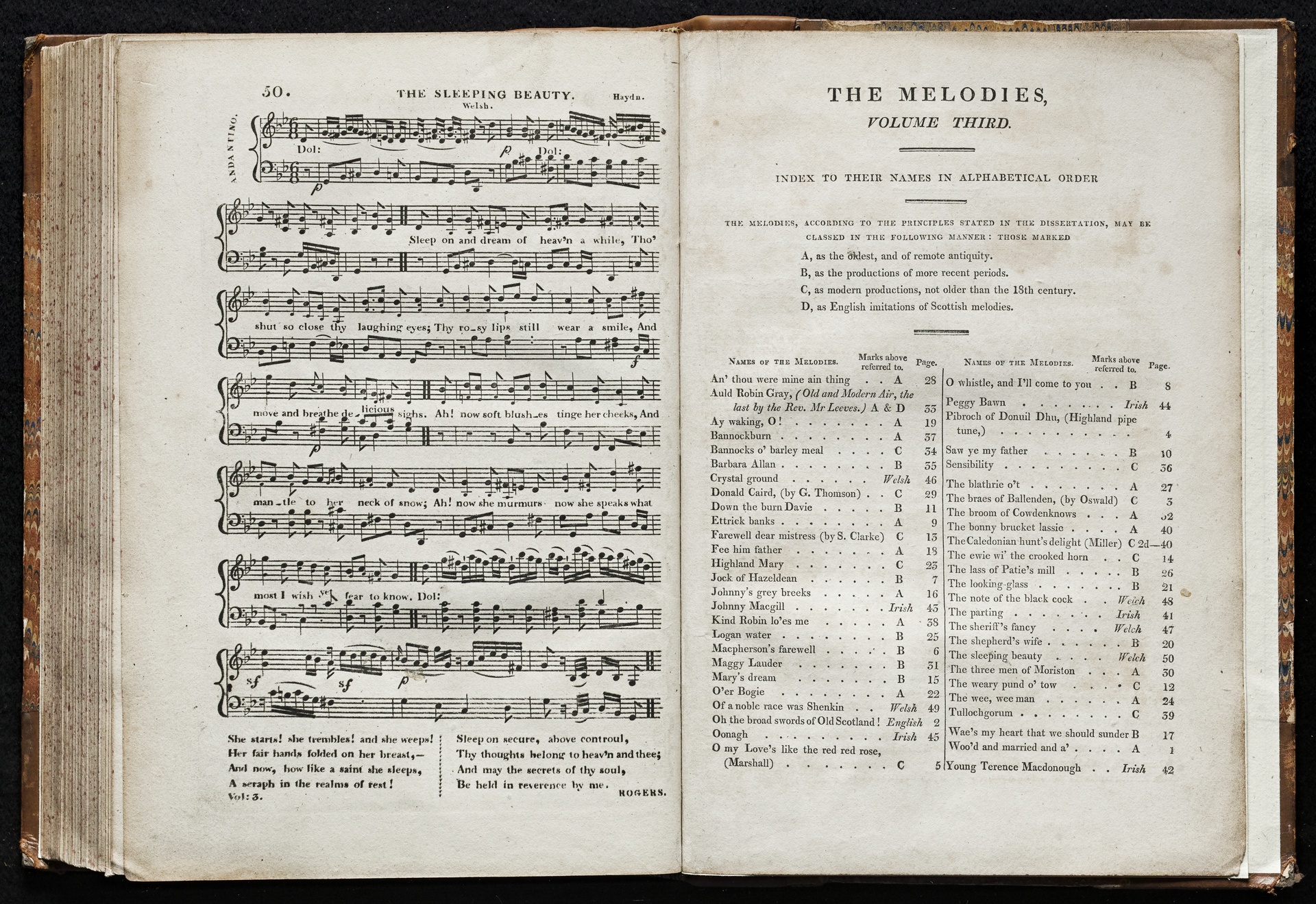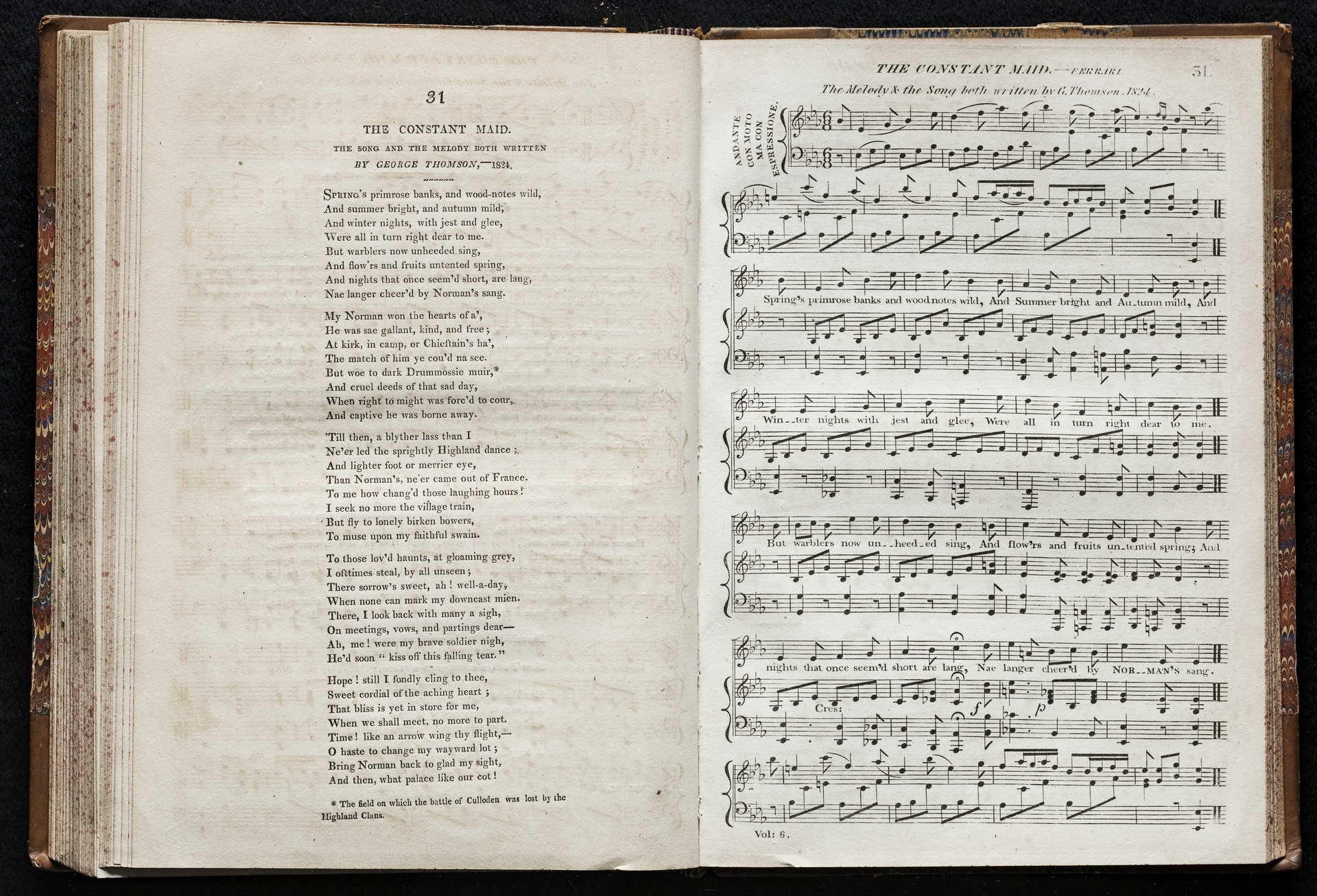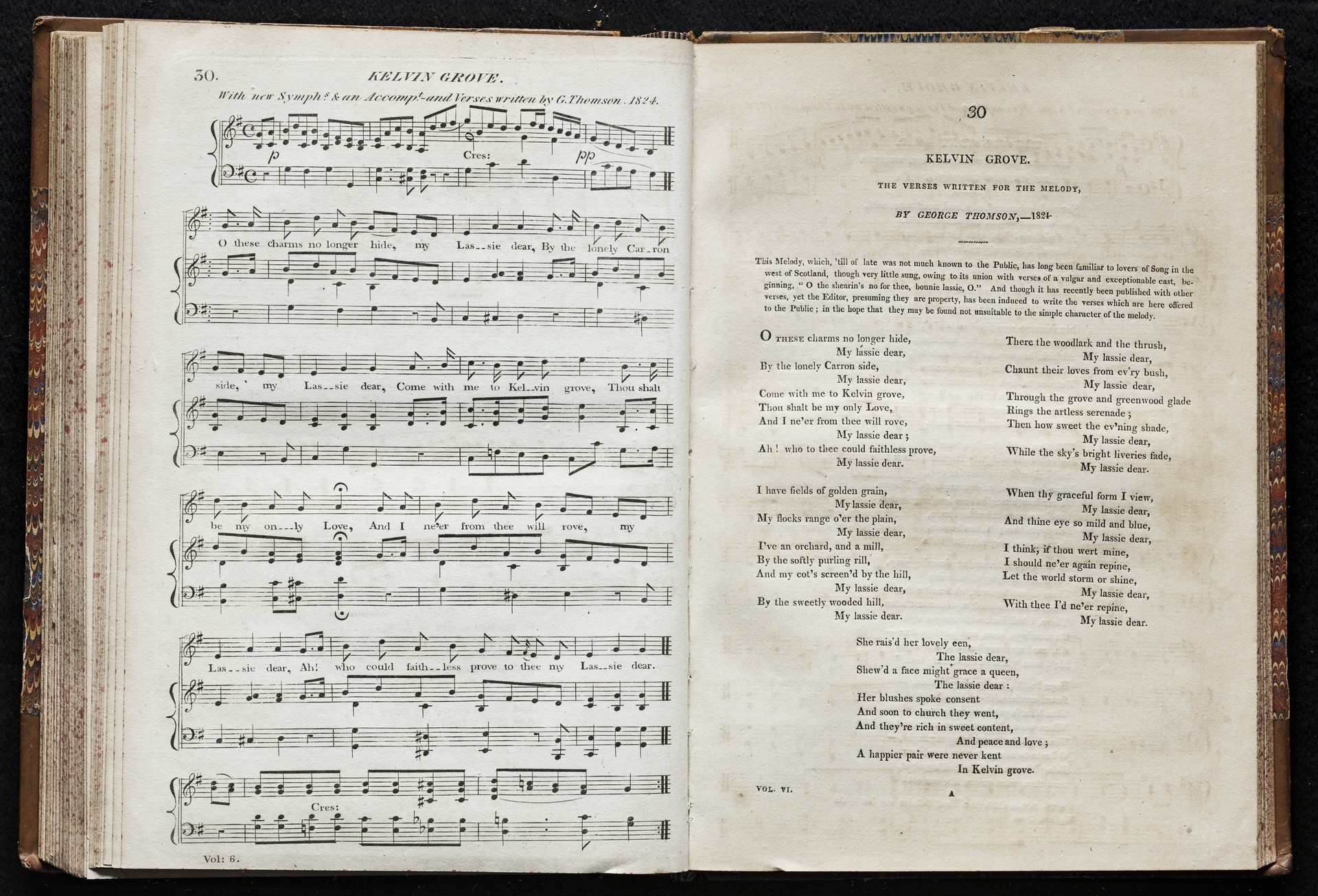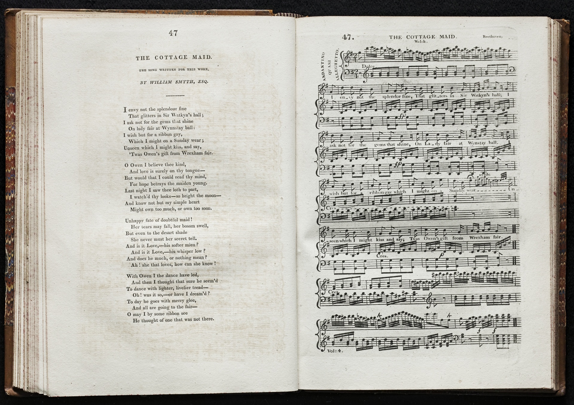 Ludwig van Beethoven, Sammlung von britischen Volksliedern für eine oder mehrere Singstimmen, Violine, Violoncello und Klavier aus op. 108, WoO 152-153, WoO 155-157 und von anderen Komponisten, Klavierpartitur, Thomson