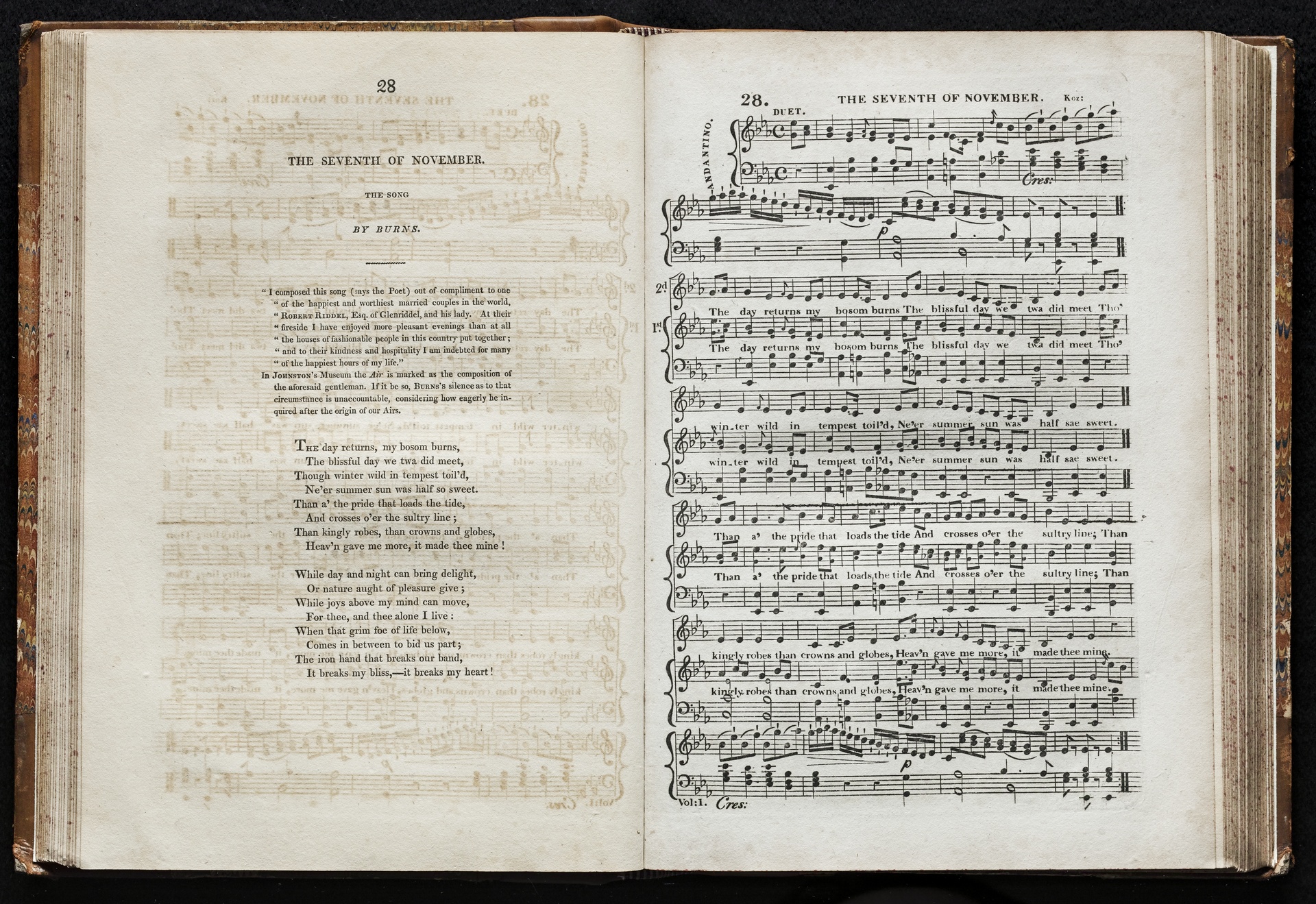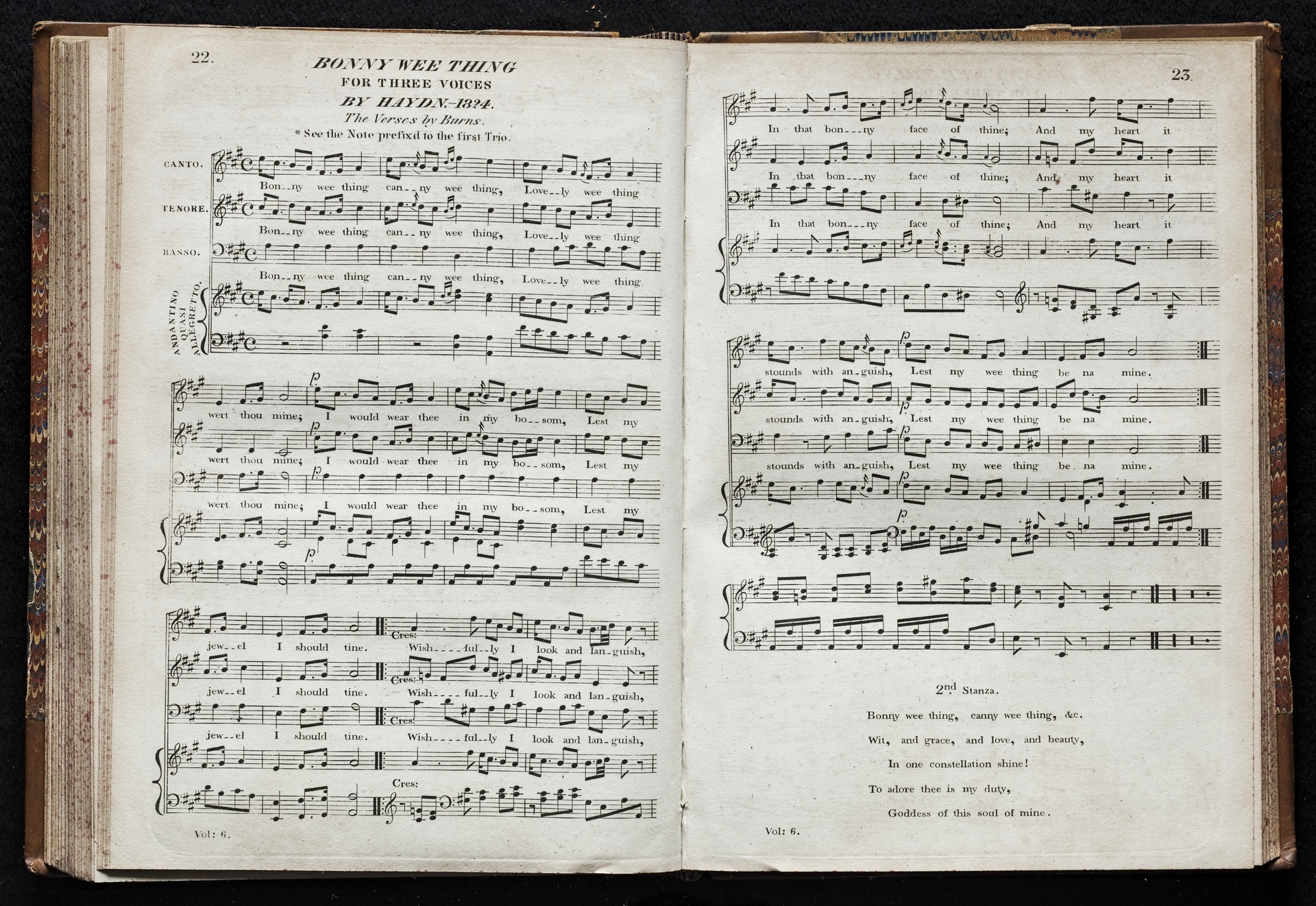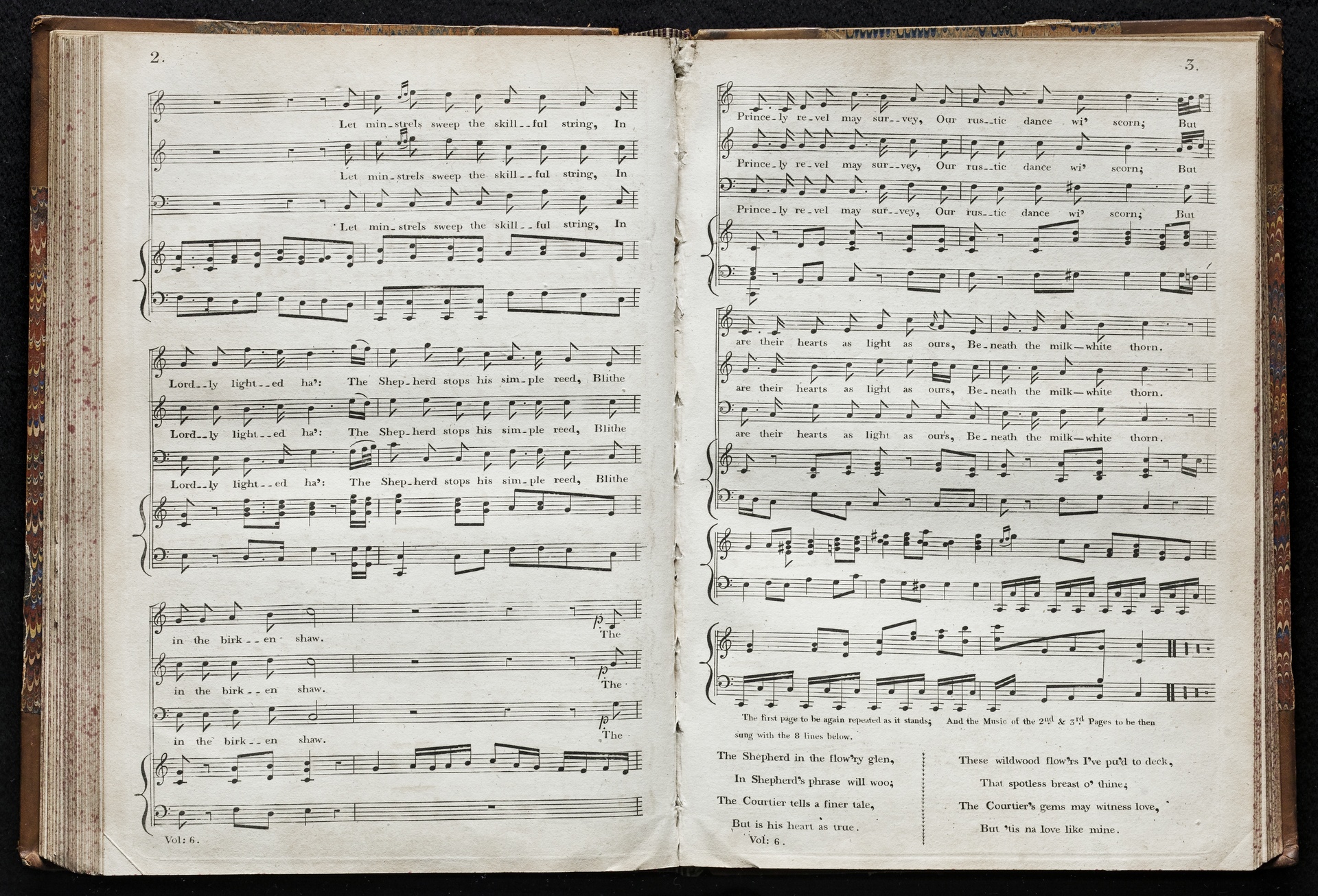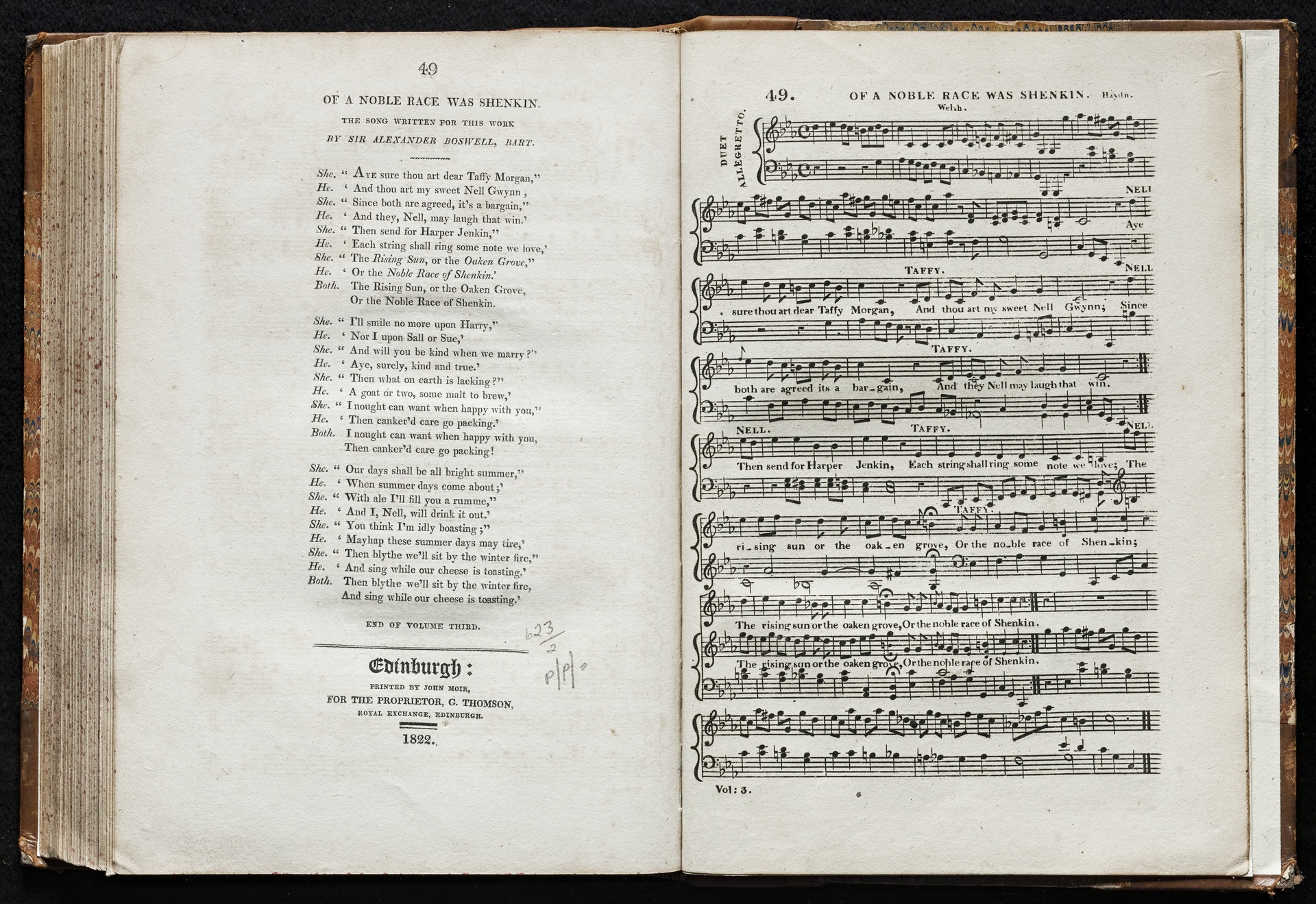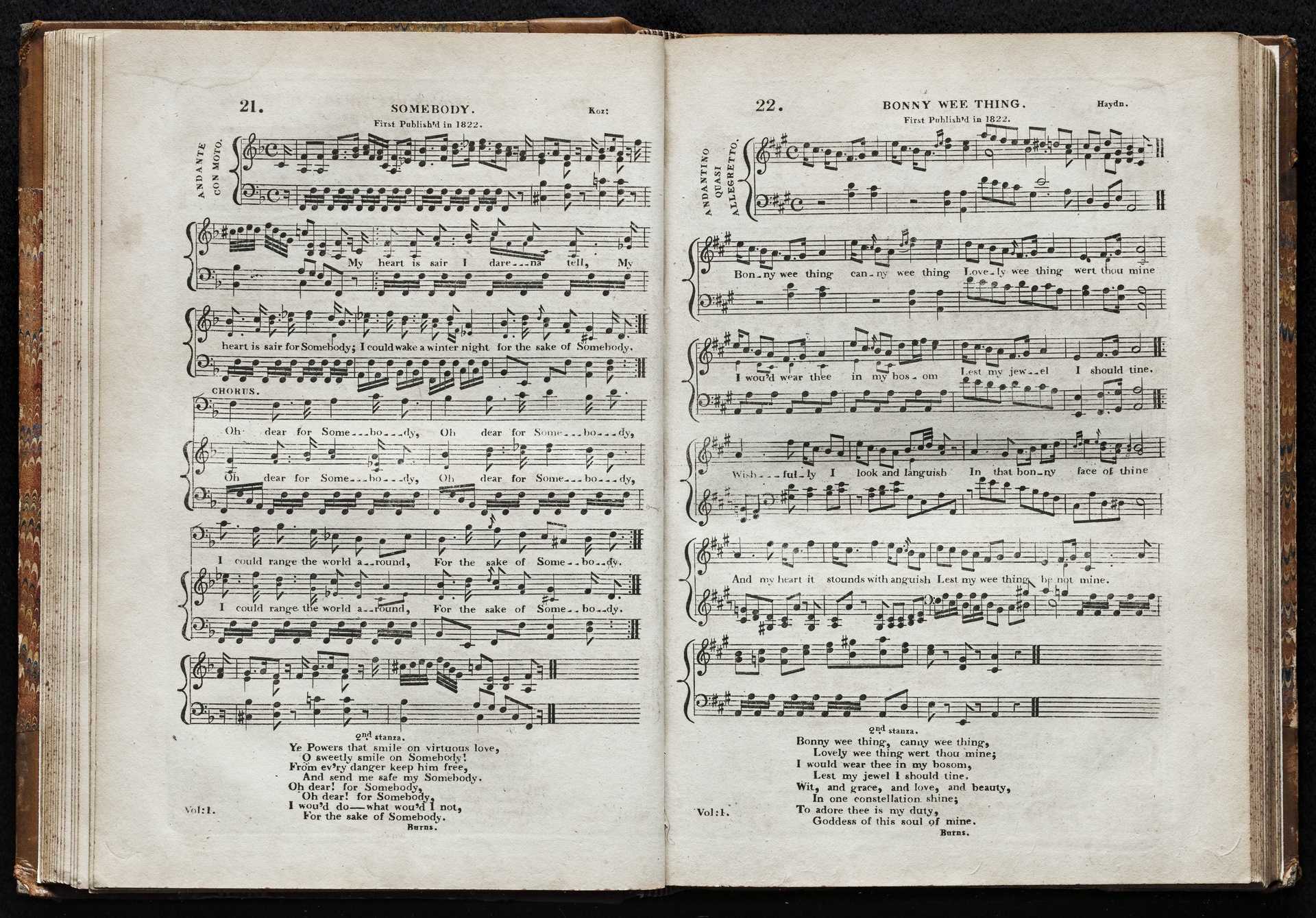 Ludwig van Beethoven, Sammlung von britischen Volksliedern für eine oder mehrere Singstimmen, Violine, Violoncello und Klavier aus op. 108, WoO 152-153, WoO 155-157 und von anderen Komponisten, Klavierpartitur, Thomson