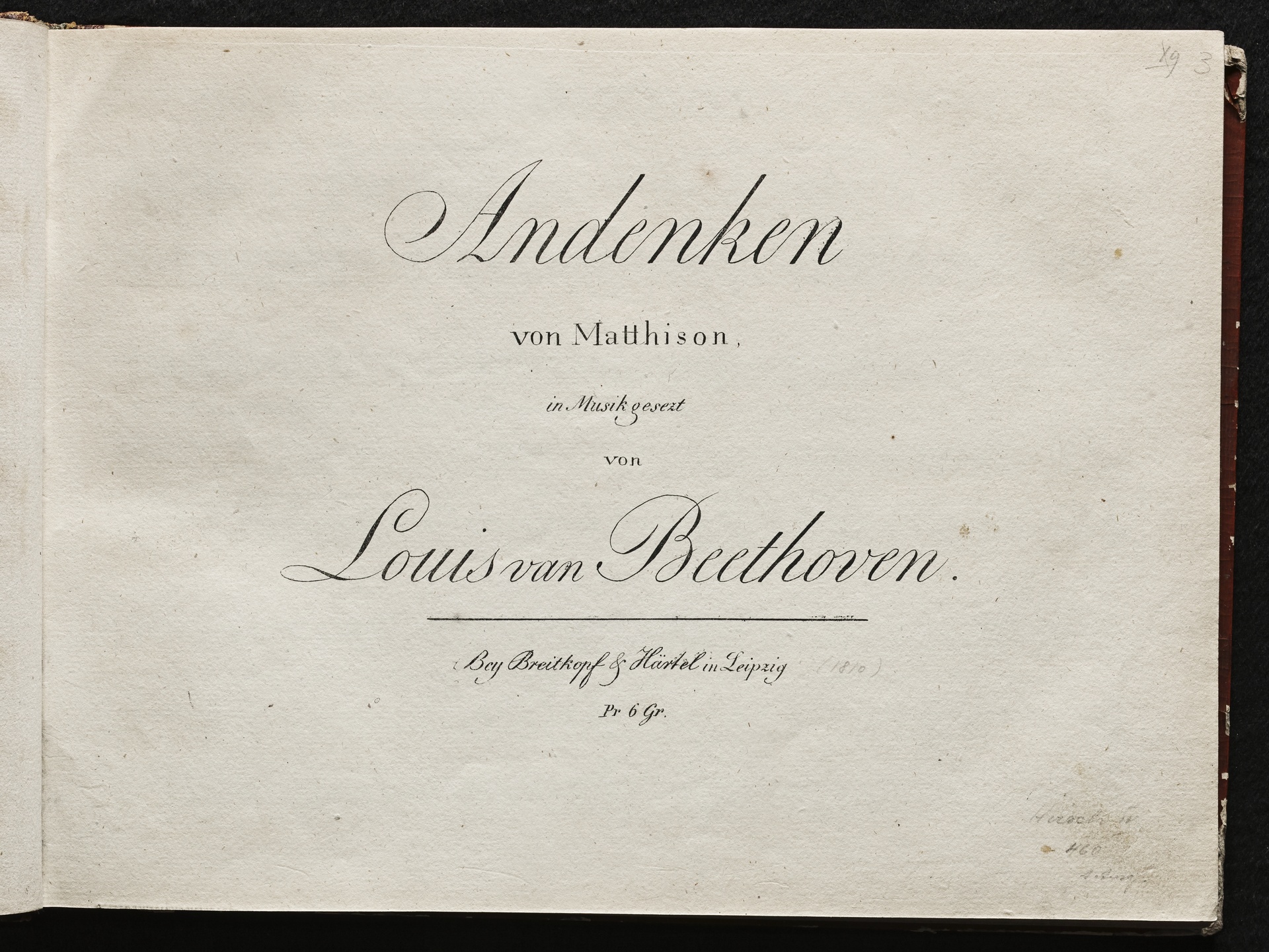 Ludwig van BeethovenFriedrich von Matthisson, "Andenken", Lied für Singstimme und Klavier WoO 136, Breitkopf und Härtel, 1526