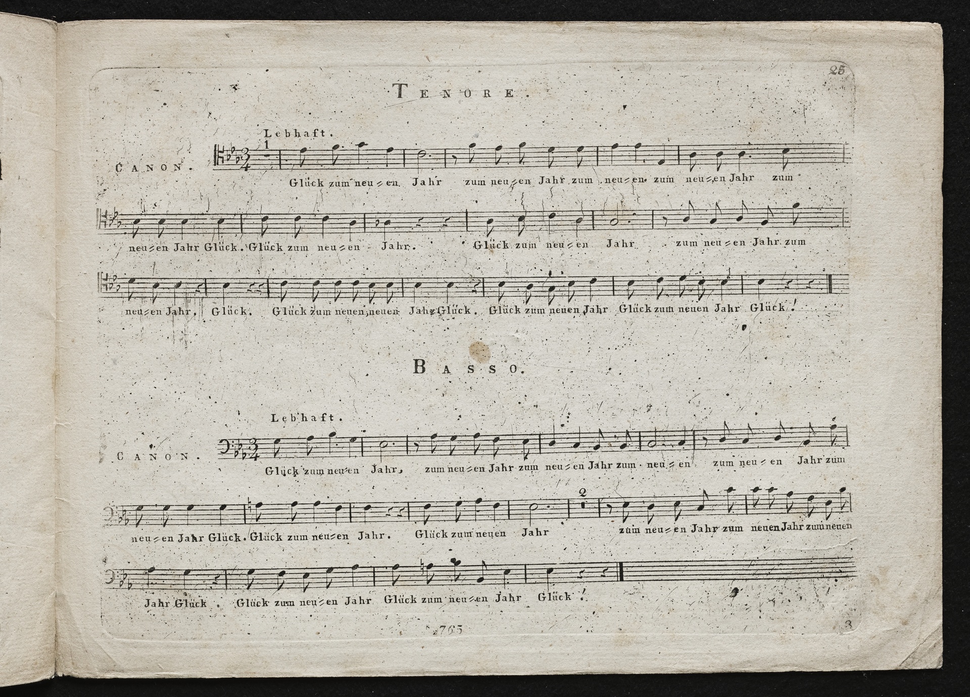 Ludwig van Beethoven, "Glück zum neuen Jahr", vierstimmiger Kanon WoO 165, Riedl, 765