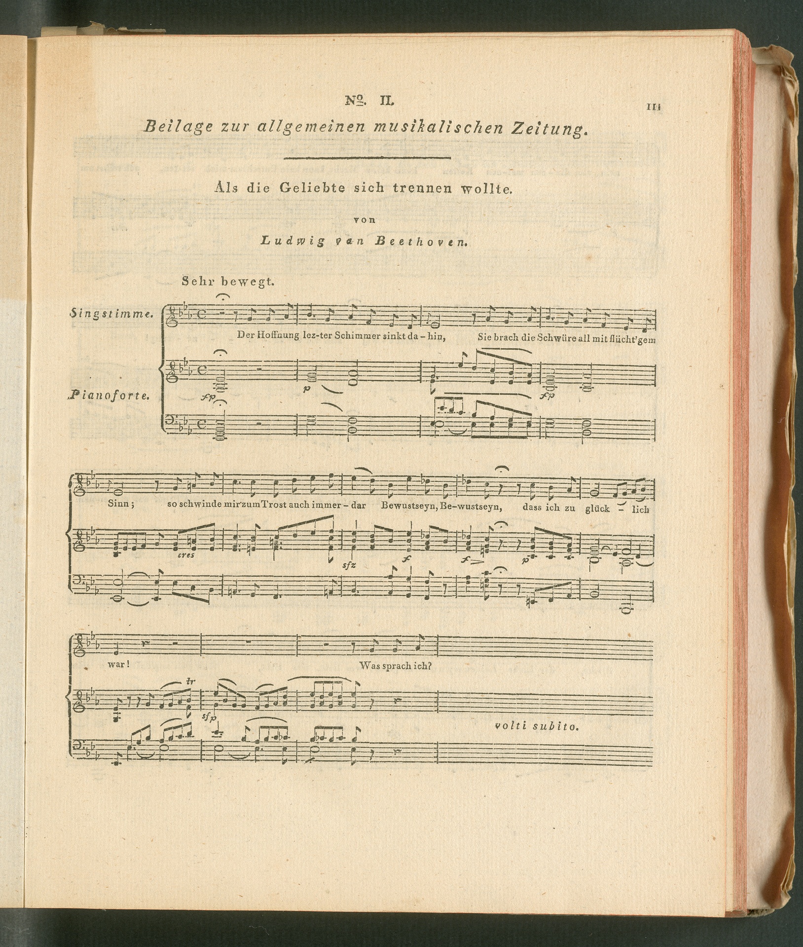 Ludwig van Beethoven, "Als die Geliebte sich trennen wollte", Lied für Singstimme und Klavier WoO 132, Allgemeine musikalische Zeitung