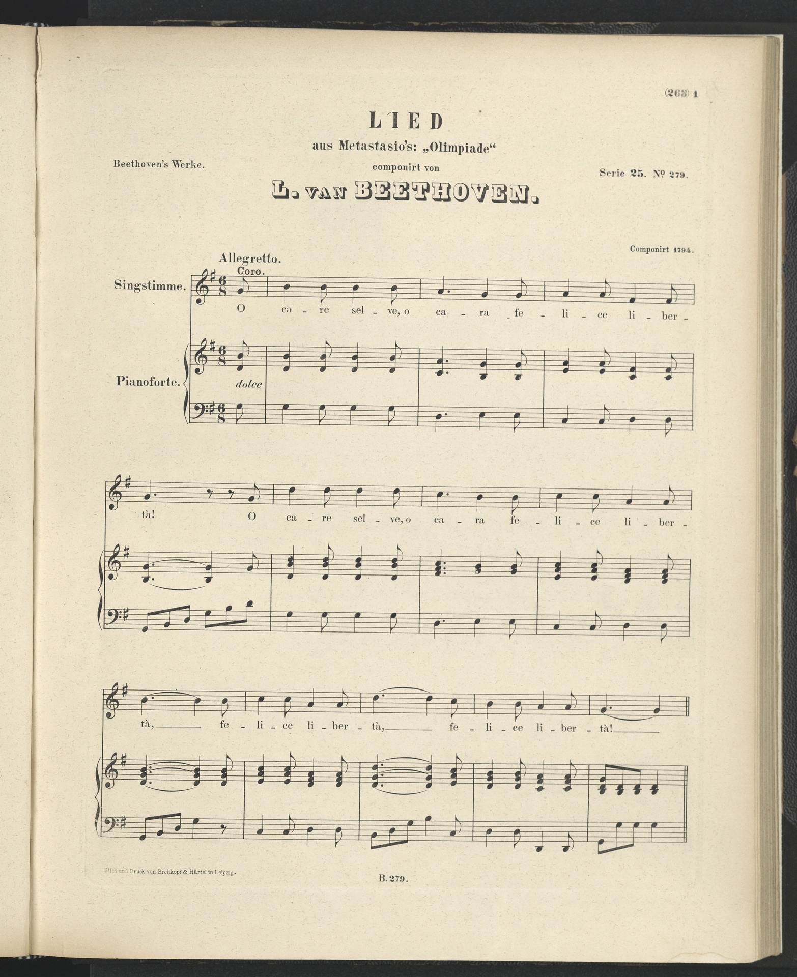 Ludwig van BeethovenPietro Metastasio, "O care selve", Canzonetta für Singstimme, einstimmigen Chor und Klavier WoO 119, Breitkopf und Härtel, 279