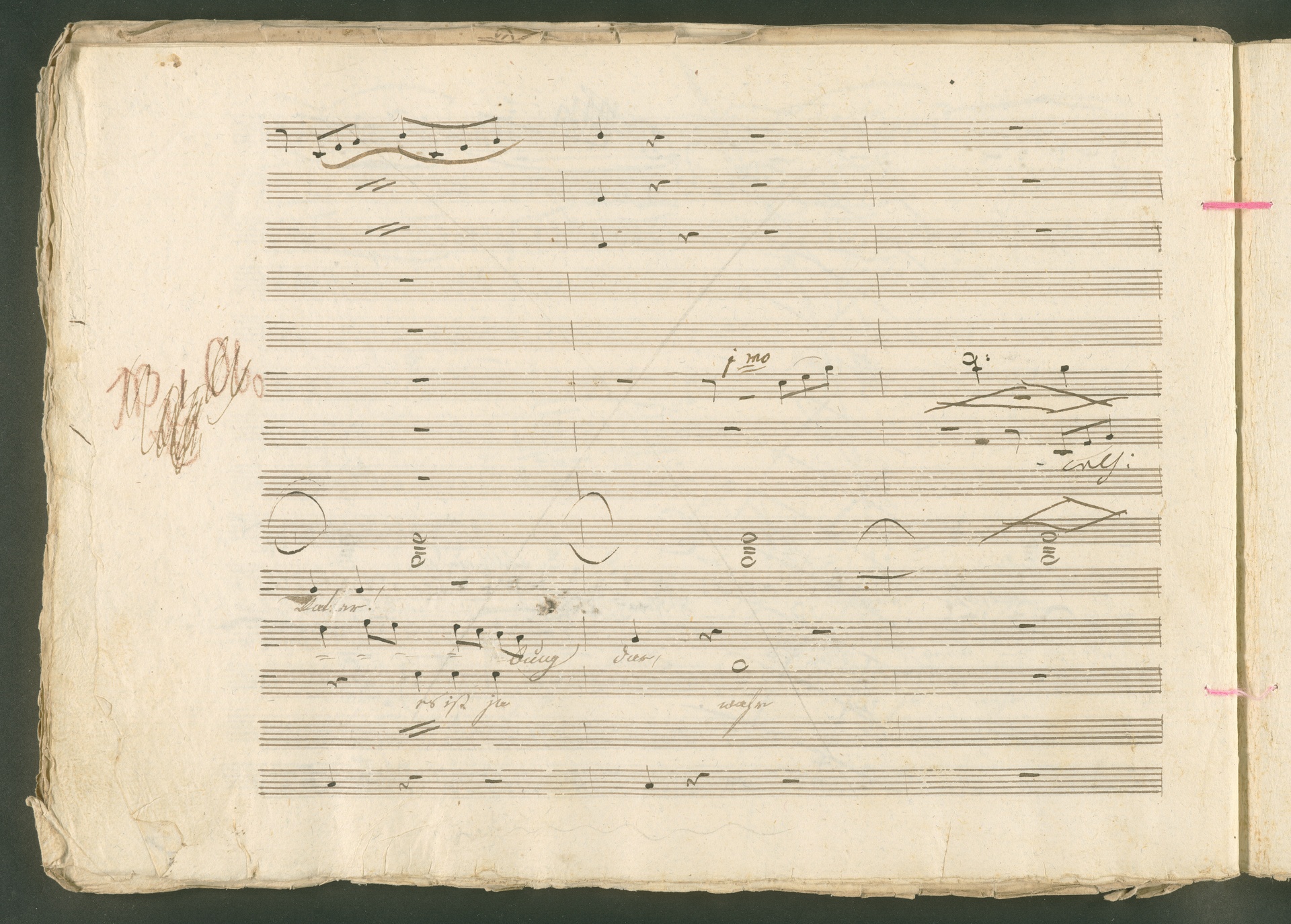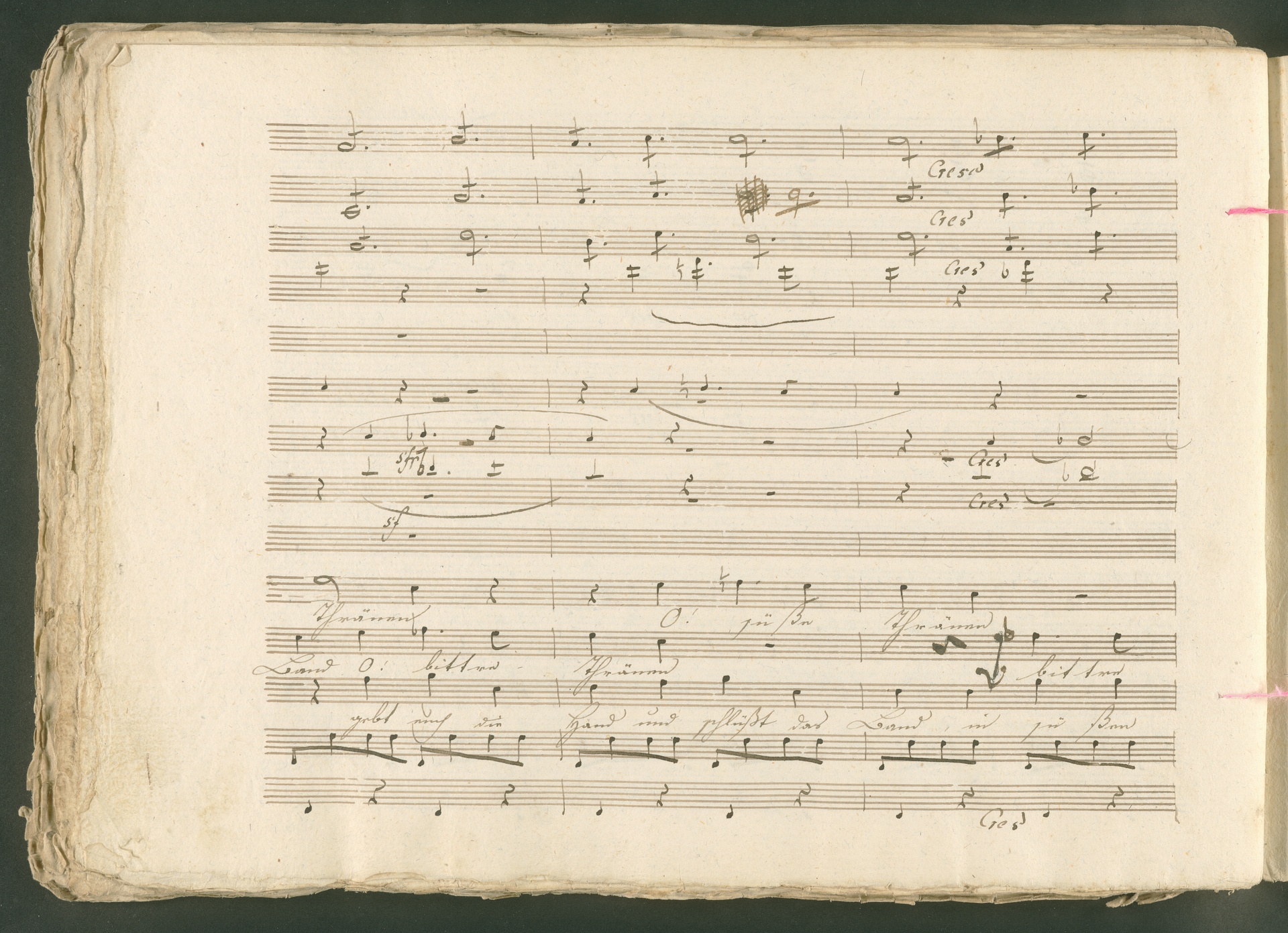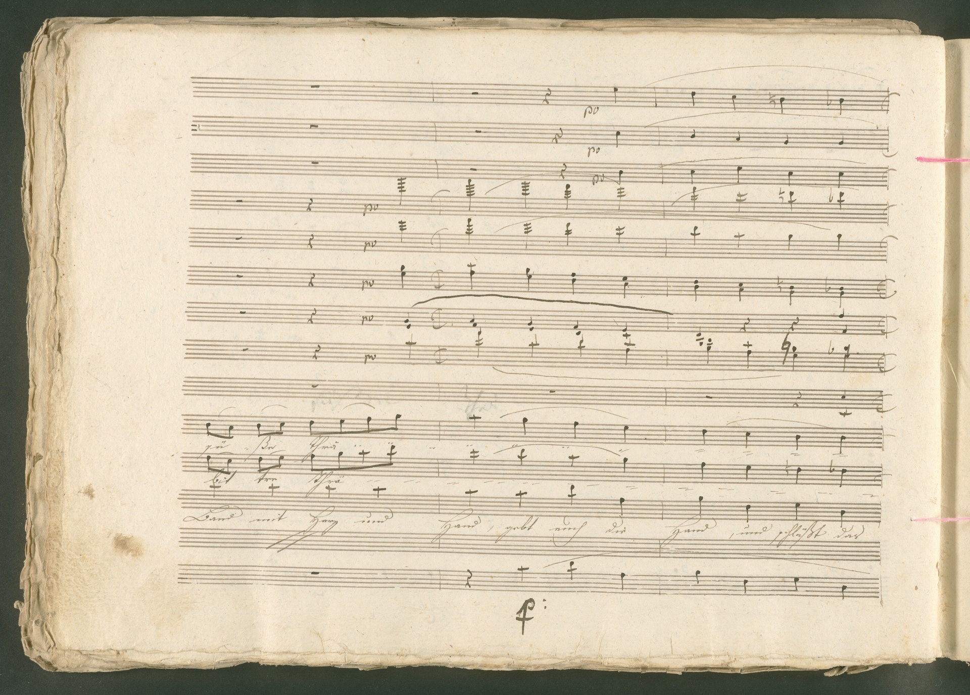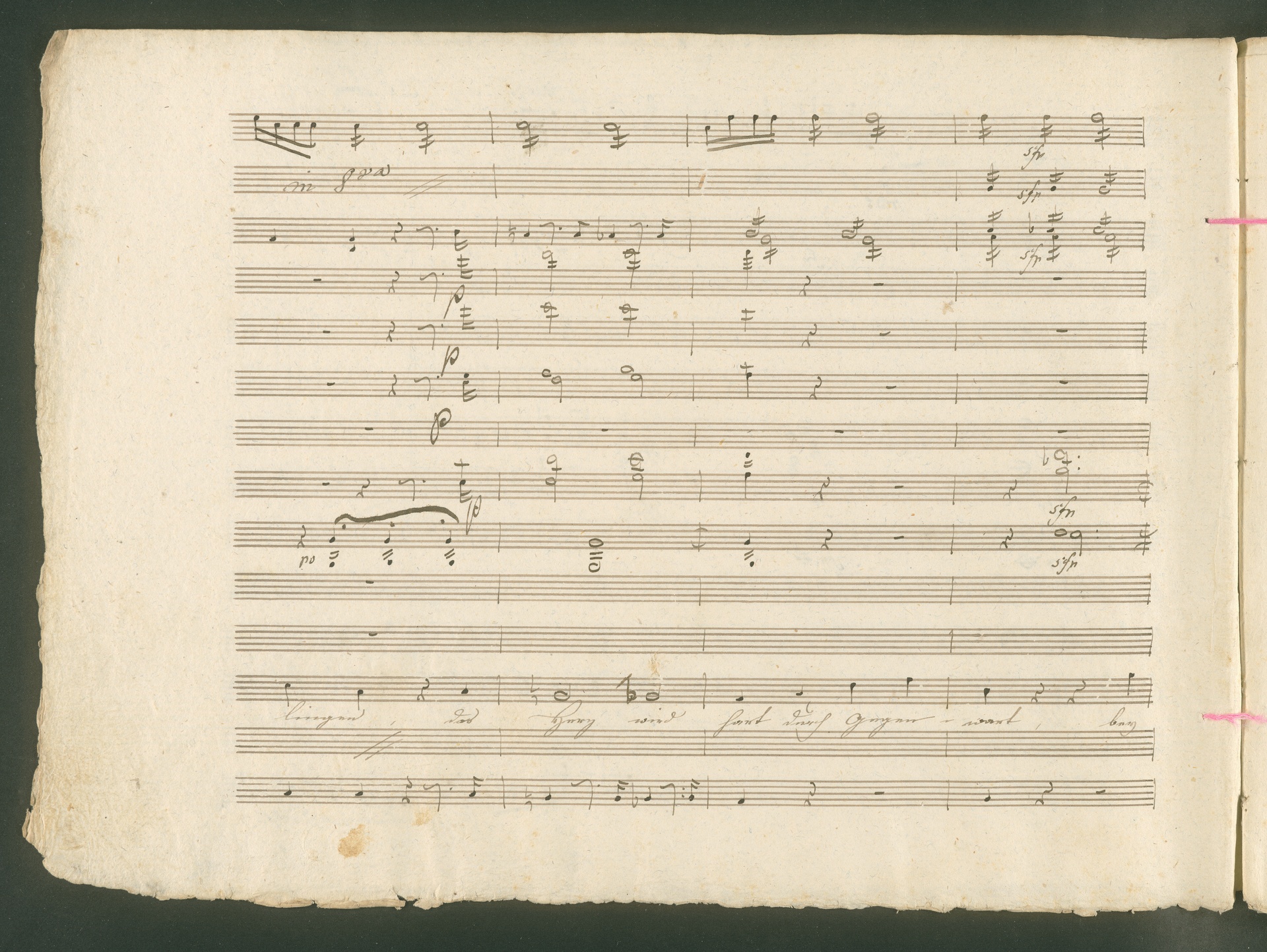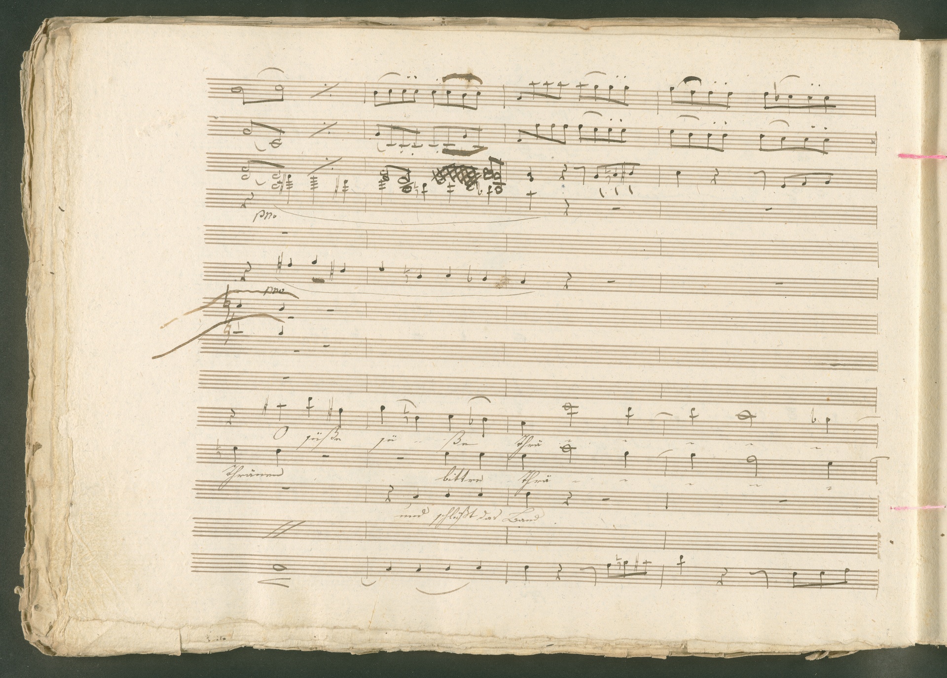 The trio from Beethoven's opera Fidelio "Gut, Söhnchen, gut" ("Well said, my son"), of which we can see a corrected copy for the 1806 version, is the most problematic number in the opera. It is very long (in 1805 it had 232 bars, the version for 1806 211 bars and the 1814 version was shortened to 198 bars) and was originally the end of the exposition. Despite being shortened the trio only received minor revisions. While it still had a place amongst the other lighthearted numbers in 1806, its dramatic role changed in 1814 as the comic-larmoyante plot surrounding Marzelline was greatly reduced. (J.R.)