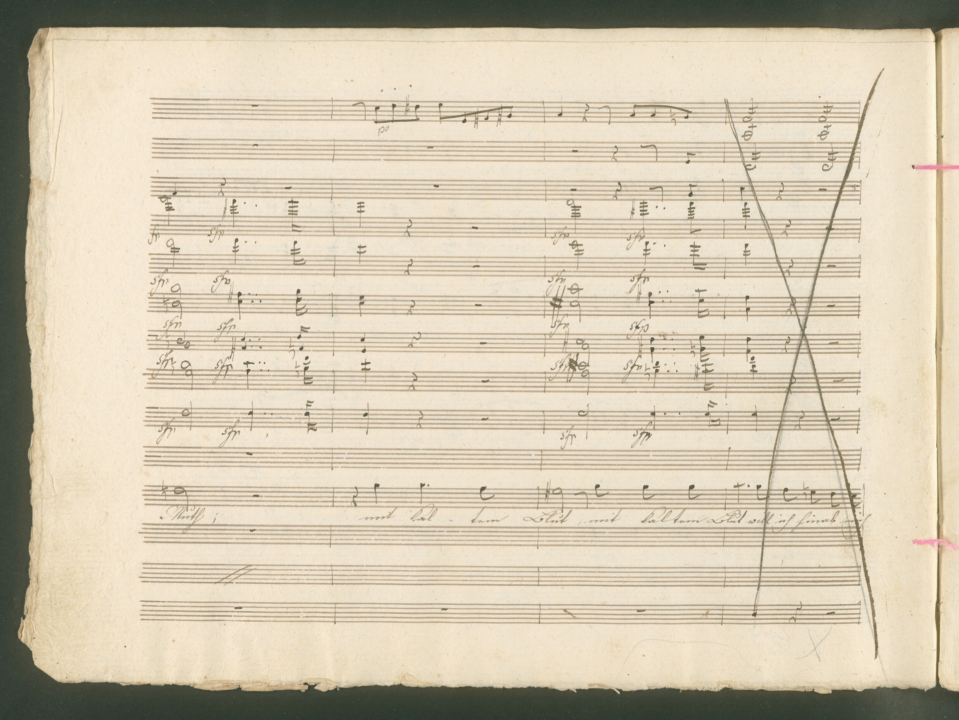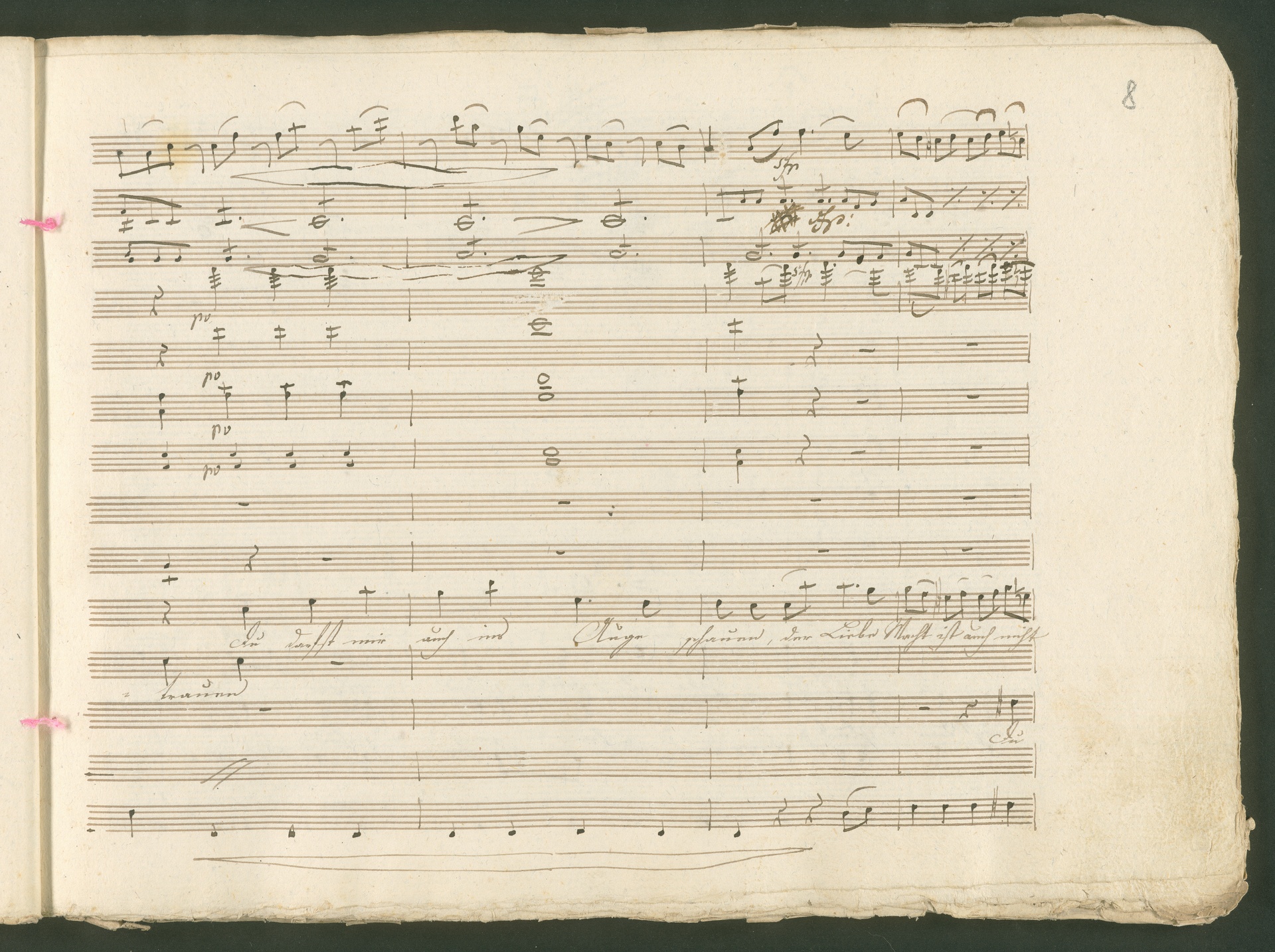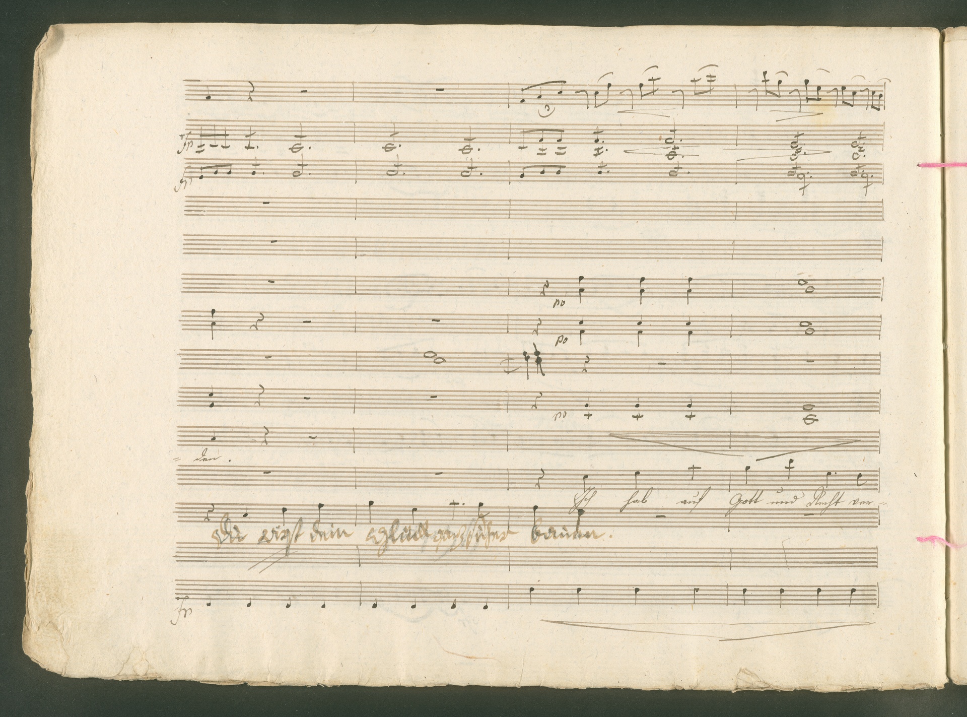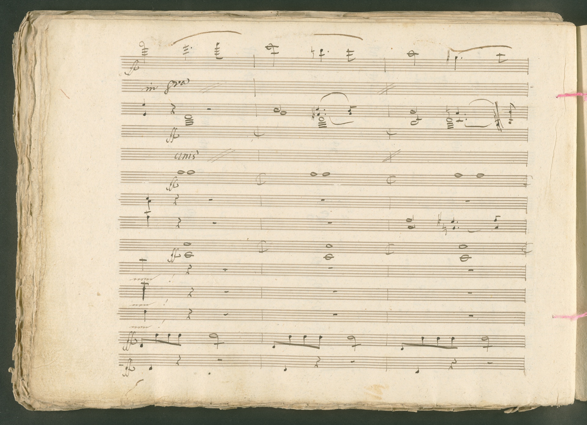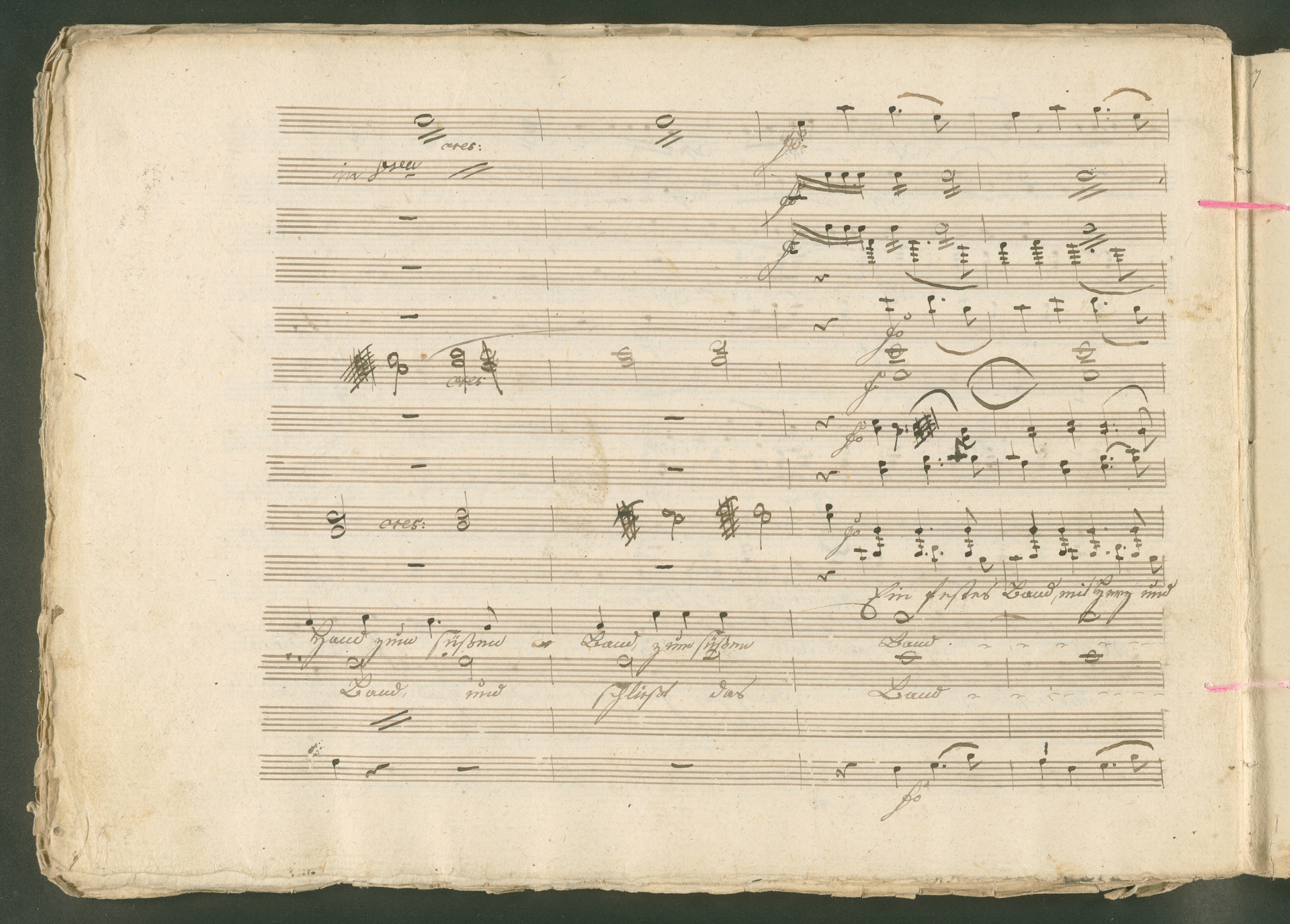 The trio from Beethoven's opera Fidelio "Gut, Söhnchen, gut" ("Well said, my son"), of which we can see a corrected copy for the 1806 version, is the most problematic number in the opera. It is very long (in 1805 it had 232 bars, the version for 1806 211 bars and the 1814 version was shortened to 198 bars) and was originally the end of the exposition. Despite being shortened the trio only received minor revisions. While it still had a place amongst the other lighthearted numbers in 1806, its dramatic role changed in 1814 as the comic-larmoyante plot surrounding Marzelline was greatly reduced. (J.R.)
