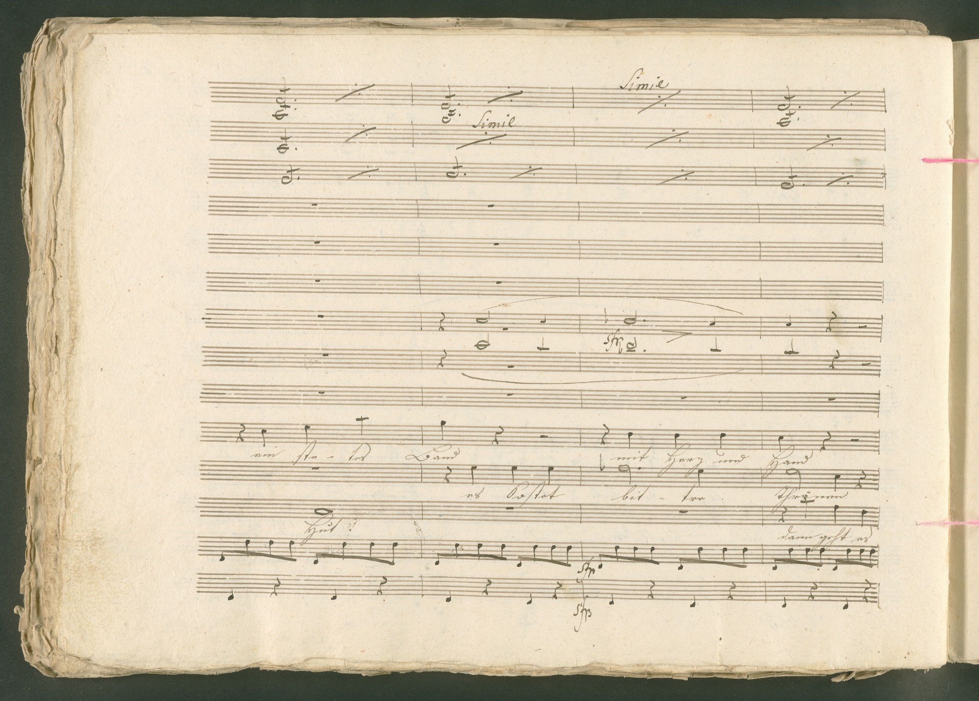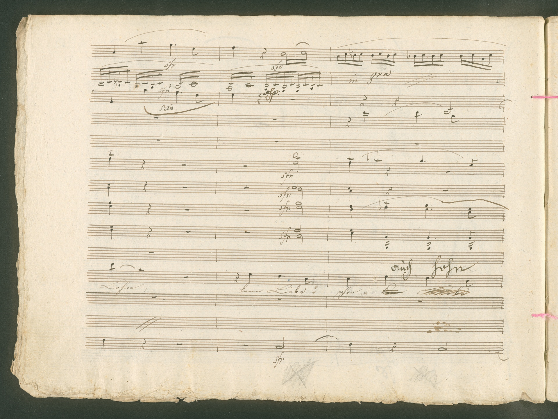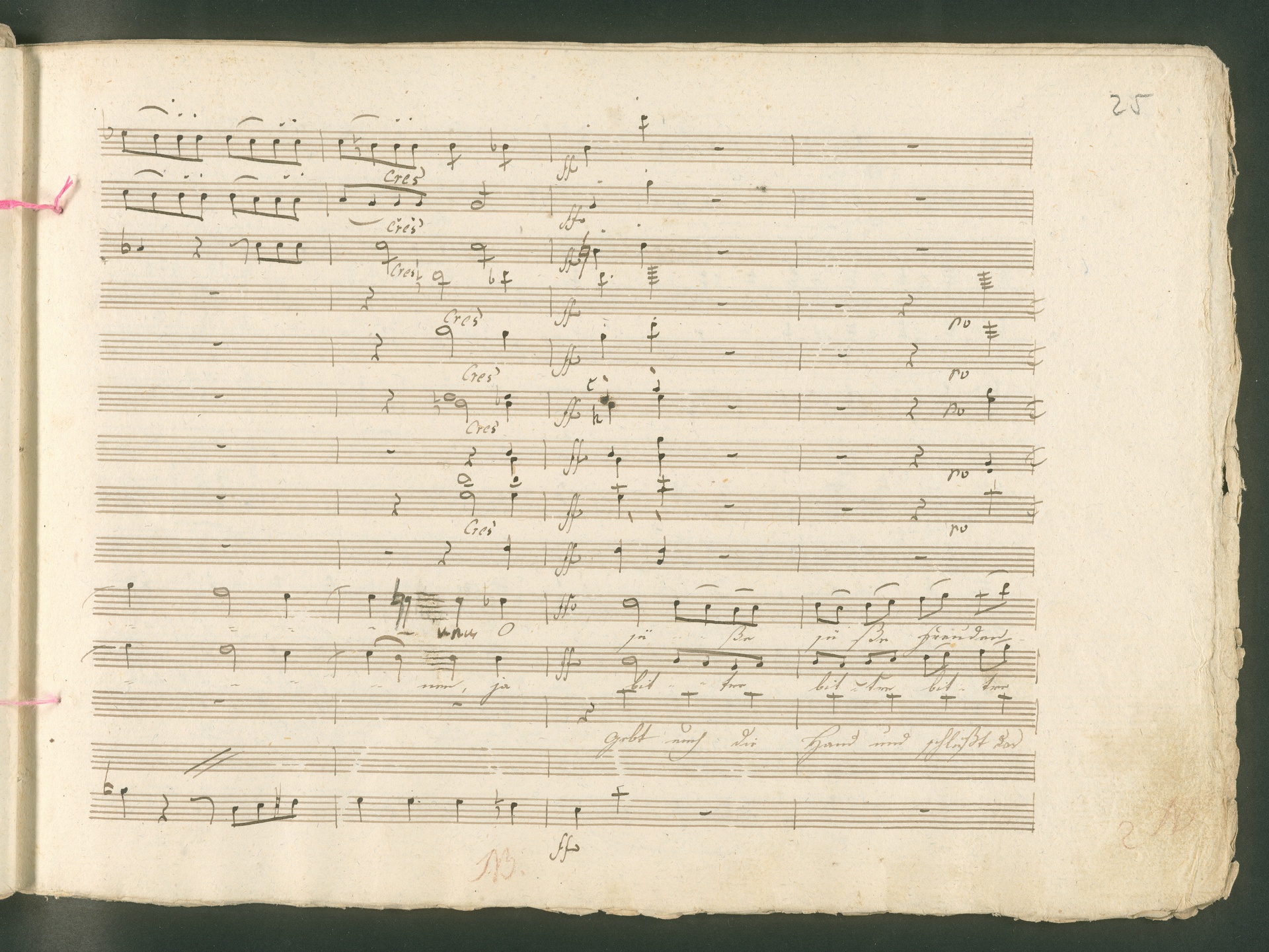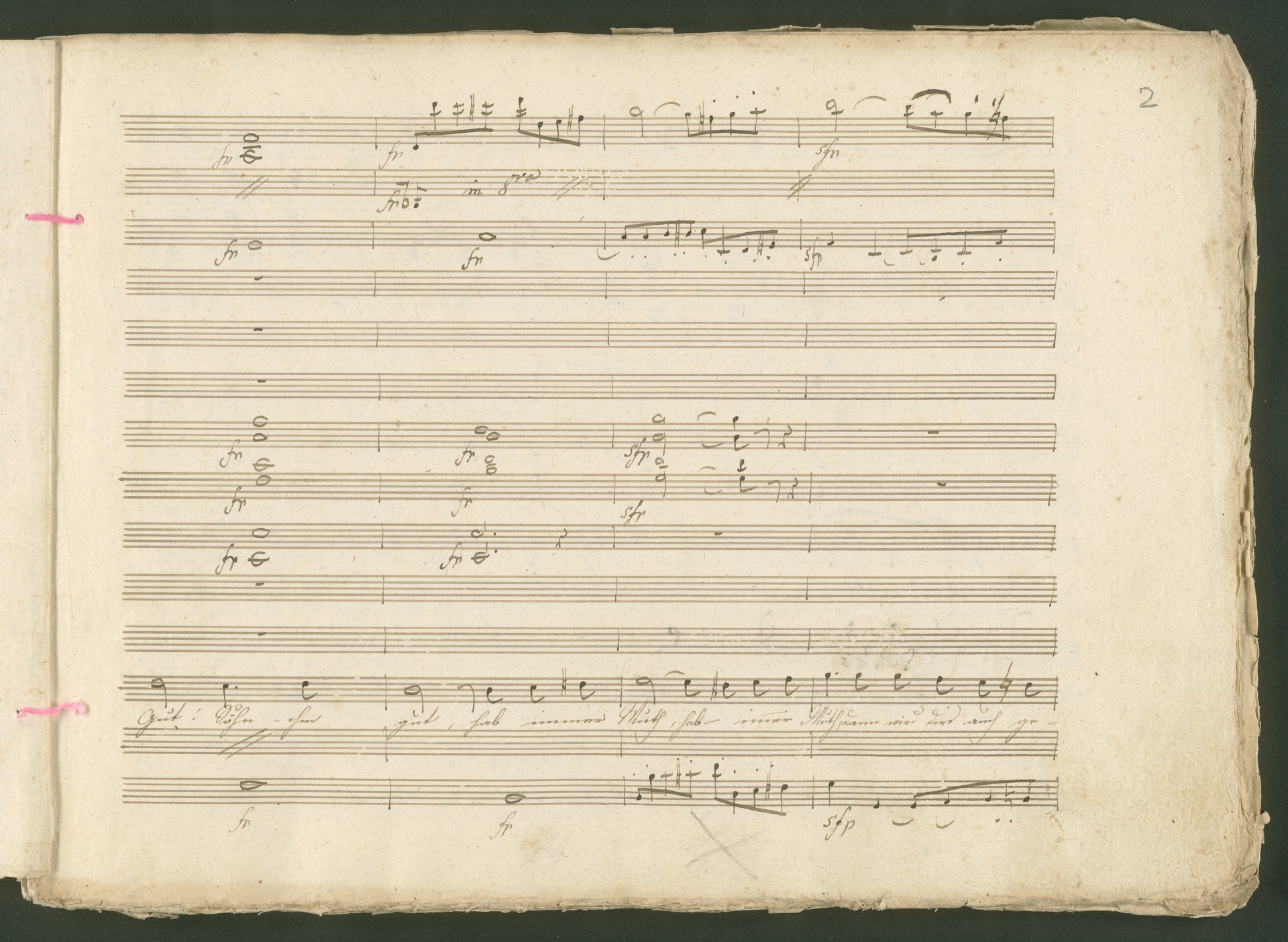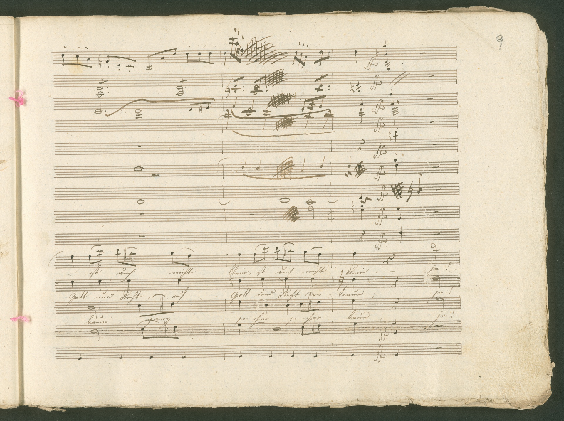 The trio from Beethoven's opera Fidelio "Gut, Söhnchen, gut" ("Well said, my son"), of which we can see a corrected copy for the 1806 version, is the most problematic number in the opera. It is very long (in 1805 it had 232 bars, the version for 1806 211 bars and the 1814 version was shortened to 198 bars) and was originally the end of the exposition. Despite being shortened the trio only received minor revisions. While it still had a place amongst the other lighthearted numbers in 1806, its dramatic role changed in 1814 as the comic-larmoyante plot surrounding Marzelline was greatly reduced. (J.R.)