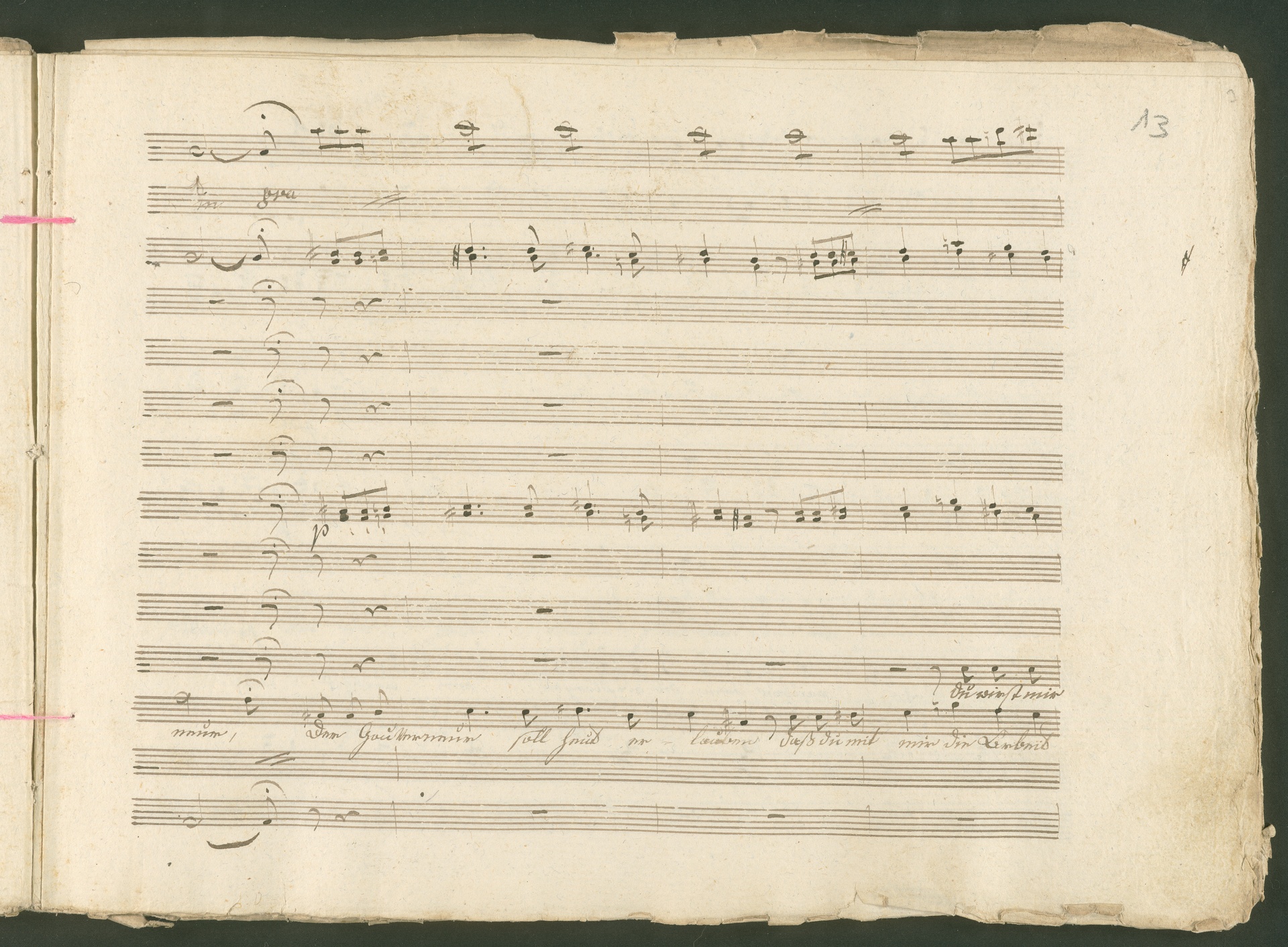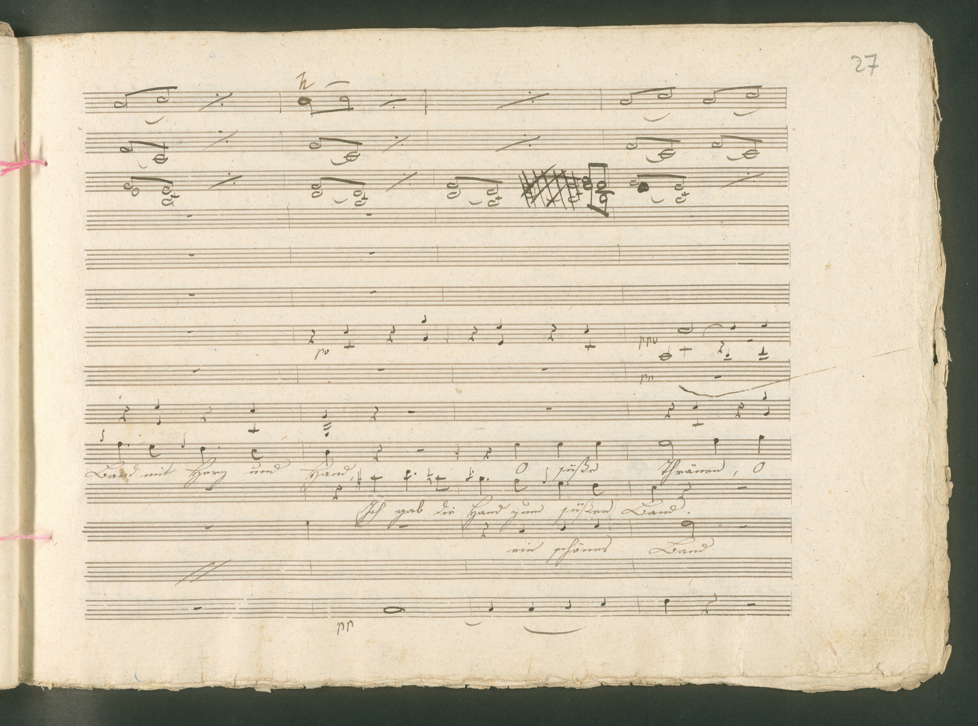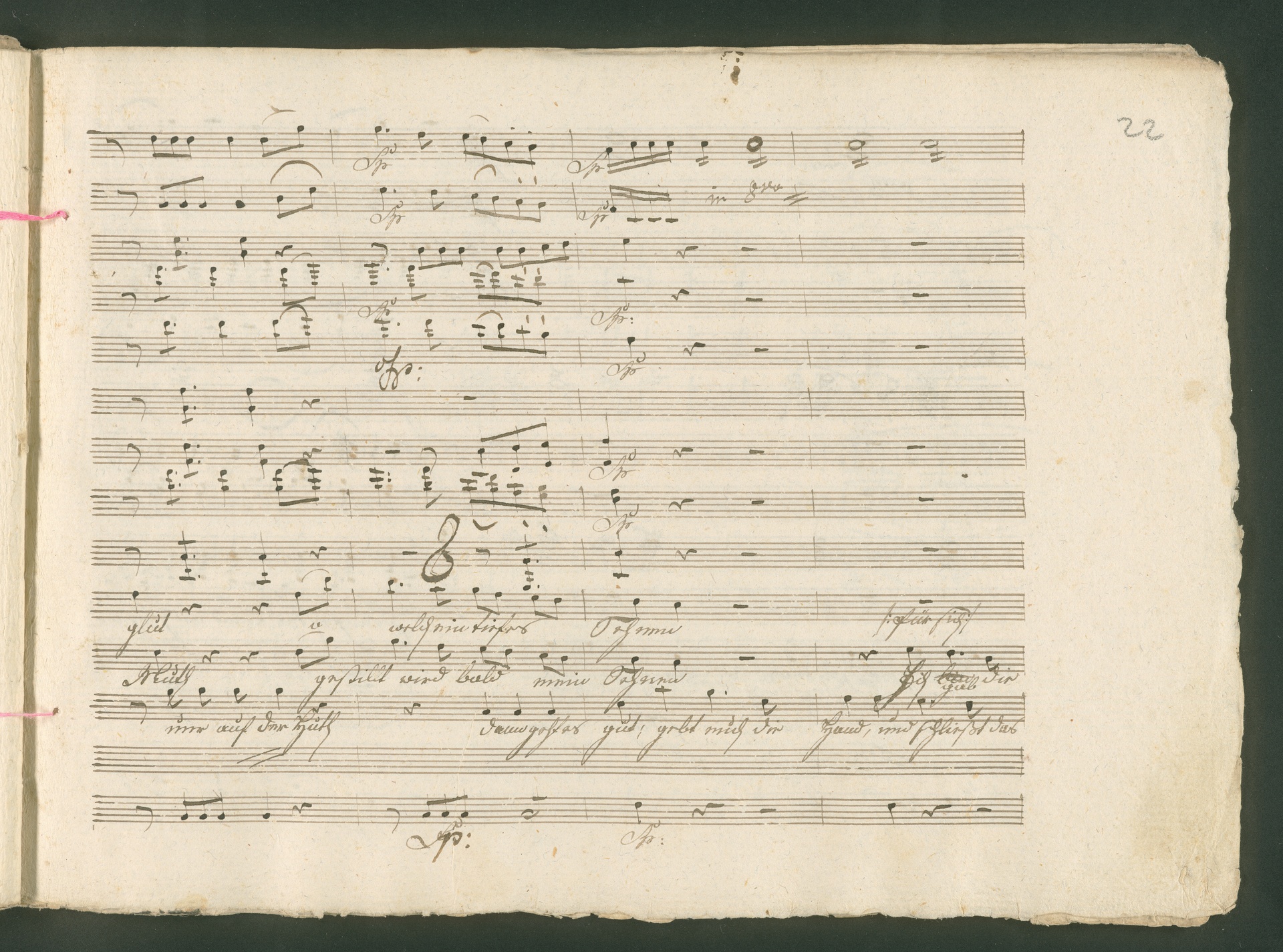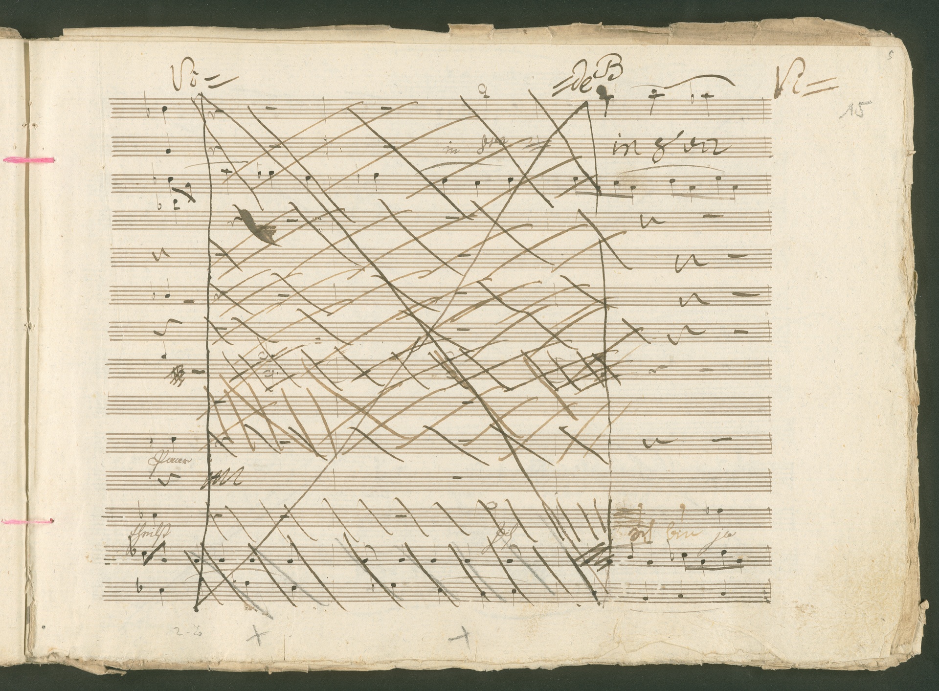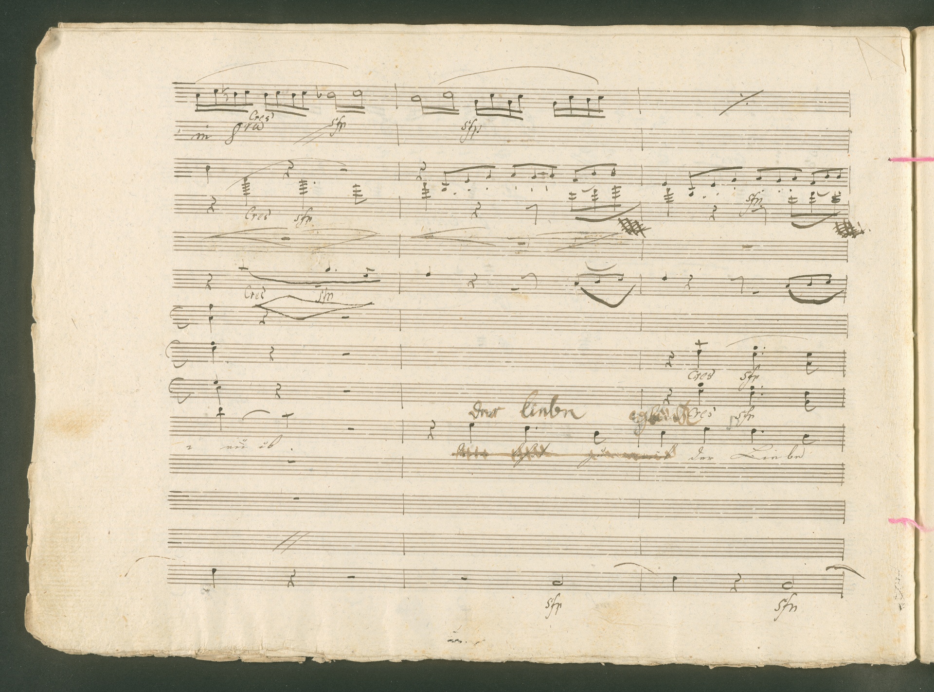 The trio from Beethoven's opera Fidelio "Gut, Söhnchen, gut" ("Well said, my son"), of which we can see a corrected copy for the 1806 version, is the most problematic number in the opera. It is very long (in 1805 it had 232 bars, the version for 1806 211 bars and the 1814 version was shortened to 198 bars) and was originally the end of the exposition. Despite being shortened the trio only received minor revisions. While it still had a place amongst the other lighthearted numbers in 1806, its dramatic role changed in 1814 as the comic-larmoyante plot surrounding Marzelline was greatly reduced. (J.R.)