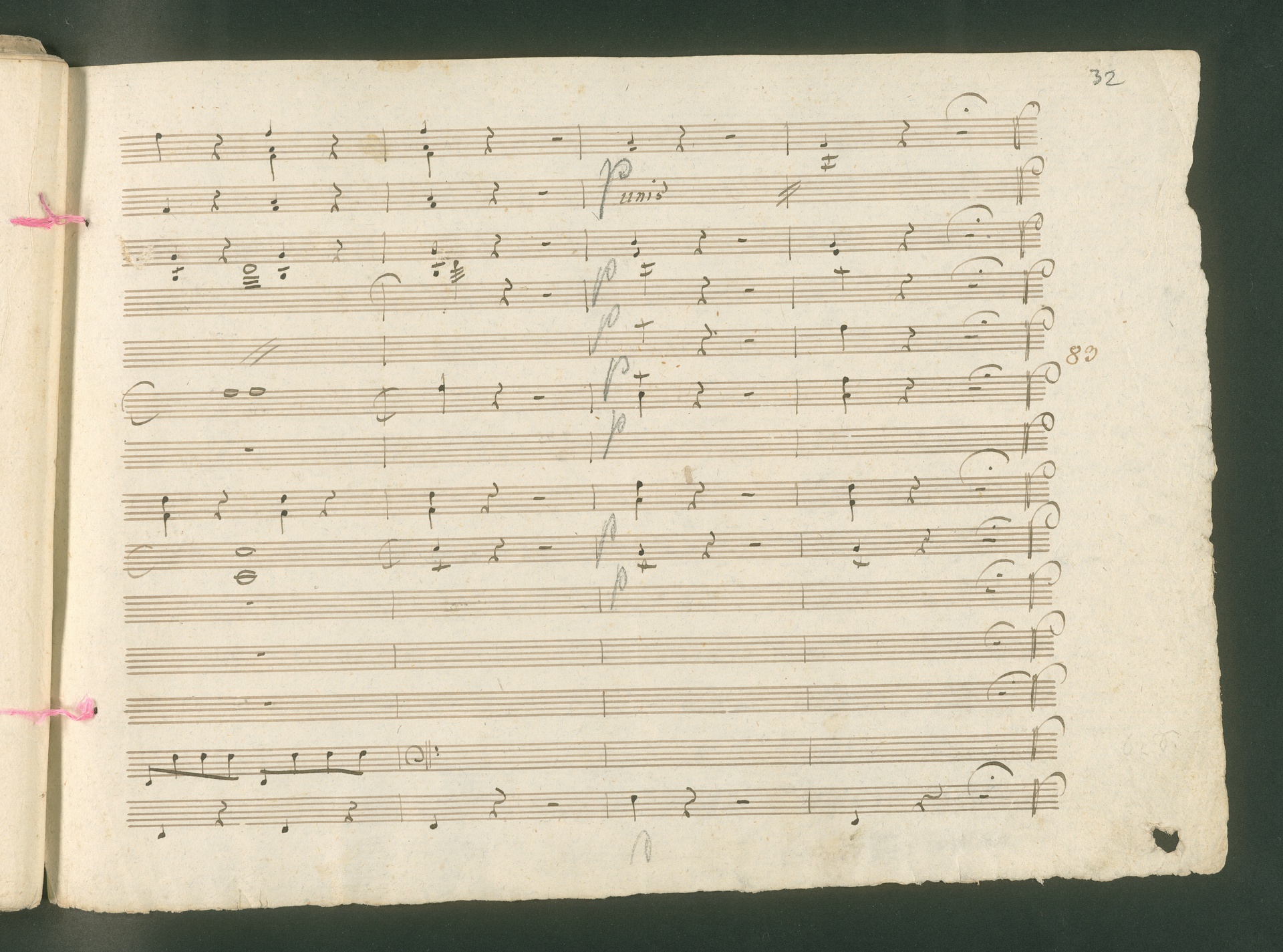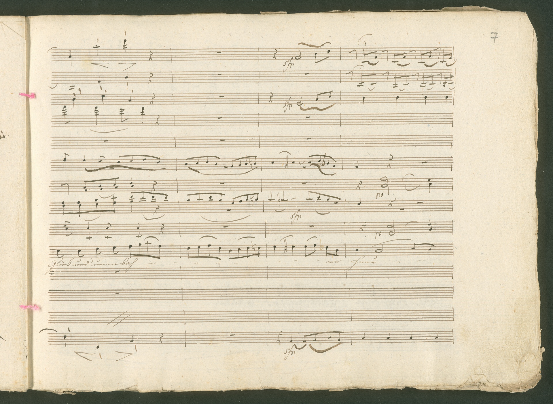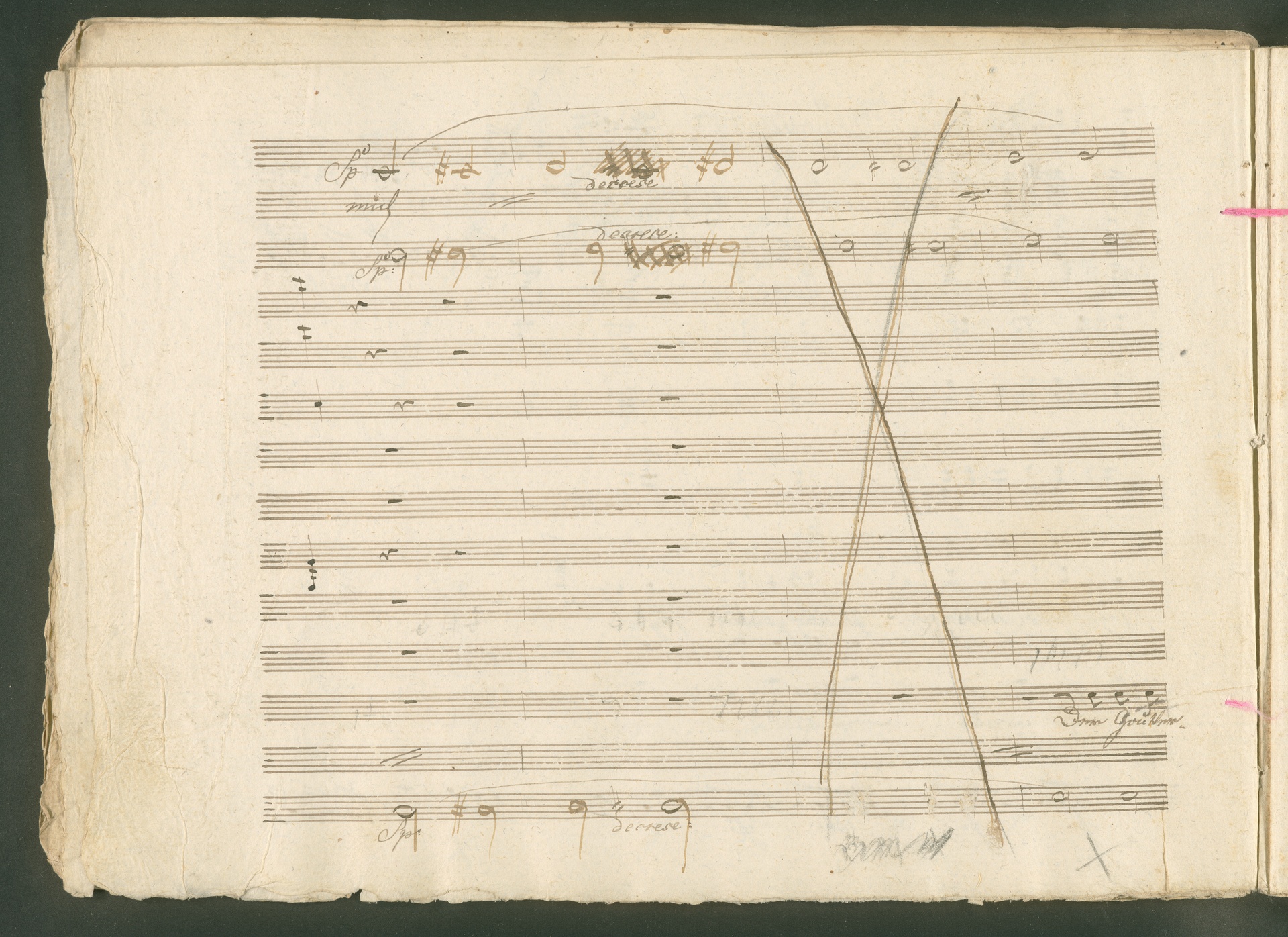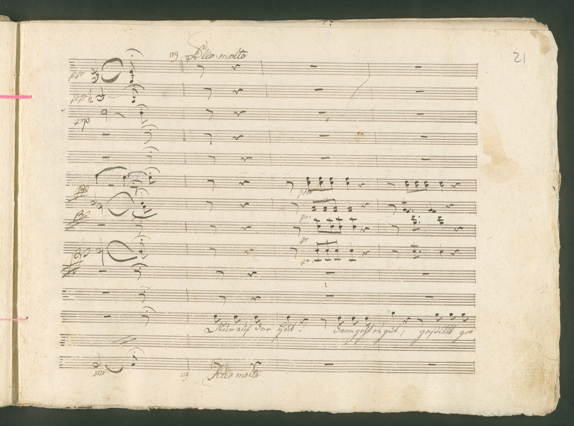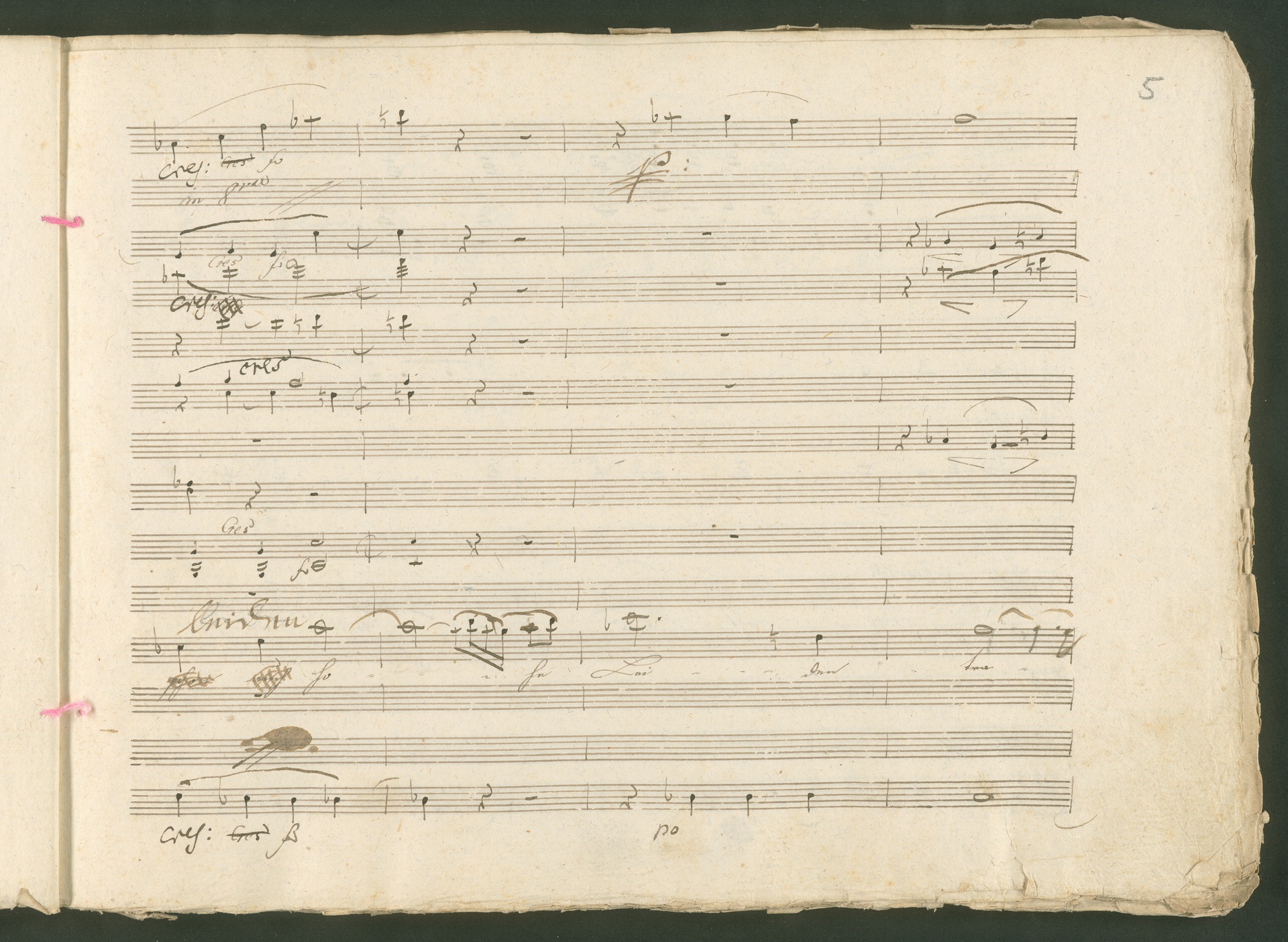 The trio from Beethoven's opera Fidelio "Gut, Söhnchen, gut" ("Well said, my son"), of which we can see a corrected copy for the 1806 version, is the most problematic number in the opera. It is very long (in 1805 it had 232 bars, the version for 1806 211 bars and the 1814 version was shortened to 198 bars) and was originally the end of the exposition. Despite being shortened the trio only received minor revisions. While it still had a place amongst the other lighthearted numbers in 1806, its dramatic role changed in 1814 as the comic-larmoyante plot surrounding Marzelline was greatly reduced. (J.R.)