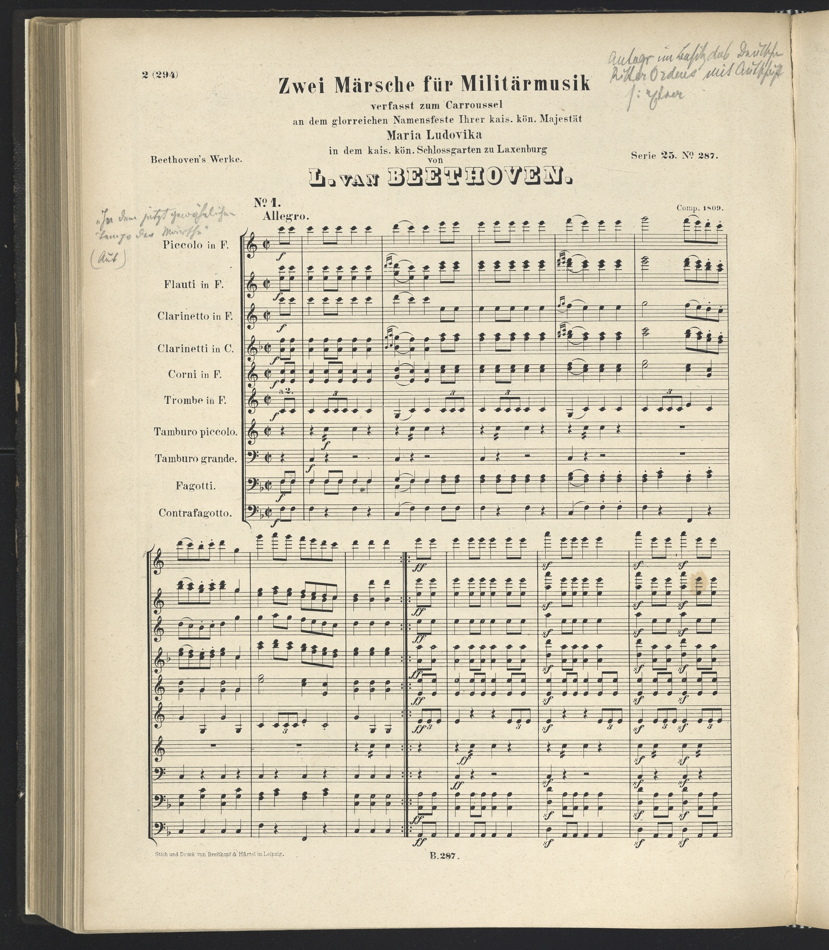 Ludwig van Beethoven, Zwei Märsche für Militärmusik (F-Dur) WoO 18 und WoO 19, Partitur, Breitkopf und Härtel, 287