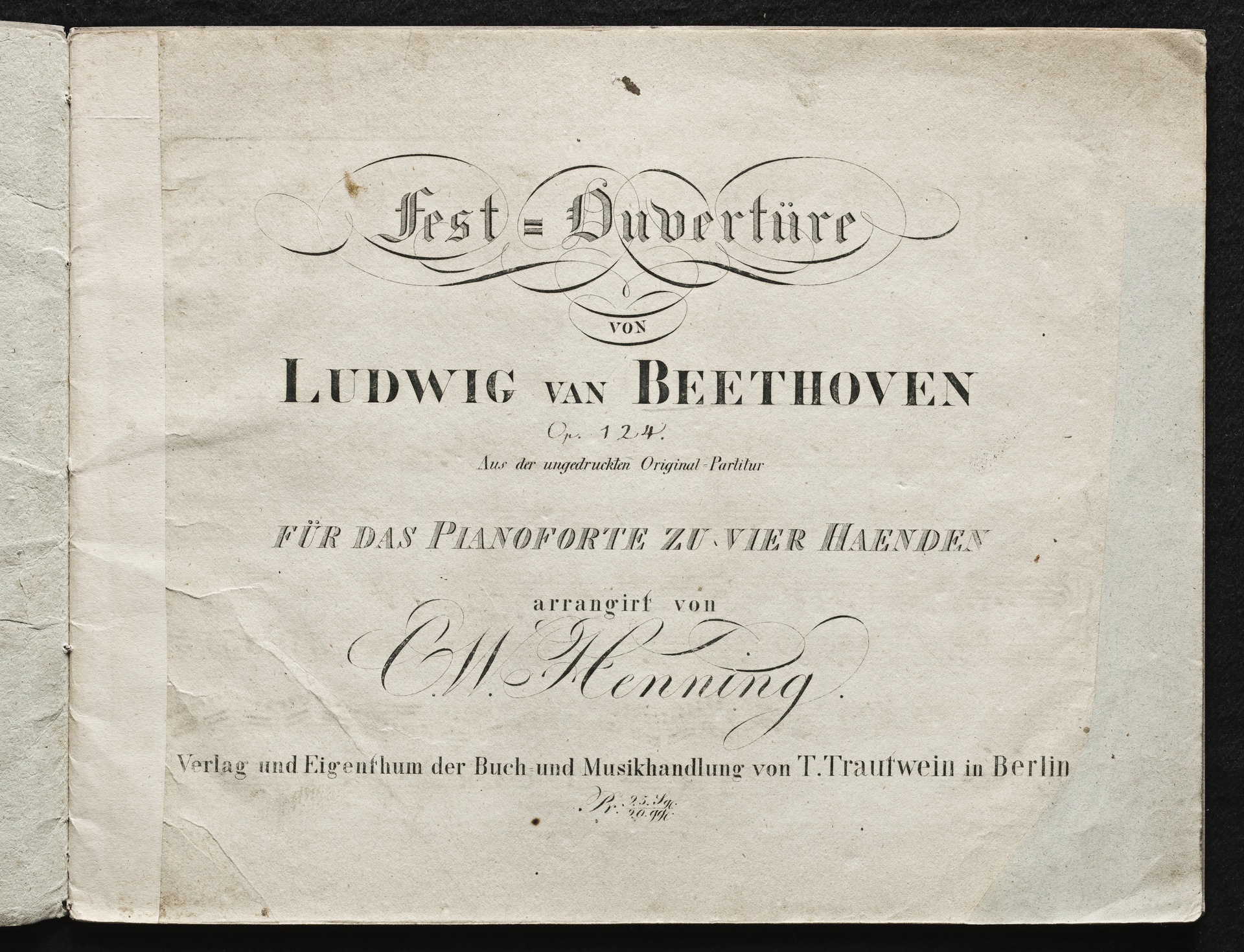 Ludwig van Beethoven, Ouvertüre (C-Dur) zu Carl Meisls Festspiel "Die Weihe des Hauses" op. 124, Bearbeitung für Klavier zu 4 Händen von Carl Wilhelm Henning, Trautwein