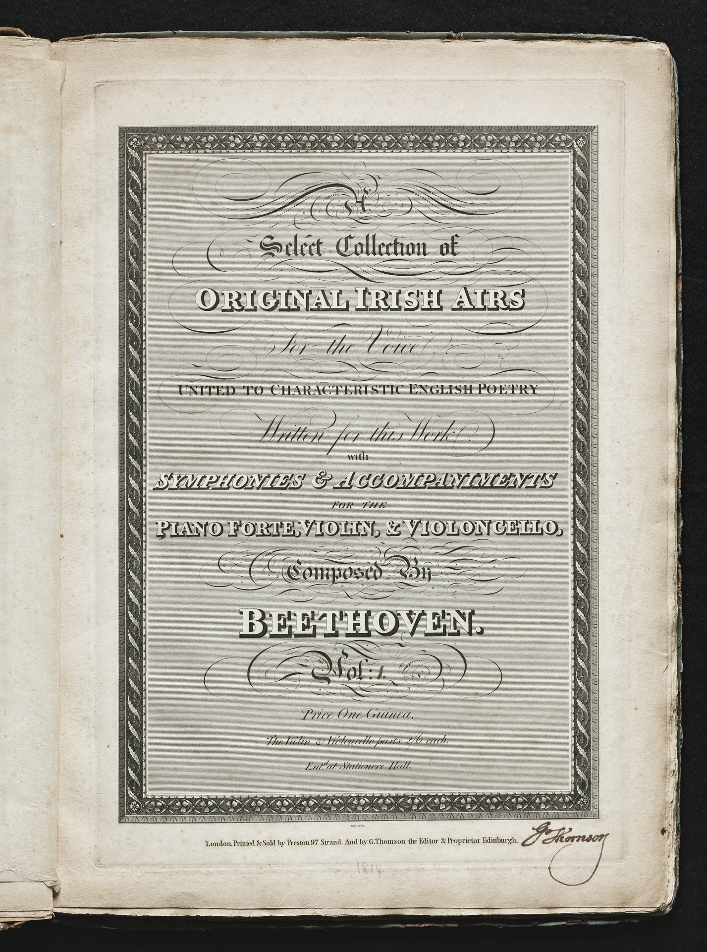 Ludwig van Beethoven, "Irische Lieder" für eine oder mehrere Singstimmen, Violine, Violoncello und Klavier WoO 152, Klavierpartitur, Thomson