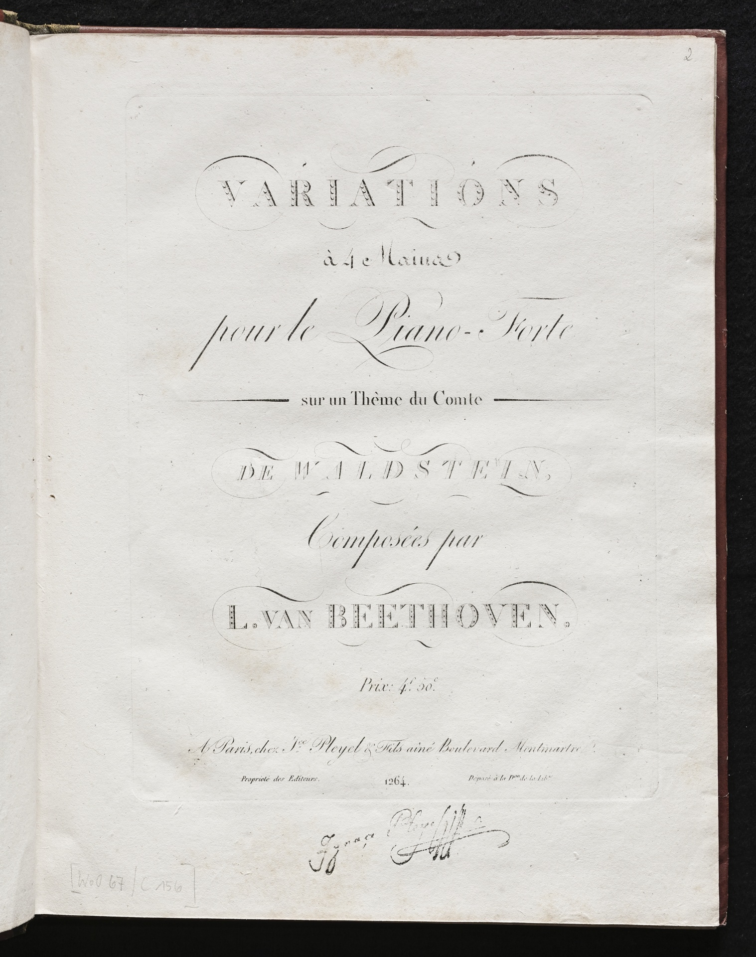 Ludwig van Beethoven, Variationen über ein Thema von Ferdinand von Waldstein für Klavier zu 4 Händen (C-Dur) WoO 67, Pleyel, 1264