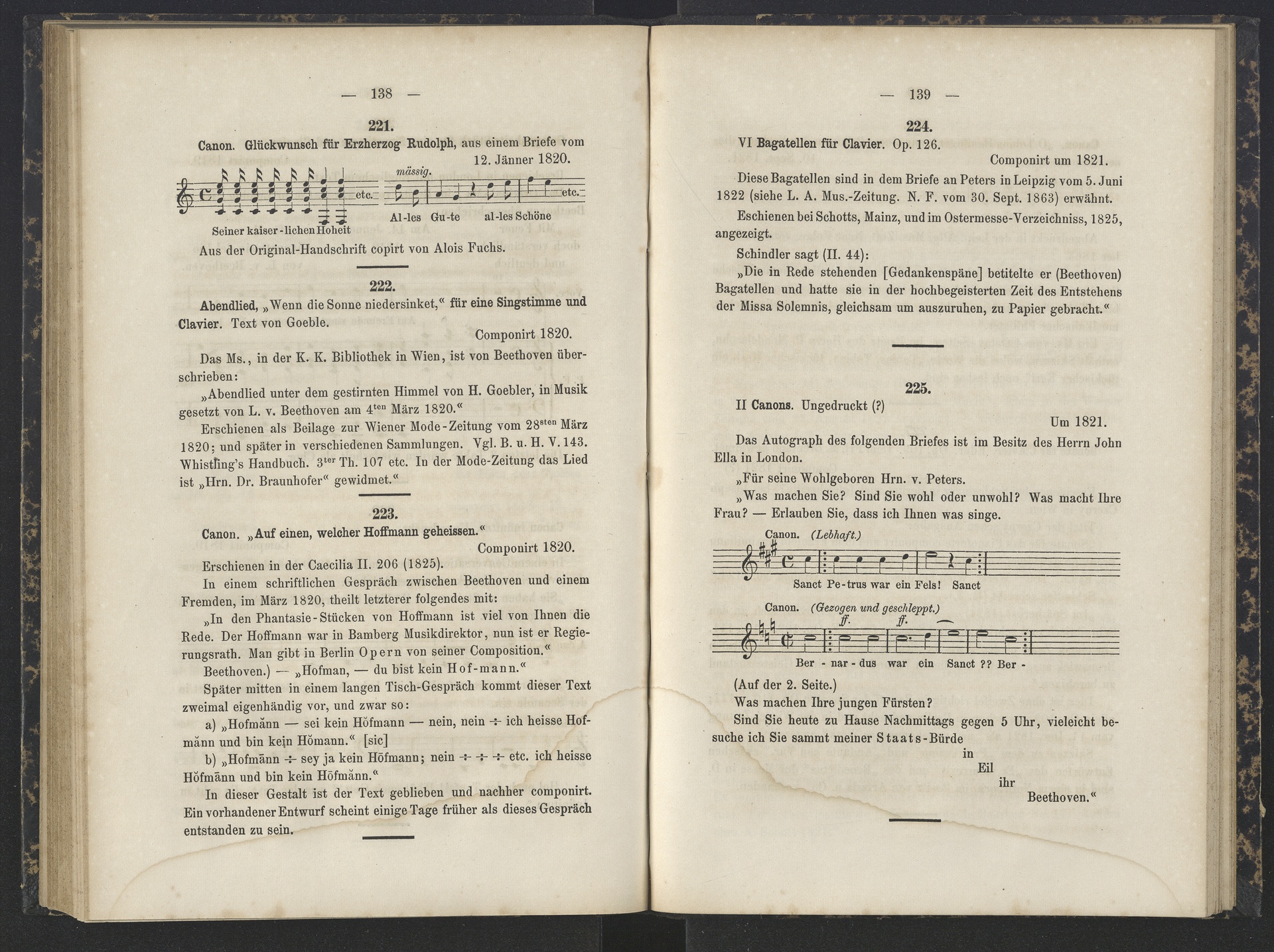 Ludwig van Beethoven, "Sankt Petrus war ein Fels, Bernardus war ein Sankt", zweistimmiger Kanon WoO 175, Thayer