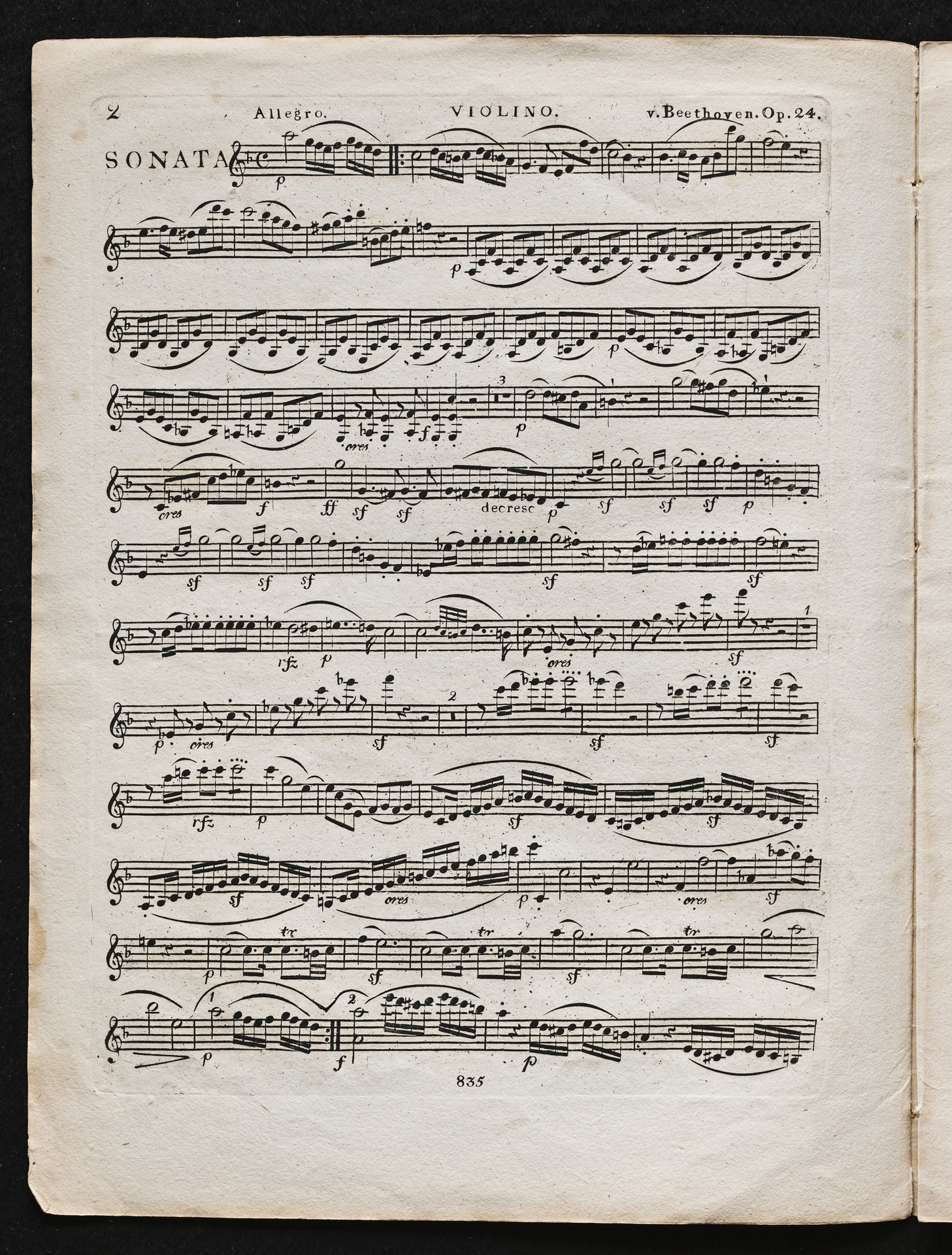 Ludwig van Beethoven, Sonate für Klavier und Violine (F-Dur) op. 24, Stimmen, Kühnel, 835