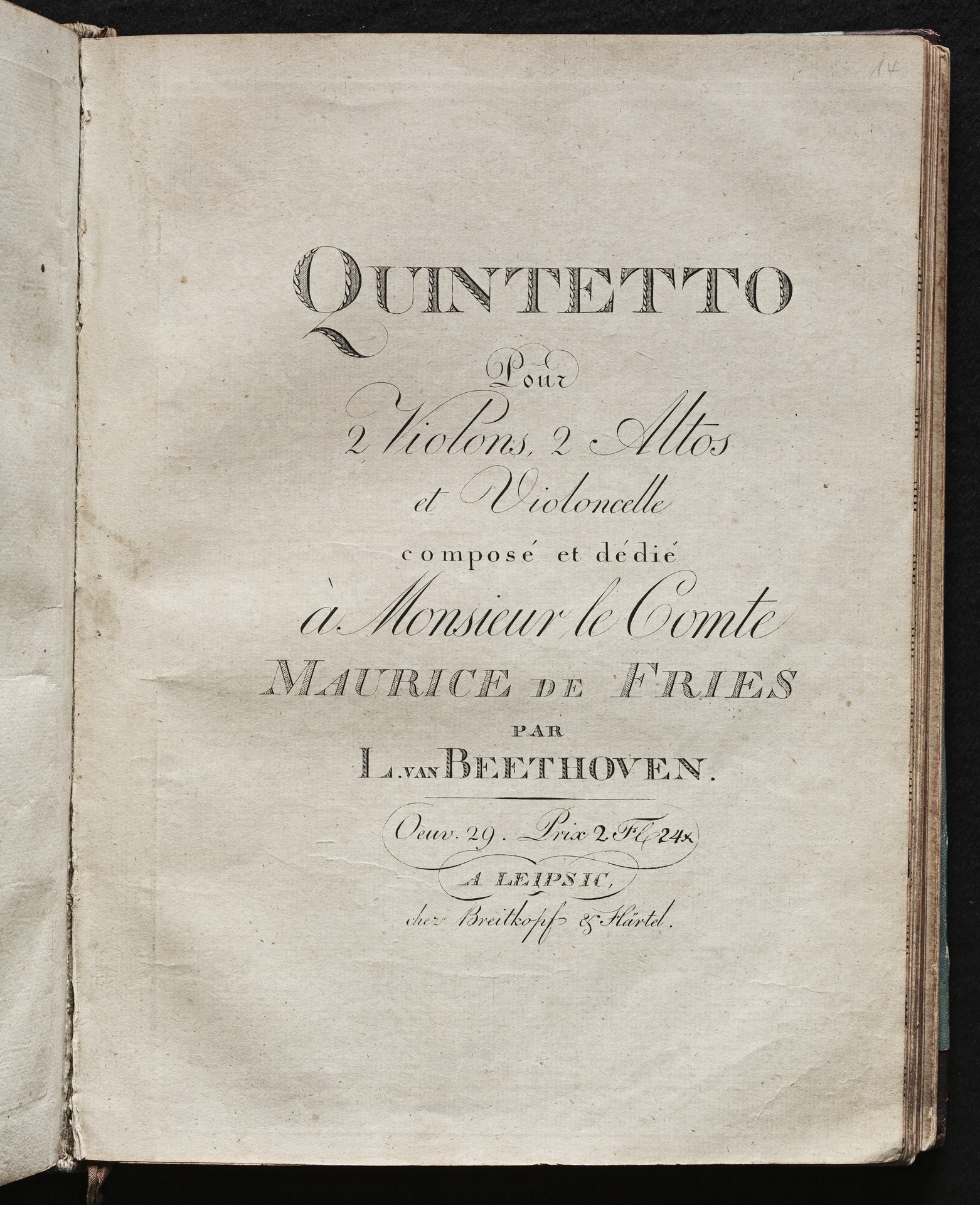 Ludwig van Beethoven, Quintett für 2 Violinen, 2 Violen, Violoncello (C-Dur) op. 29, Stimmen, Breitkopf und Härtel, 94