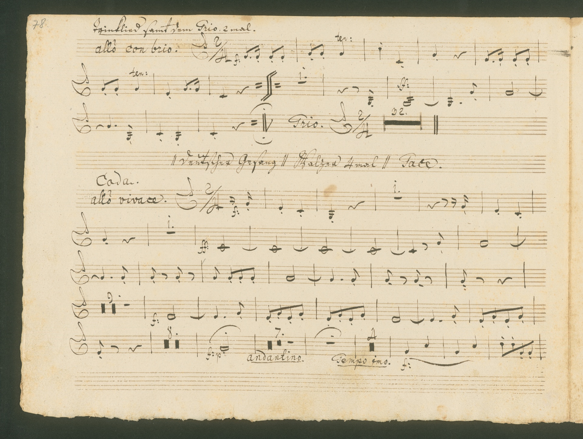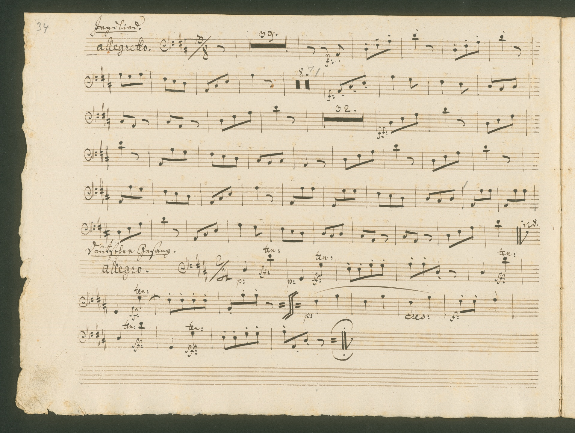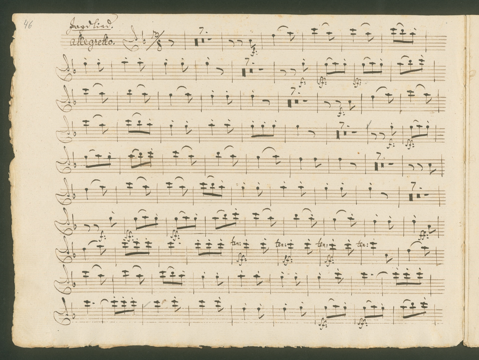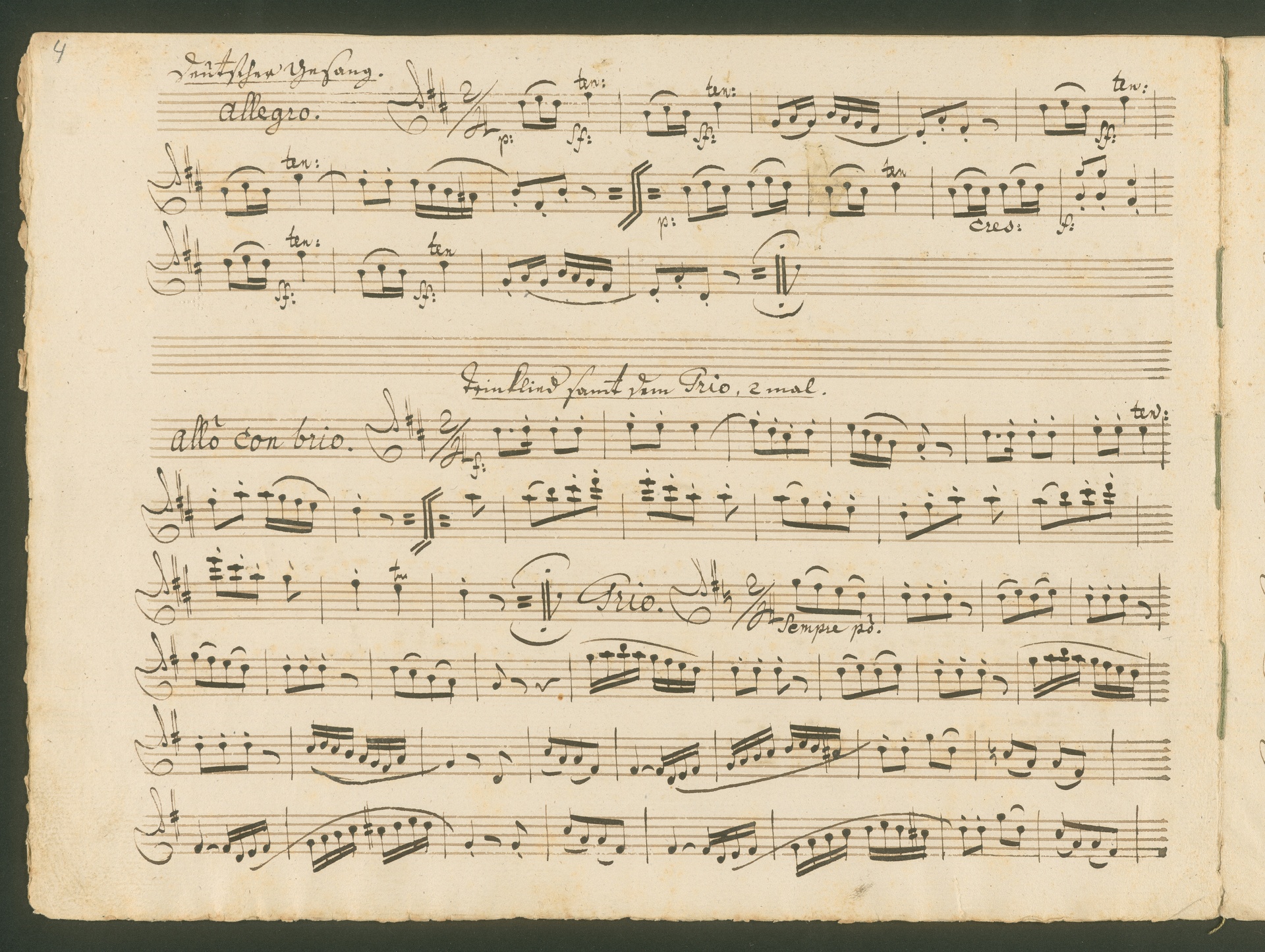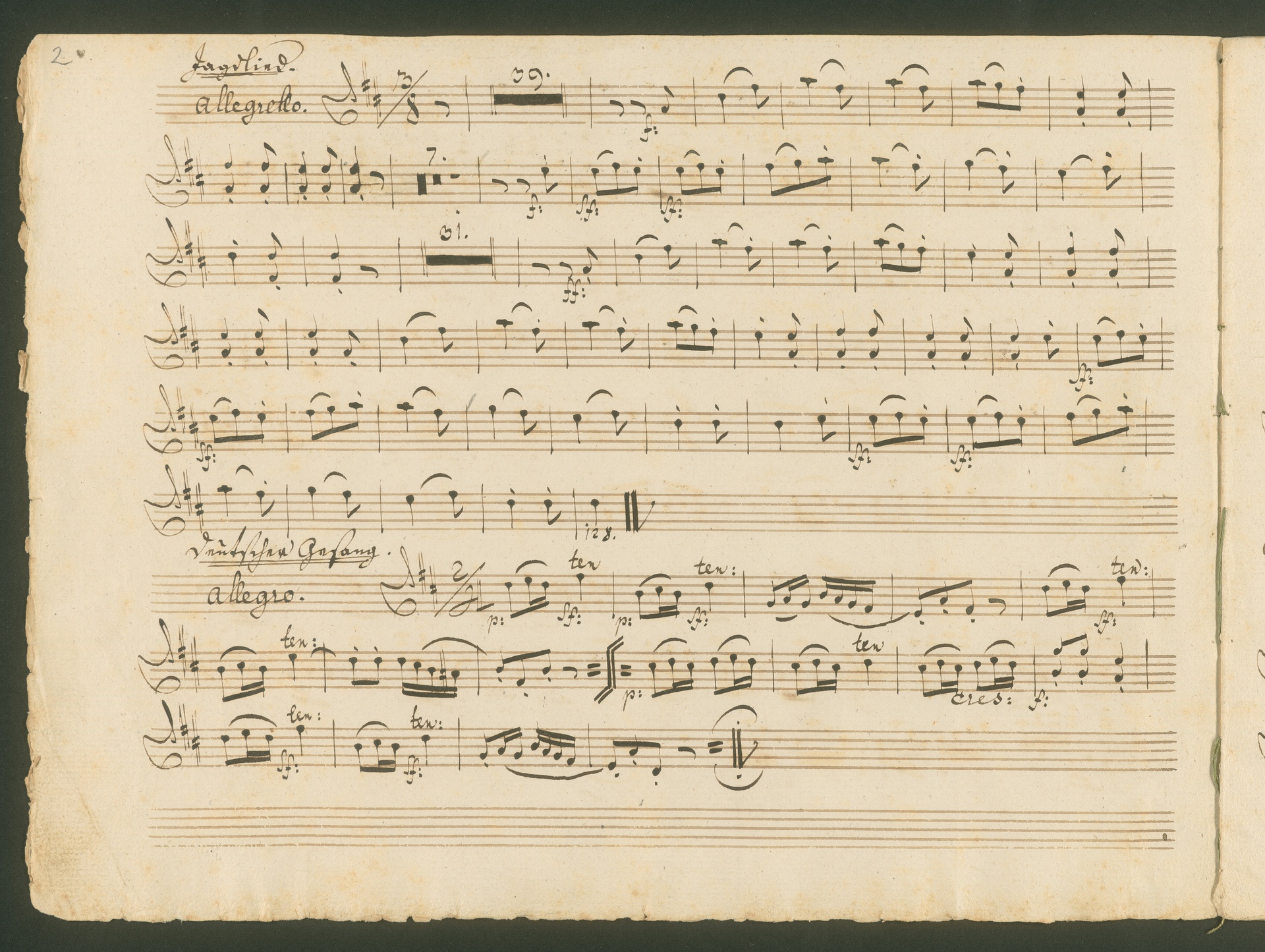 The music for the "Ritterballett" (Knight's Ballet) WoO 1 was composed for a masked ball in the spring of 1791. Here you can see a copy of each of the thirteen parts. They were probably used for the first performance in the Redoutensaal in Bonn on 6 March 1791. The ball was initiated by Count Ferdinand von Waldstein. On the Sunday in the Carnival season he invited the Bonn nobility to the "characteristic ballet in old German costume". He had "taken into account the main desires of our ancestors - war, hunting, love and carousing" as stated in a contemporary theatre yearbook. Beethoven was not mentioned anywhere as being the composer of the music. So Waldstein was not only hailed as the organizer and choreographer of the ballet but also as the composer. Beethoven's childhood friends Franz Wegeler and Ferdinand Ries corrected this error in 1838 in their Biographischen Notizen über Ludwig van Beethoven. The reason why he did not have his name mentioned is unknown. Count Waldstein was one of his patrons and supporters at the electoral court, and so maybe the composition was made as a favour to the Count. Equally unknown is whether the themes for the individual movements were actually written in part by the music-loving Count. (J.R.)