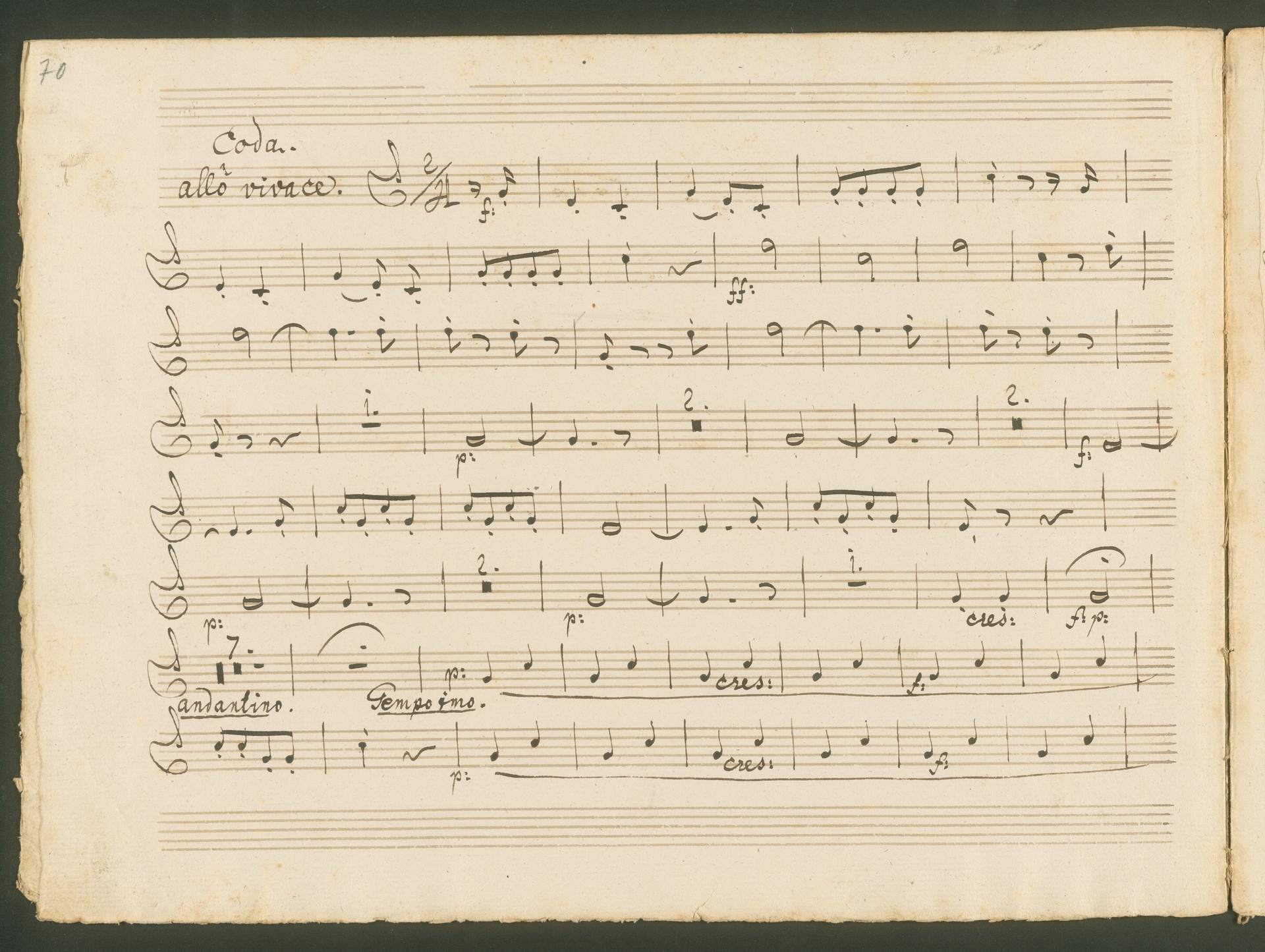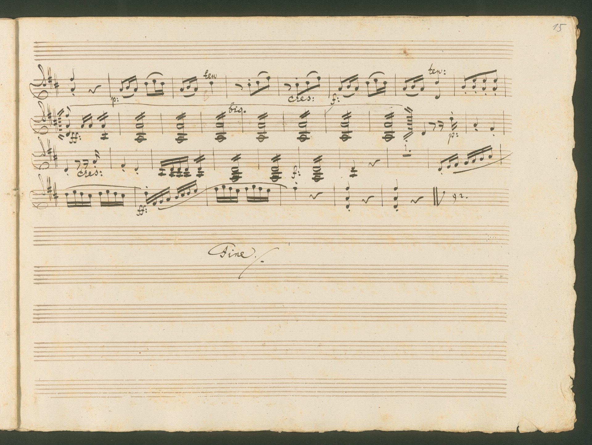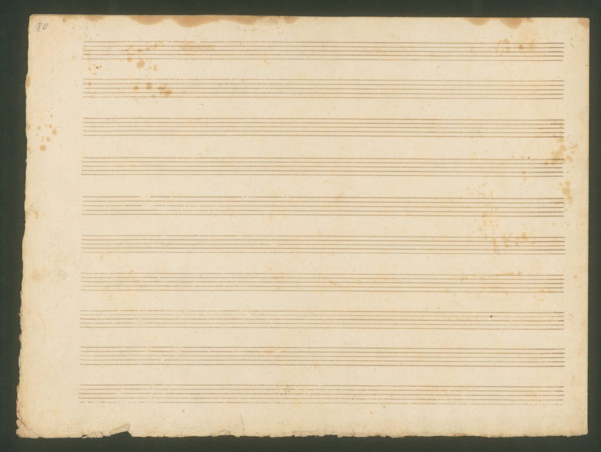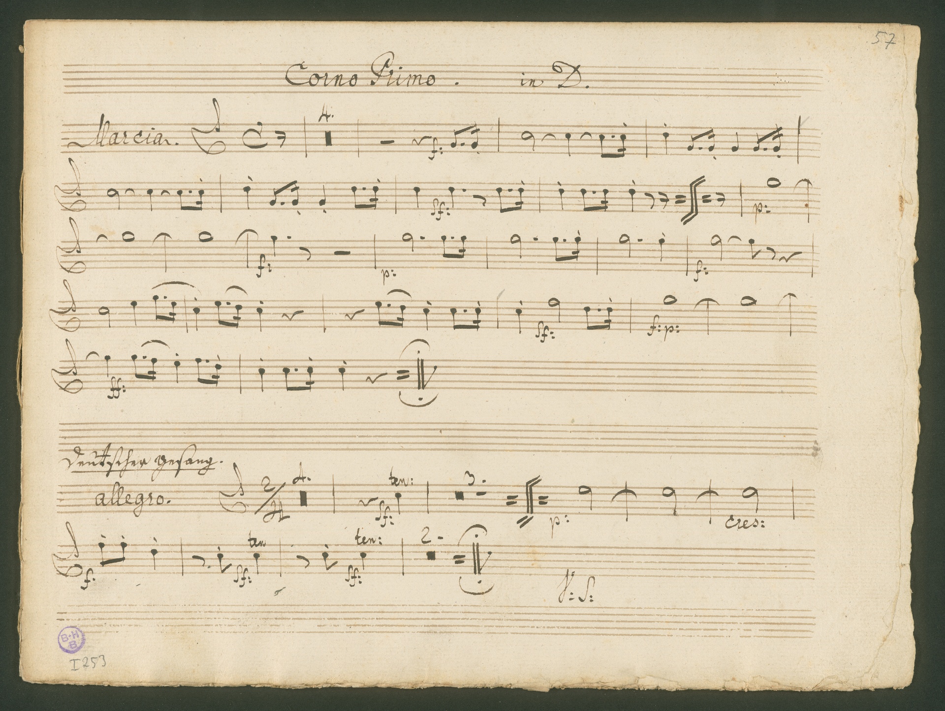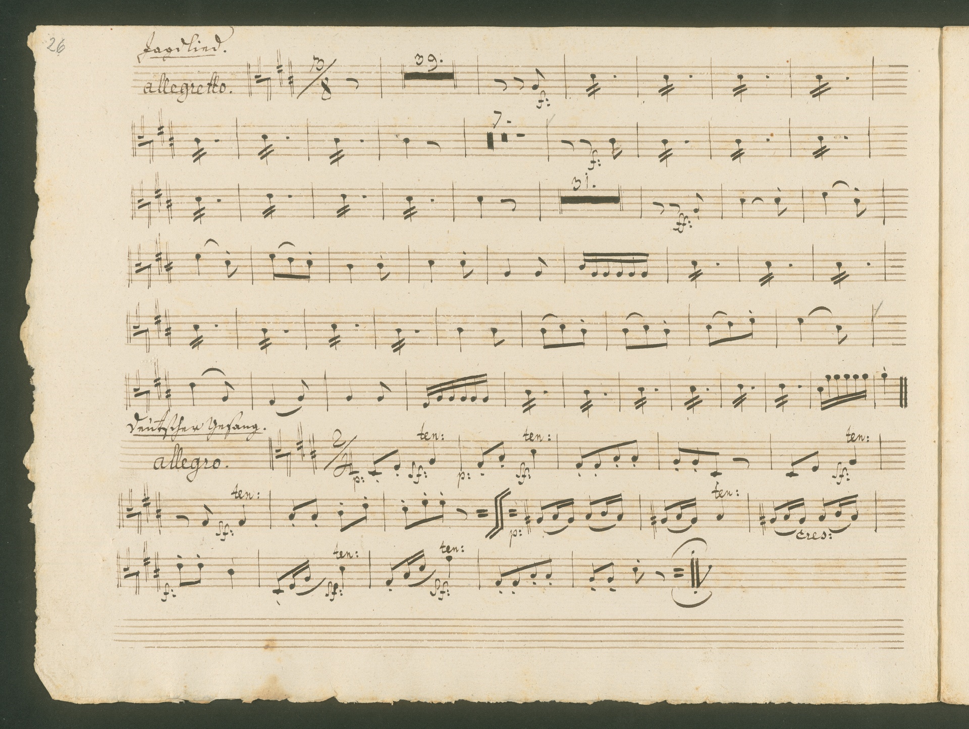The music for the "Ritterballett" (Knight's Ballet) WoO 1 was composed for a masked ball in the spring of 1791. Here you can see a copy of each of the thirteen parts. They were probably used for the first performance in the Redoutensaal in Bonn on 6 March 1791. The ball was initiated by Count Ferdinand von Waldstein. On the Sunday in the Carnival season he invited the Bonn nobility to the "characteristic ballet in old German costume". He had "taken into account the main desires of our ancestors - war, hunting, love and carousing" as stated in a contemporary theatre yearbook. Beethoven was not mentioned anywhere as being the composer of the music. So Waldstein was not only hailed as the organizer and choreographer of the ballet but also as the composer. Beethoven's childhood friends Franz Wegeler and Ferdinand Ries corrected this error in 1838 in their Biographischen Notizen über Ludwig van Beethoven. The reason why he did not have his name mentioned is unknown. Count Waldstein was one of his patrons and supporters at the electoral court, and so maybe the composition was made as a favour to the Count. Equally unknown is whether the themes for the individual movements were actually written in part by the music-loving Count. (J.R.)
