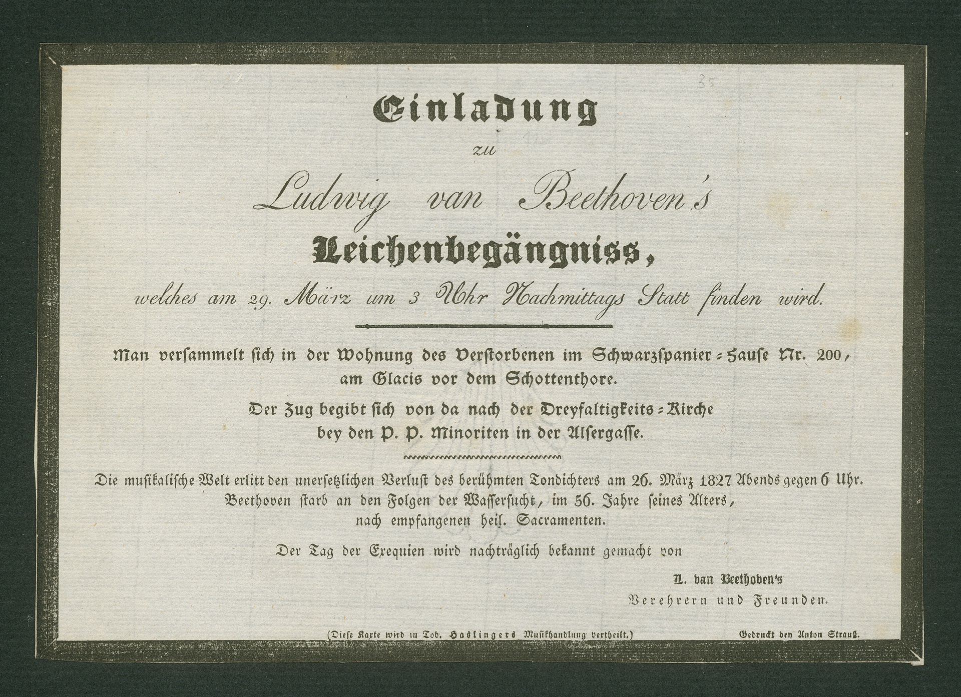 "Einladung zu Ludwig van Beethovens Leichenbegängnis", Karte