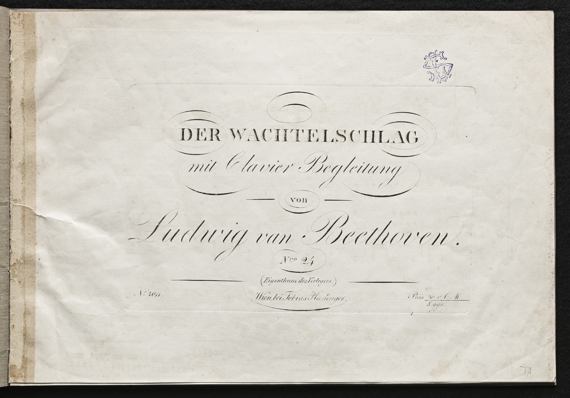 Ludwig van Beethoven, "Der Wachtelschlag", Lied für Singstimme und Klavier WoO 129, Haslinger, 4011