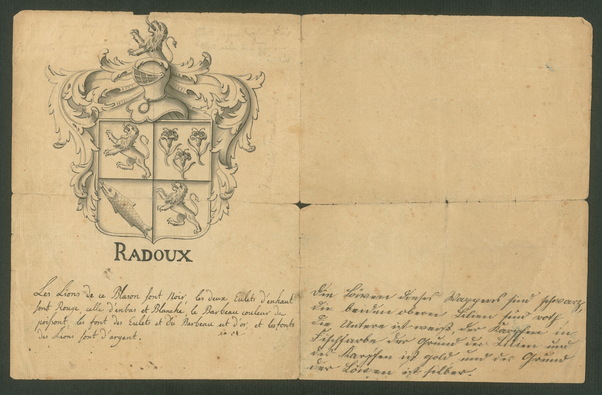 Wappen der Familie Radoux - Anonyme Federzeichnung