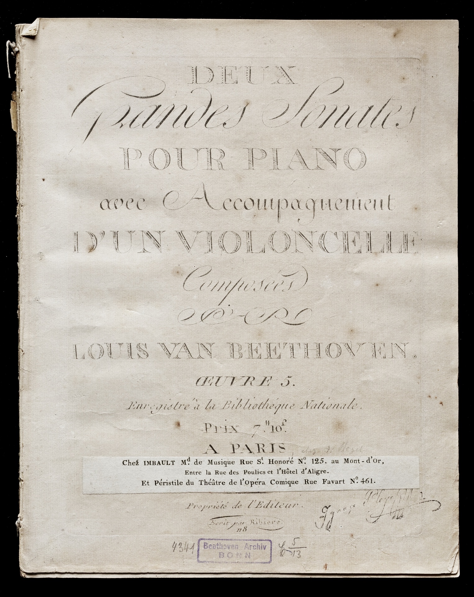 Ludwig van Beethoven, Sonaten für Klavier und Violoncello (F-Dur, g-Moll) op. 5, 1-2, Stimmen, Pleyel, 118