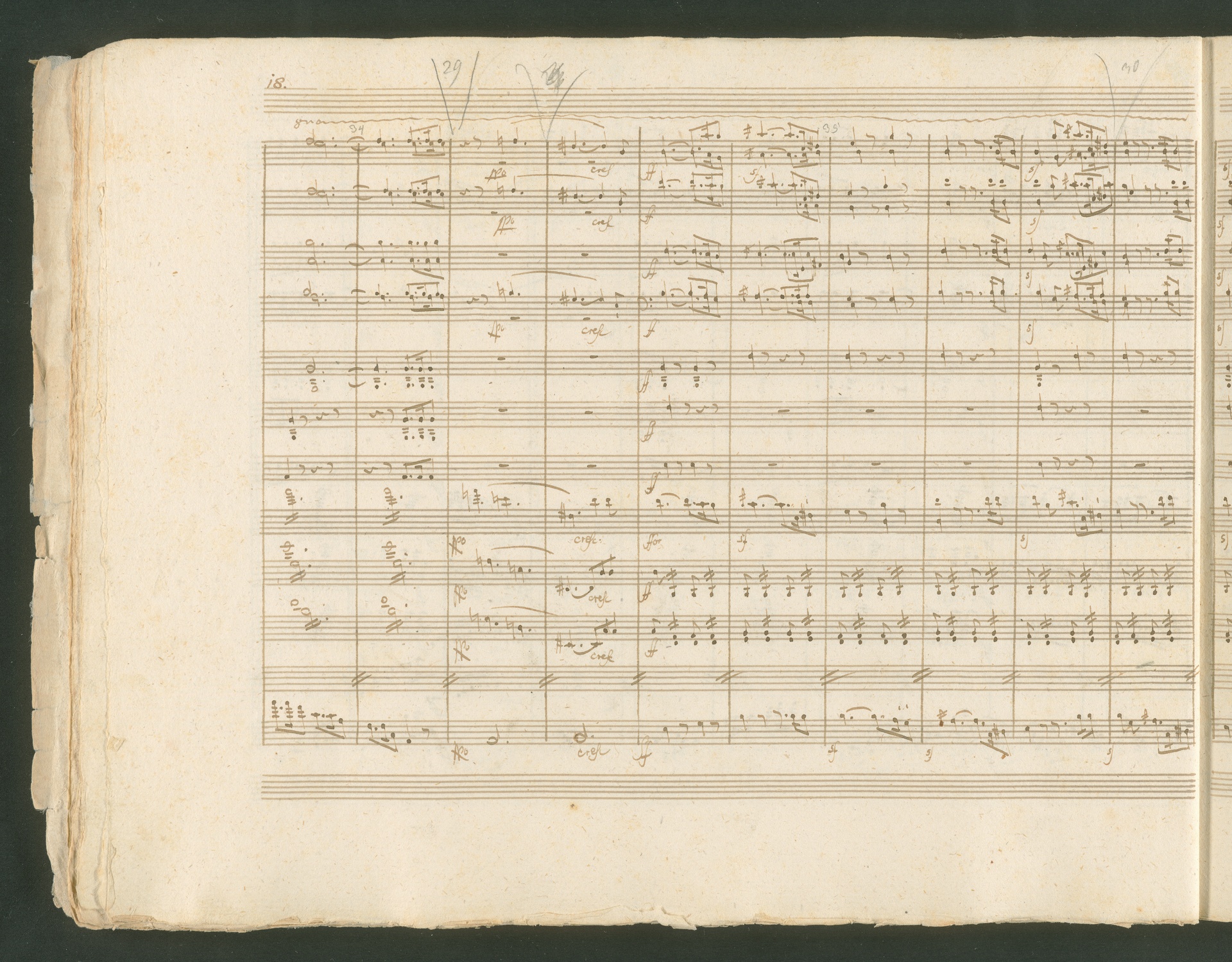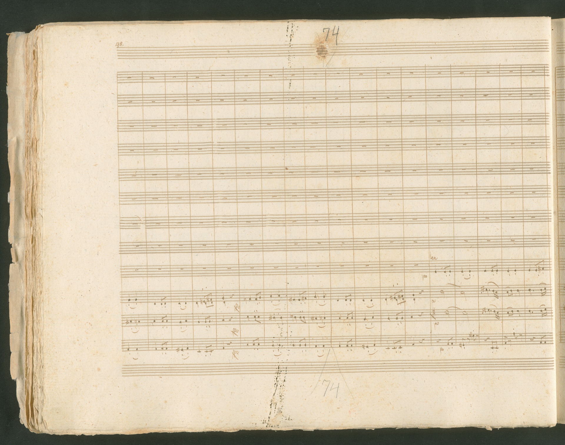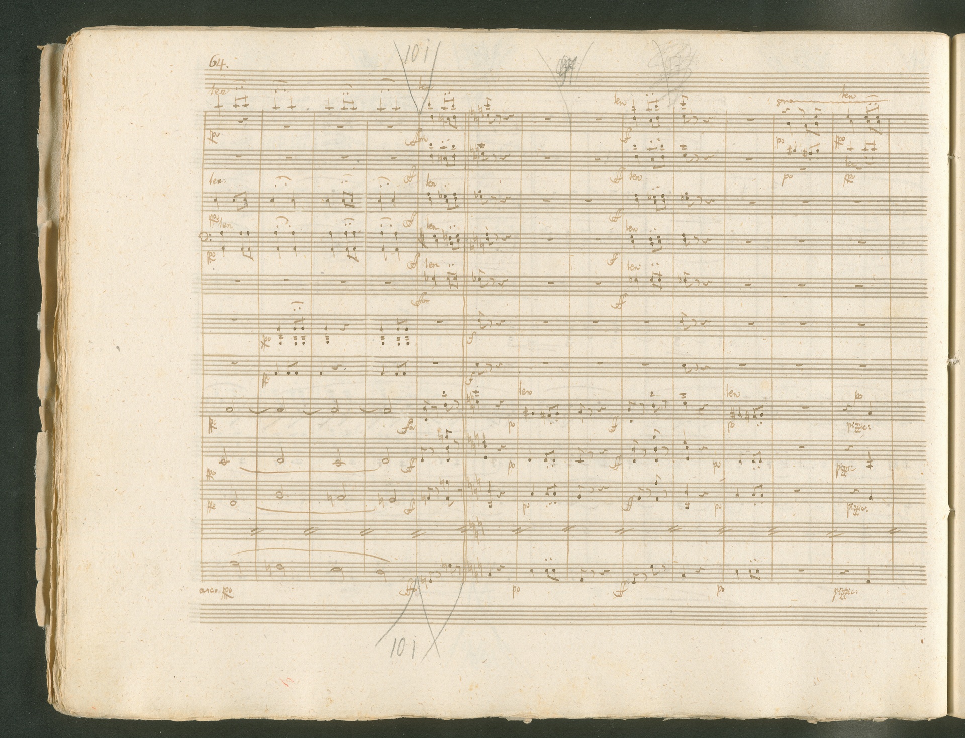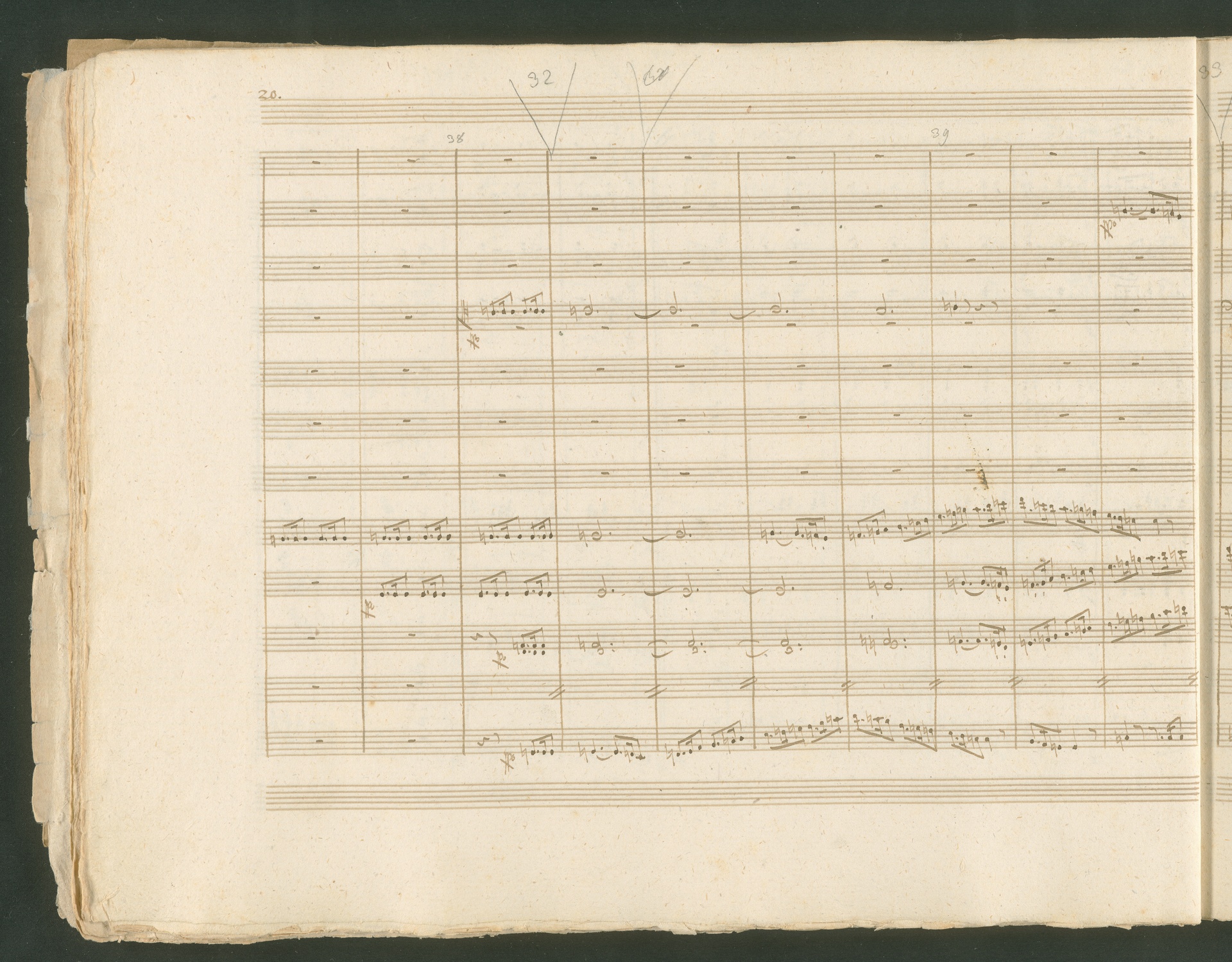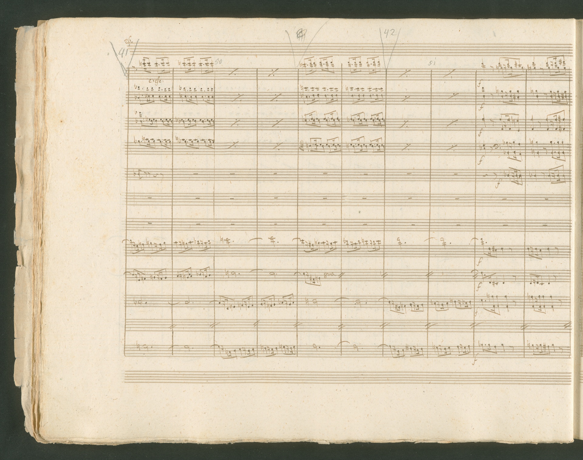 Anton Diabelli, today generally known as a composer, was actually for the main part a music publisher in Vienna. He began his career in publishing as an employee at Sigmund Anton Steiner's Chemische Druckerei, where he was a proof-reader. Beethoven greatly admired Diabelli's work (he conscientiously corrected spelling mistakes in manuscripts), and jokingly called him "Diabolus Diabelli". As part of his work at the publishing house, Diabelli copied the engraver's model for the Seventh Symphony op. 92 for Steiner's first edition. It is extremely accurate and carefully done. In fact it is so careful that it only contains one single correction by Beethoven (two natural signs are missing in one bar), although Beethoven certainly saw the copy, as shown by the directions in red crayon on the title page. (J.R.)