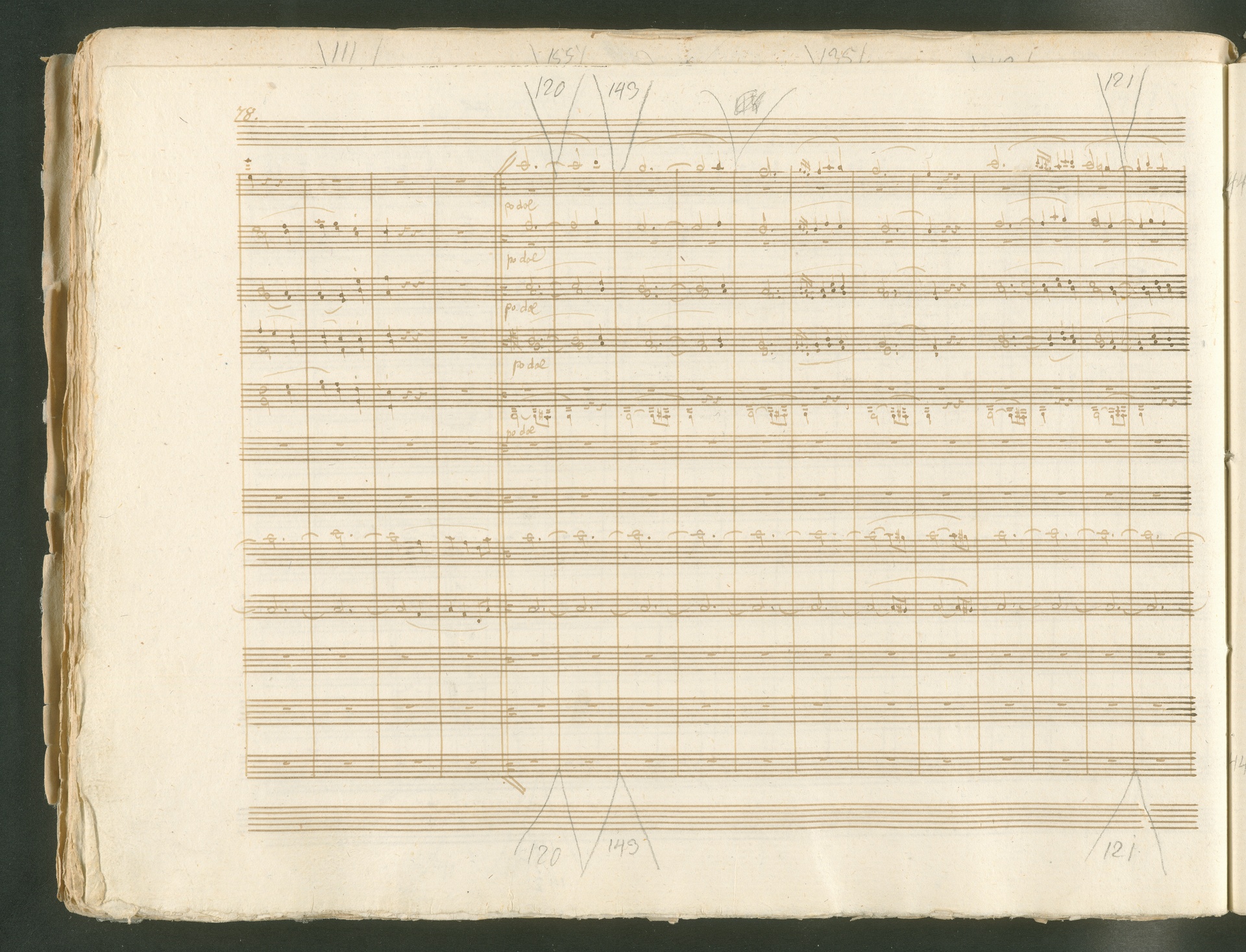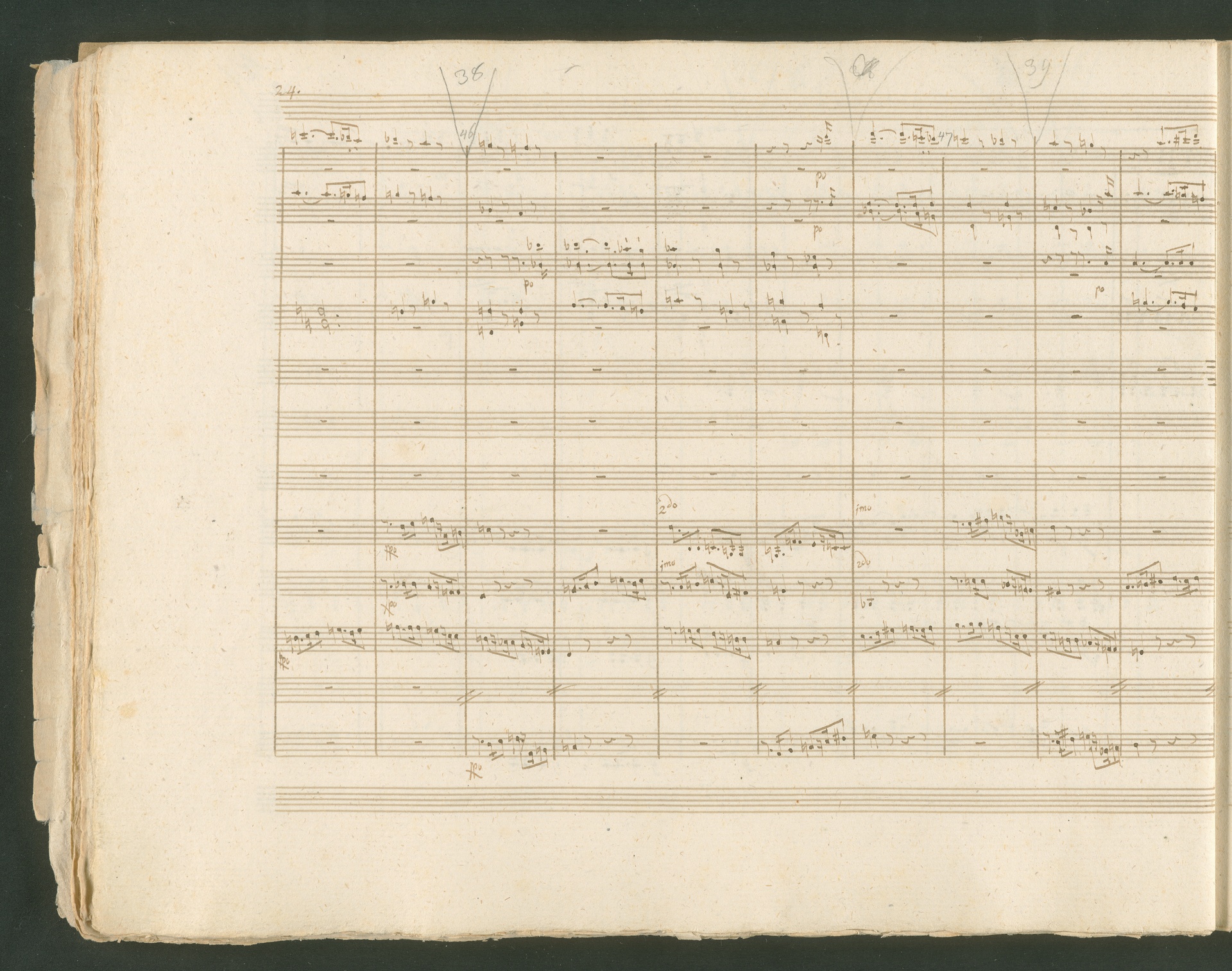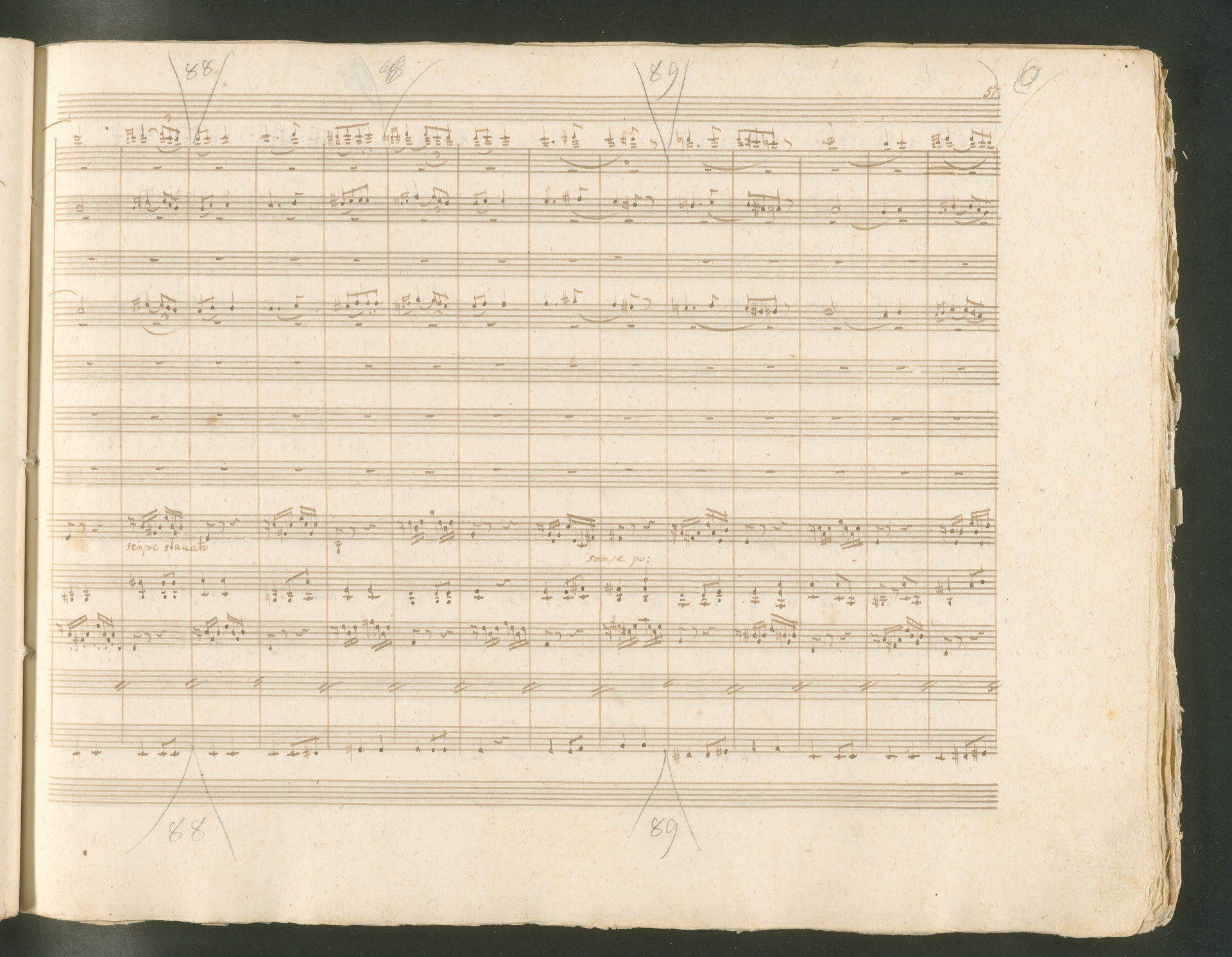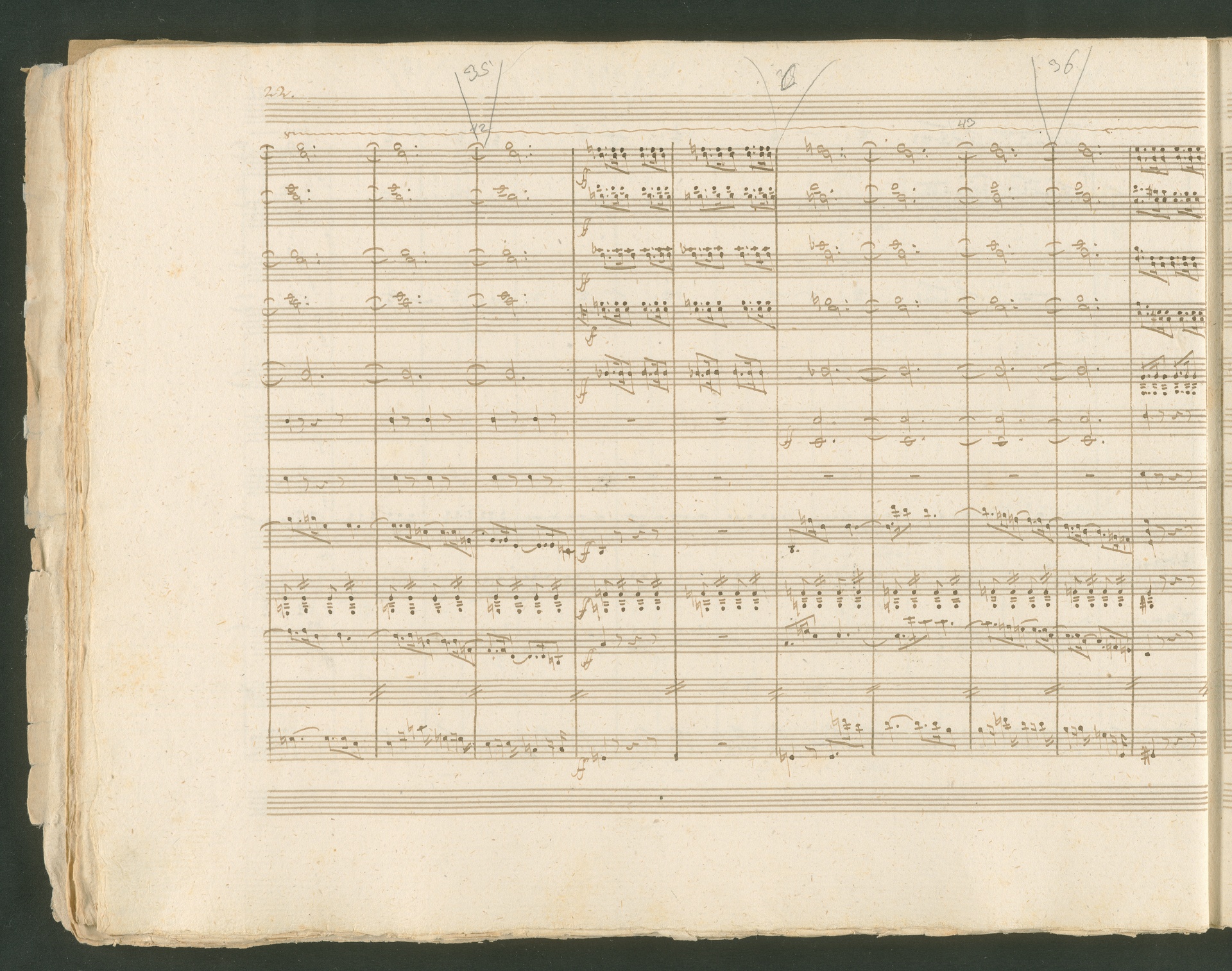 Anton Diabelli, today generally known as a composer, was actually for the main part a music publisher in Vienna. He began his career in publishing as an employee at Sigmund Anton Steiner's Chemische Druckerei, where he was a proof-reader. Beethoven greatly admired Diabelli's work (he conscientiously corrected spelling mistakes in manuscripts), and jokingly called him "Diabolus Diabelli". As part of his work at the publishing house, Diabelli copied the engraver's model for the Seventh Symphony op. 92 for Steiner's first edition. It is extremely accurate and carefully done. In fact it is so careful that it only contains one single correction by Beethoven (two natural signs are missing in one bar), although Beethoven certainly saw the copy, as shown by the directions in red crayon on the title page. (J.R.)