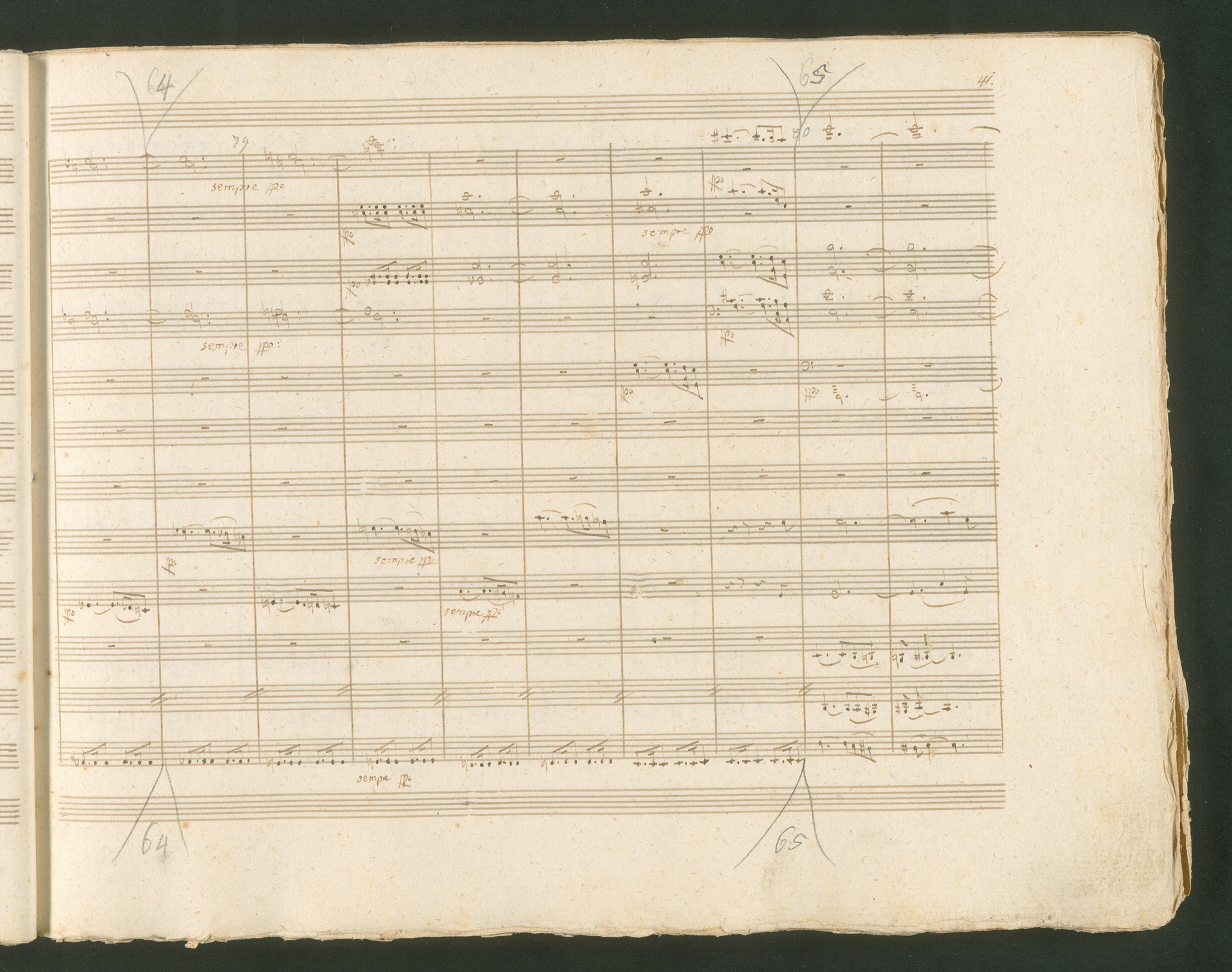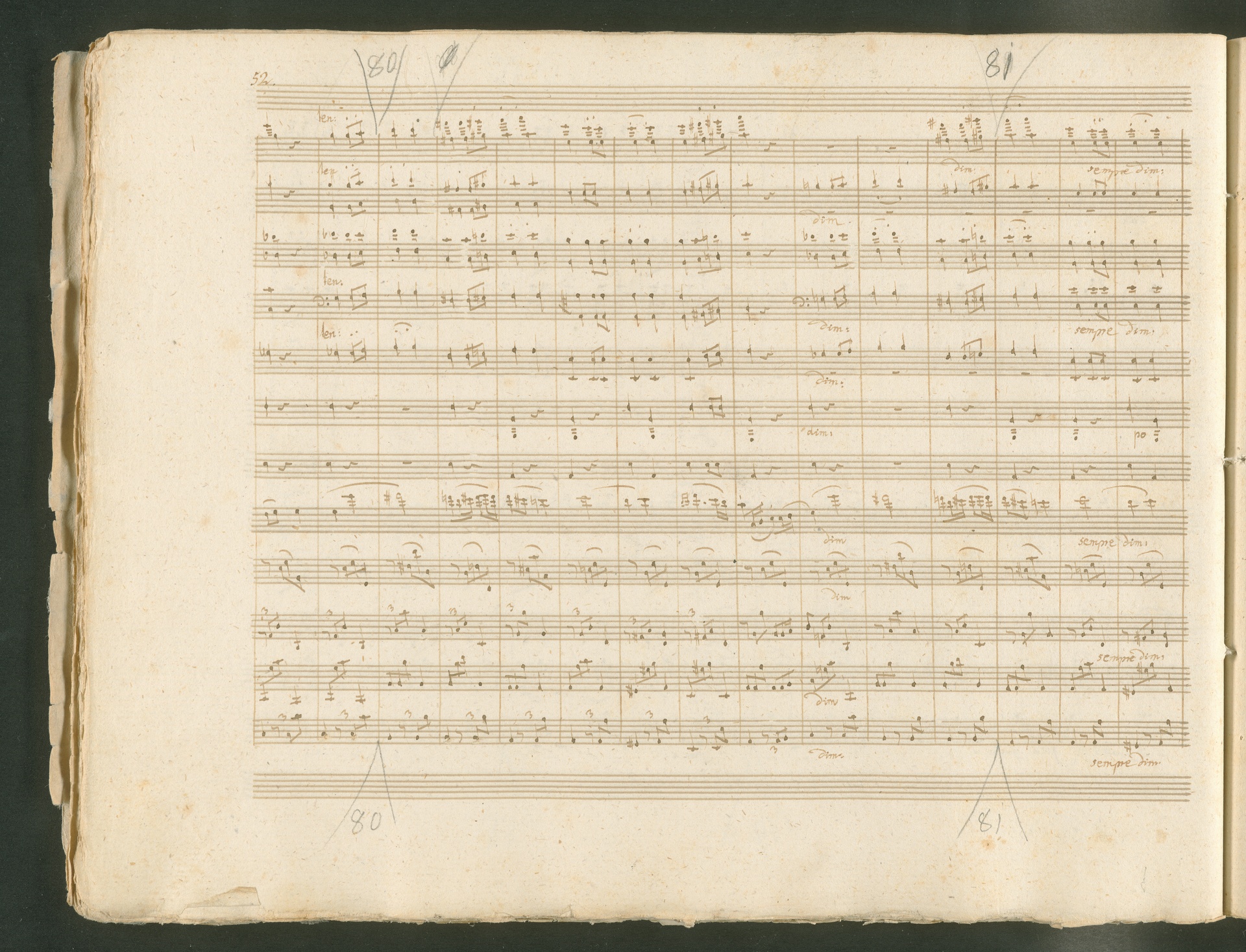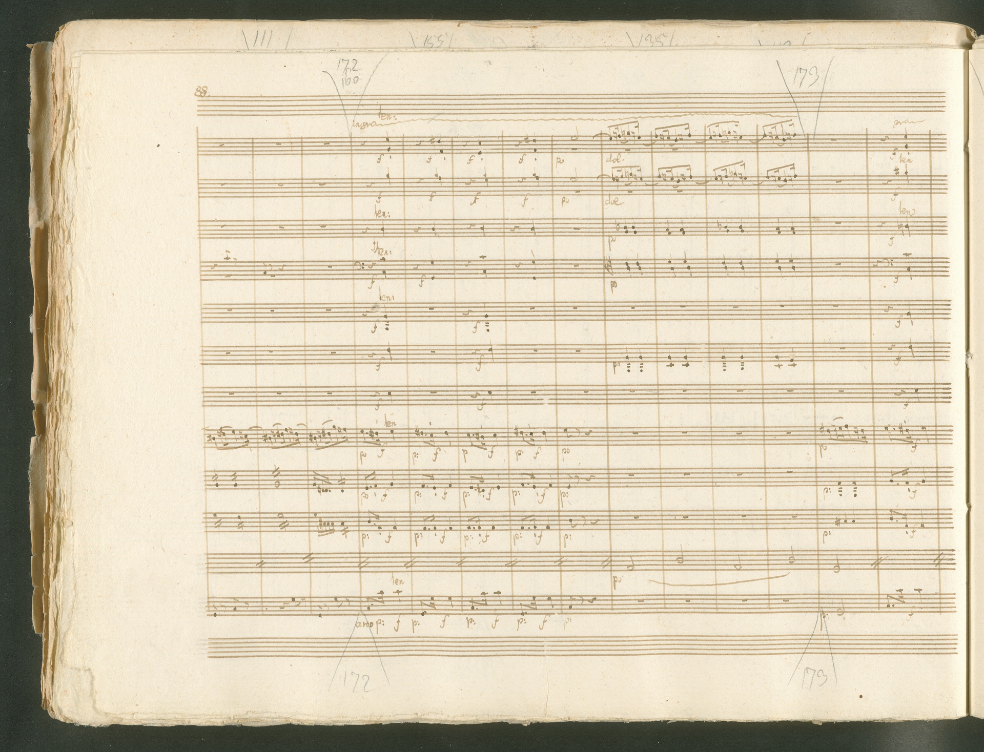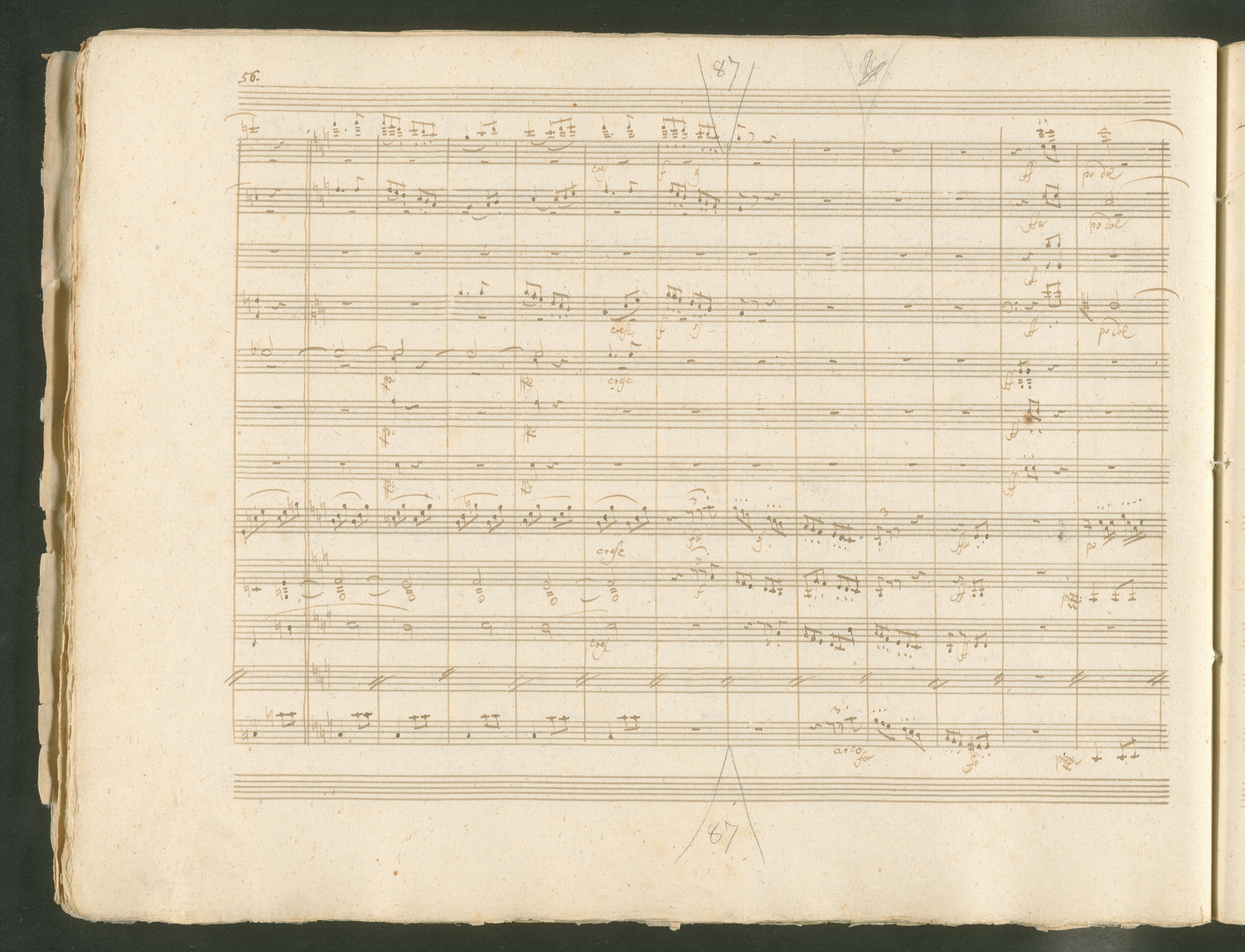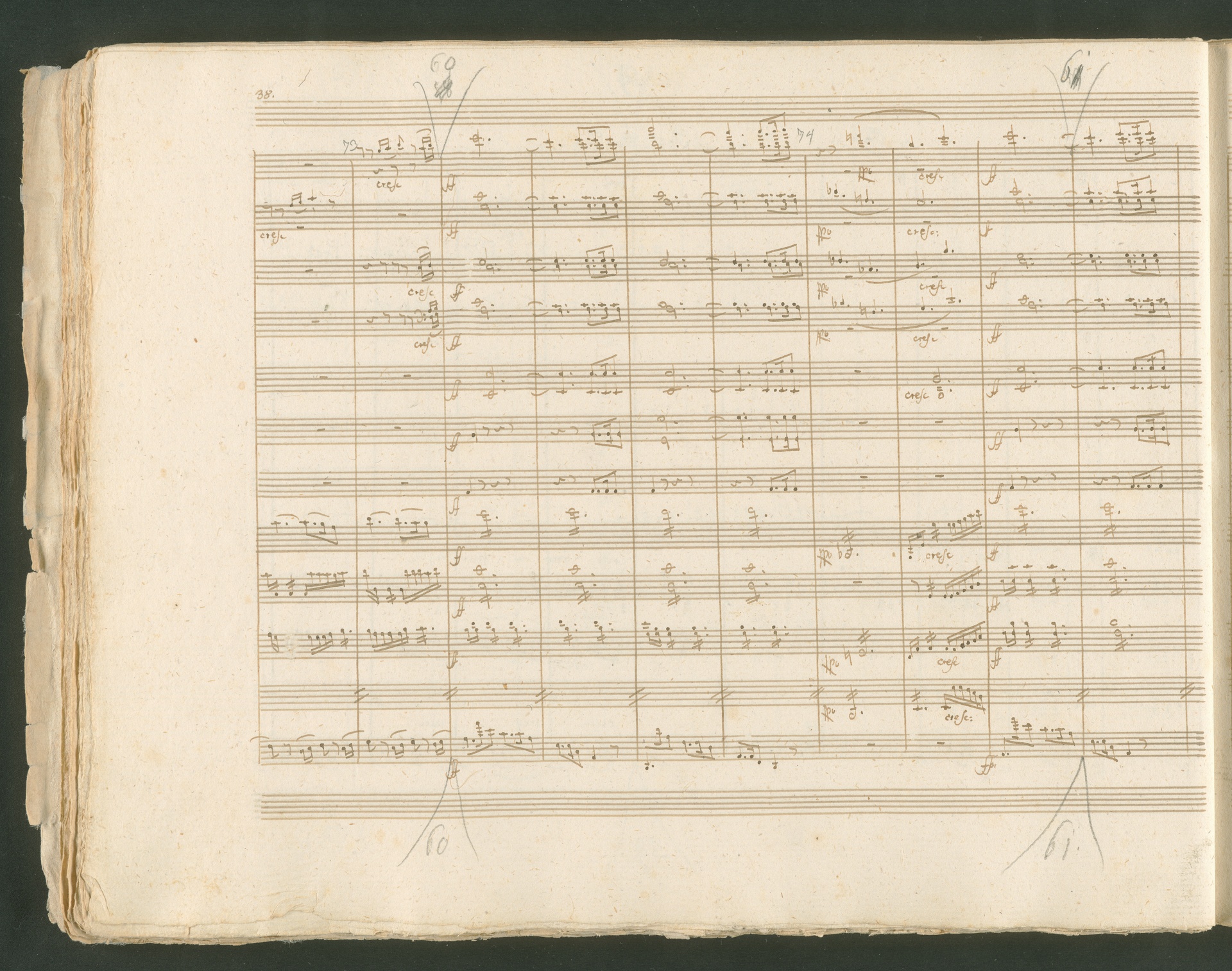Anton Diabelli, today generally known as a composer, was actually for the main part a music publisher in Vienna. He began his career in publishing as an employee at Sigmund Anton Steiner's Chemische Druckerei, where he was a proof-reader. Beethoven greatly admired Diabelli's work (he conscientiously corrected spelling mistakes in manuscripts), and jokingly called him "Diabolus Diabelli". As part of his work at the publishing house, Diabelli copied the engraver's model for the Seventh Symphony op. 92 for Steiner's first edition. It is extremely accurate and carefully done. In fact it is so careful that it only contains one single correction by Beethoven (two natural signs are missing in one bar), although Beethoven certainly saw the copy, as shown by the directions in red crayon on the title page. (J.R.)