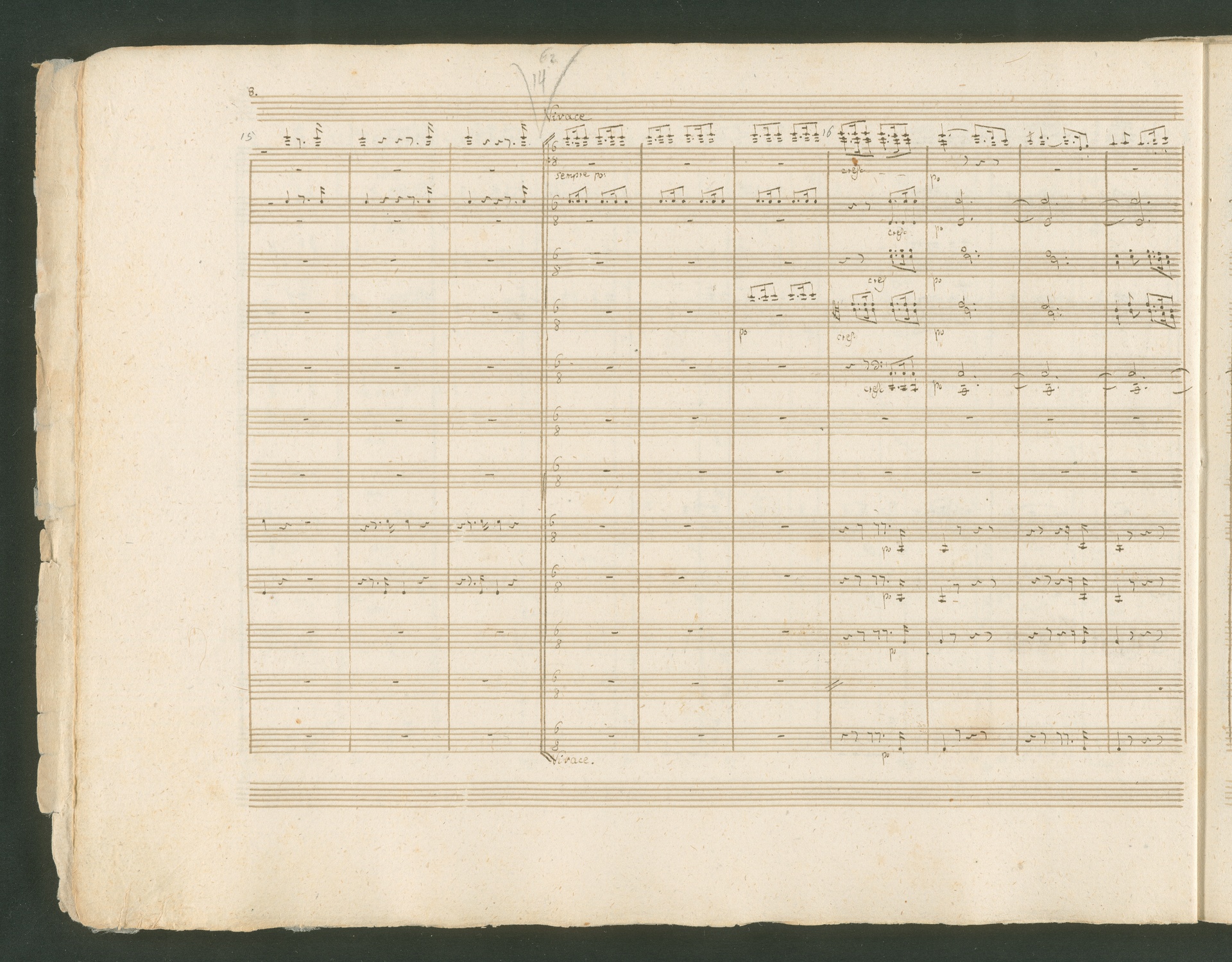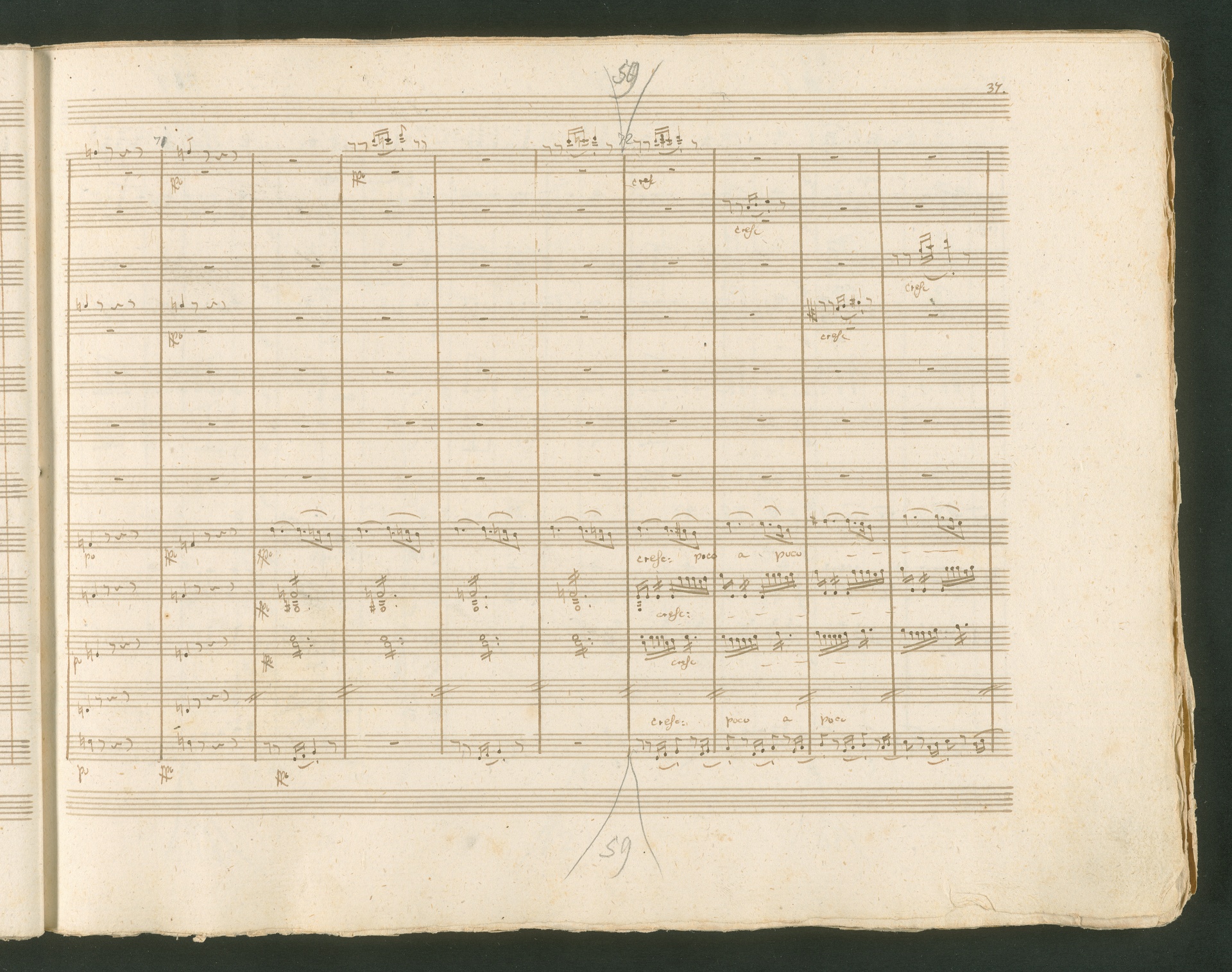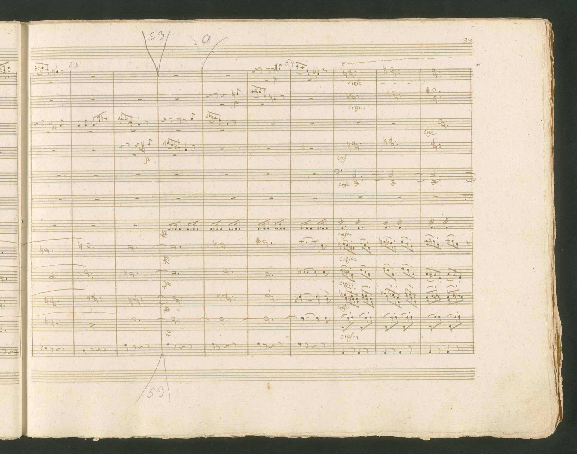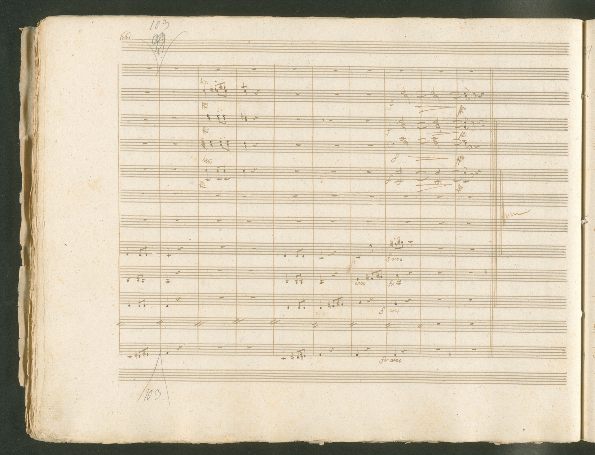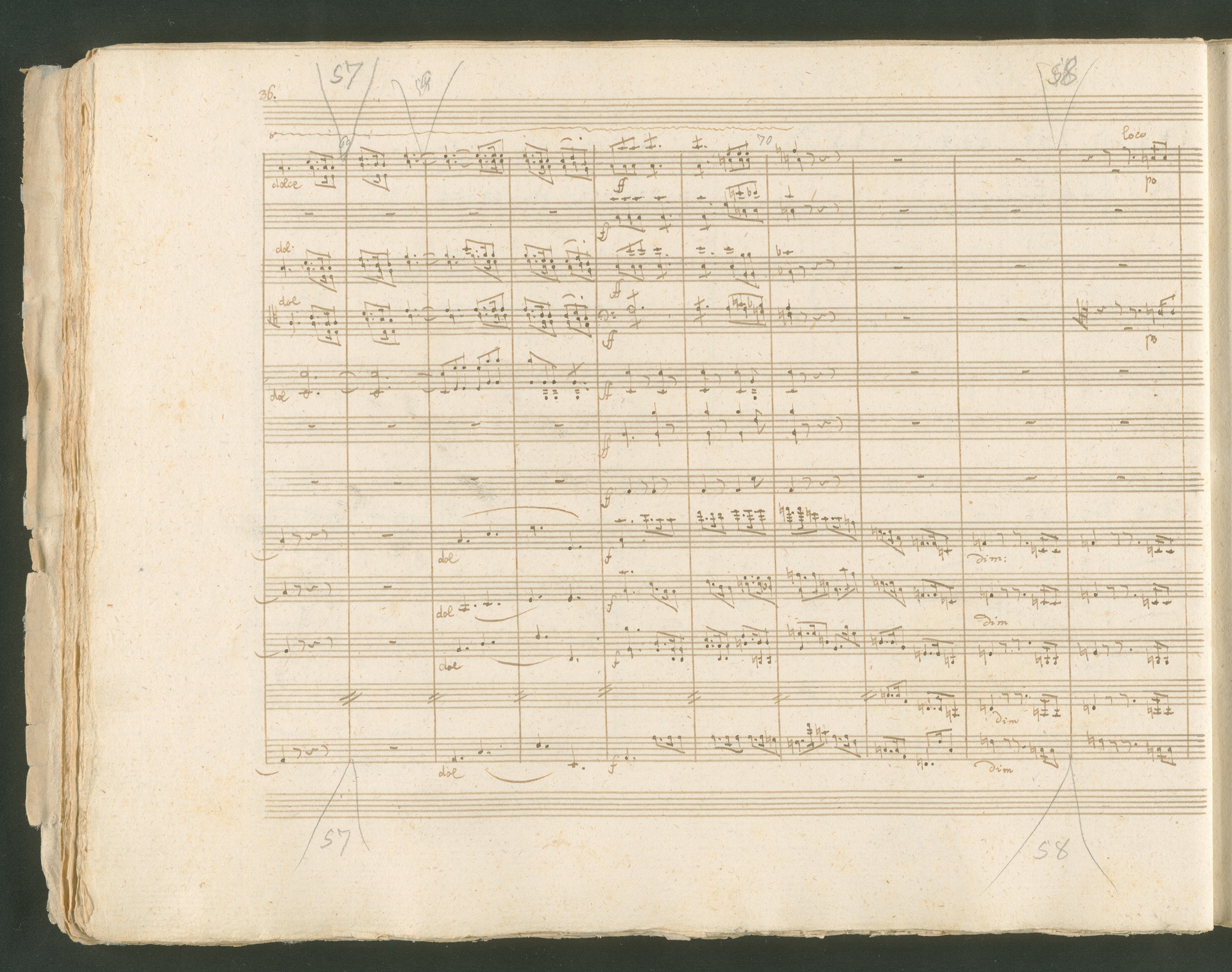 Anton Diabelli, today generally known as a composer, was actually for the main part a music publisher in Vienna. He began his career in publishing as an employee at Sigmund Anton Steiner's Chemische Druckerei, where he was a proof-reader. Beethoven greatly admired Diabelli's work (he conscientiously corrected spelling mistakes in manuscripts), and jokingly called him "Diabolus Diabelli". As part of his work at the publishing house, Diabelli copied the engraver's model for the Seventh Symphony op. 92 for Steiner's first edition. It is extremely accurate and carefully done. In fact it is so careful that it only contains one single correction by Beethoven (two natural signs are missing in one bar), although Beethoven certainly saw the copy, as shown by the directions in red crayon on the title page. (J.R.)