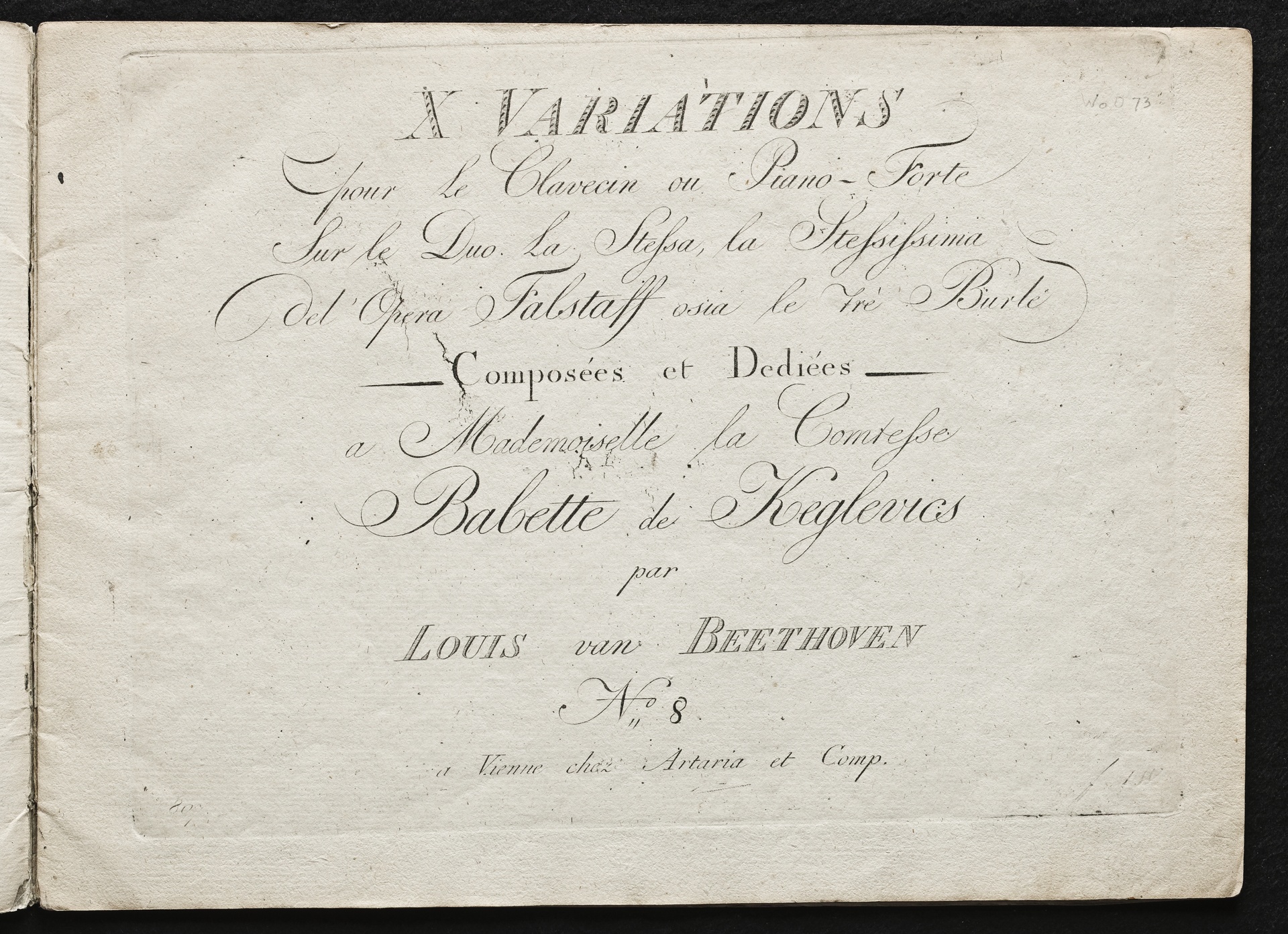 Ludwig van Beethoven, Variationen über das Duett "La stessa, la stessissima" aus Antonio Salieris Oper "Falstaff" für Klavier (B-Dur) WoO 73, Artaria, 807
