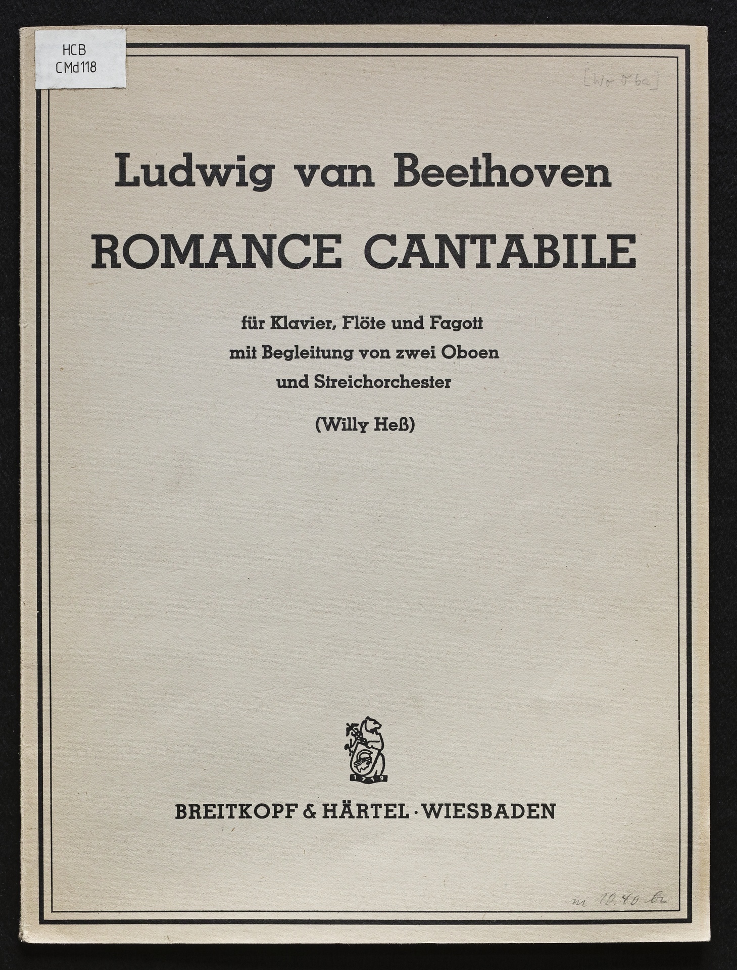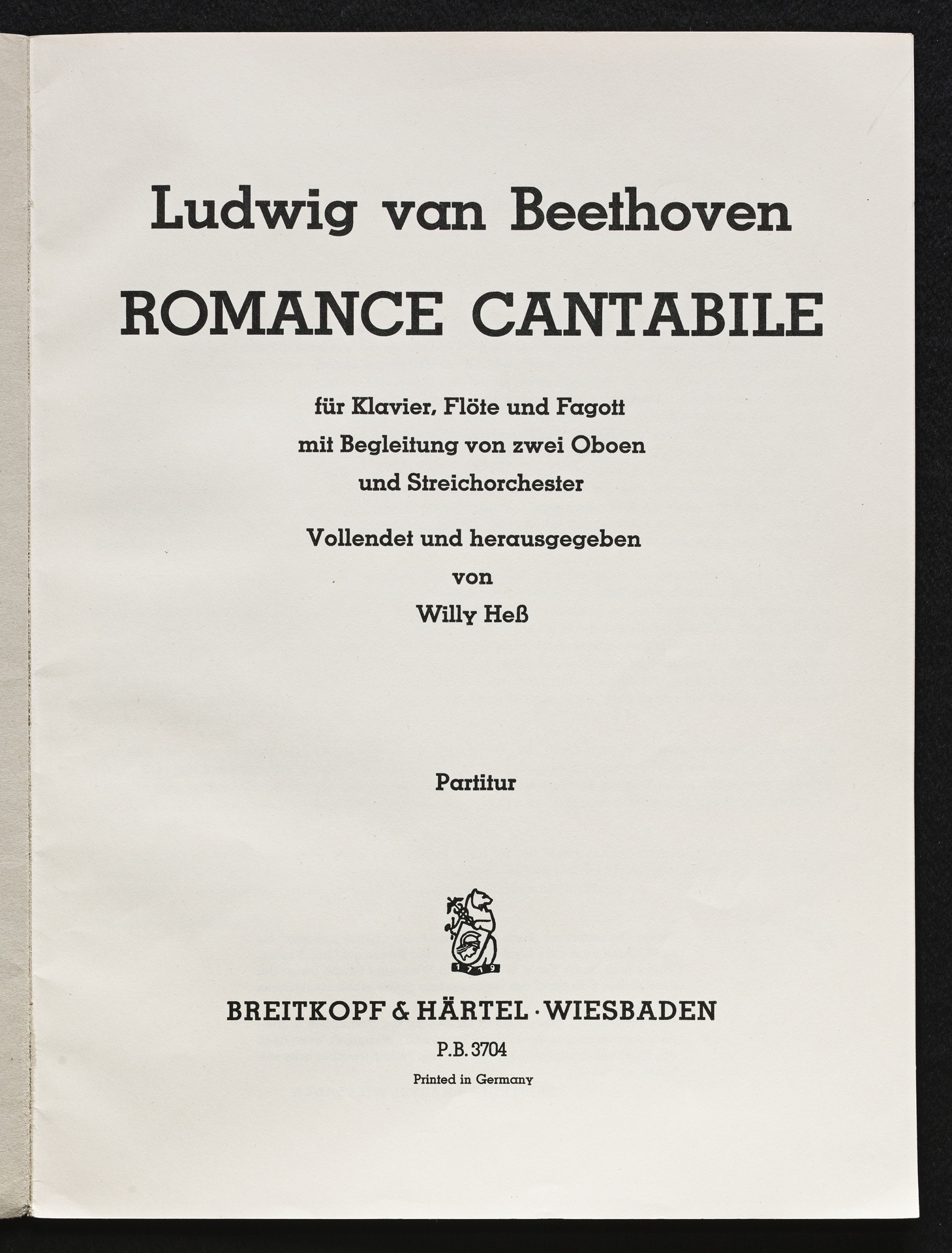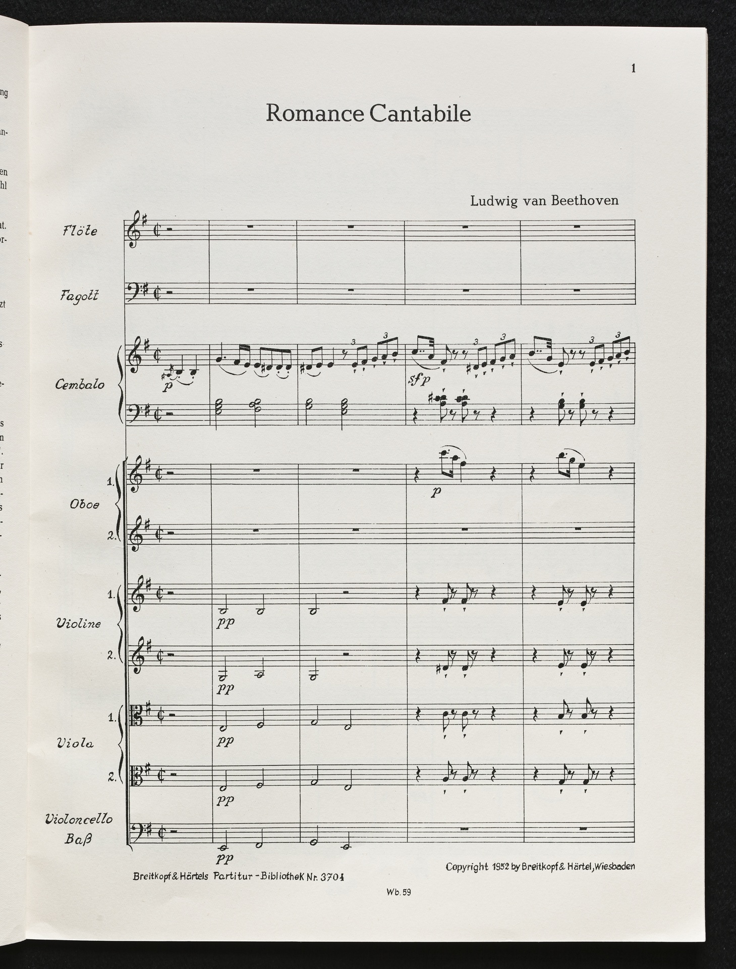 Ludwig van Beethoven, Romance cantabile für Querflöte, Fagott, Klavier und Orchester (e-Moll) WoO 207, Partitur, Breitkopf und Härtel, 59