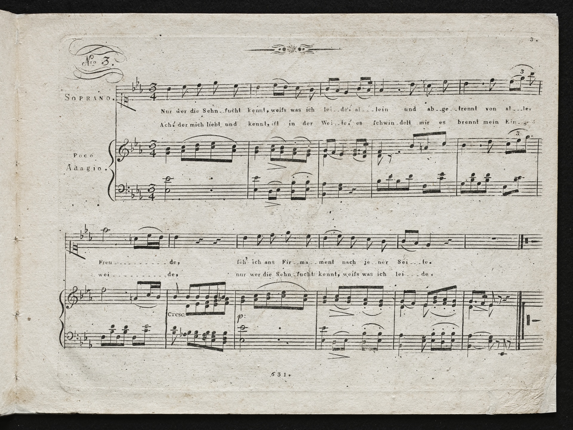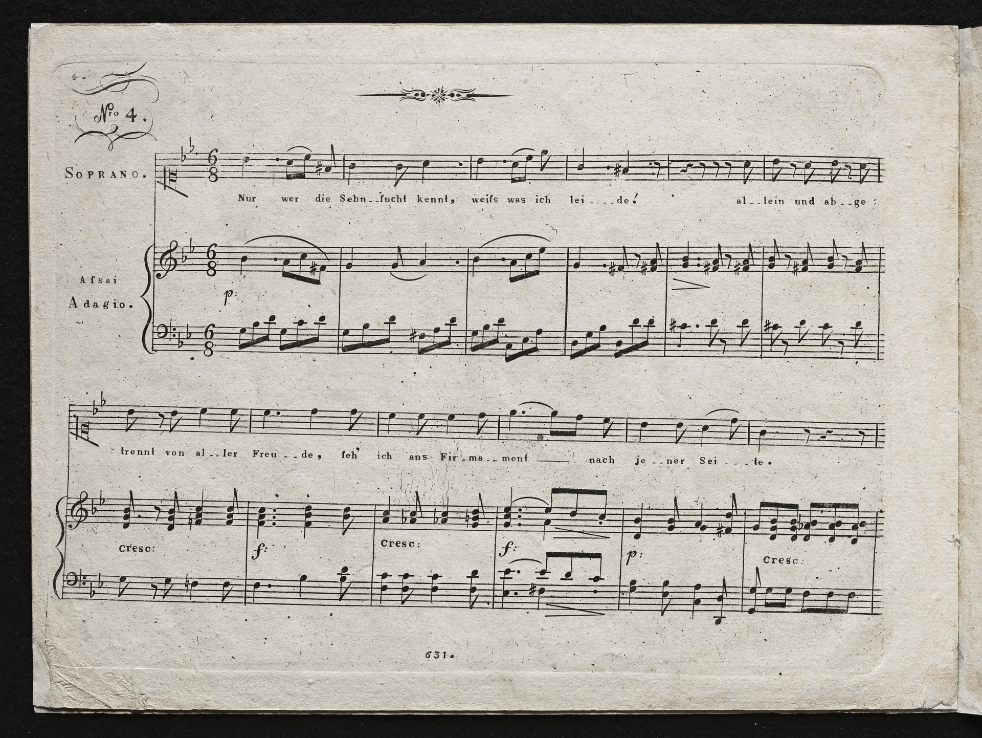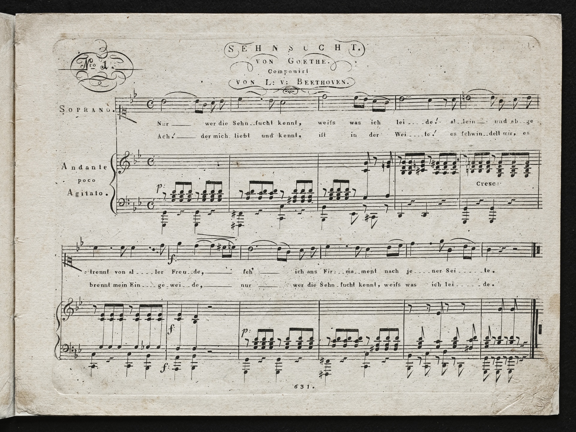 Ludwig van BeethovenJohann Wolfgang von Goethe, "Sehnsucht", Lied für Singstimme und Klavier in 4 Kompositionen WoO 134, Riedl, 631