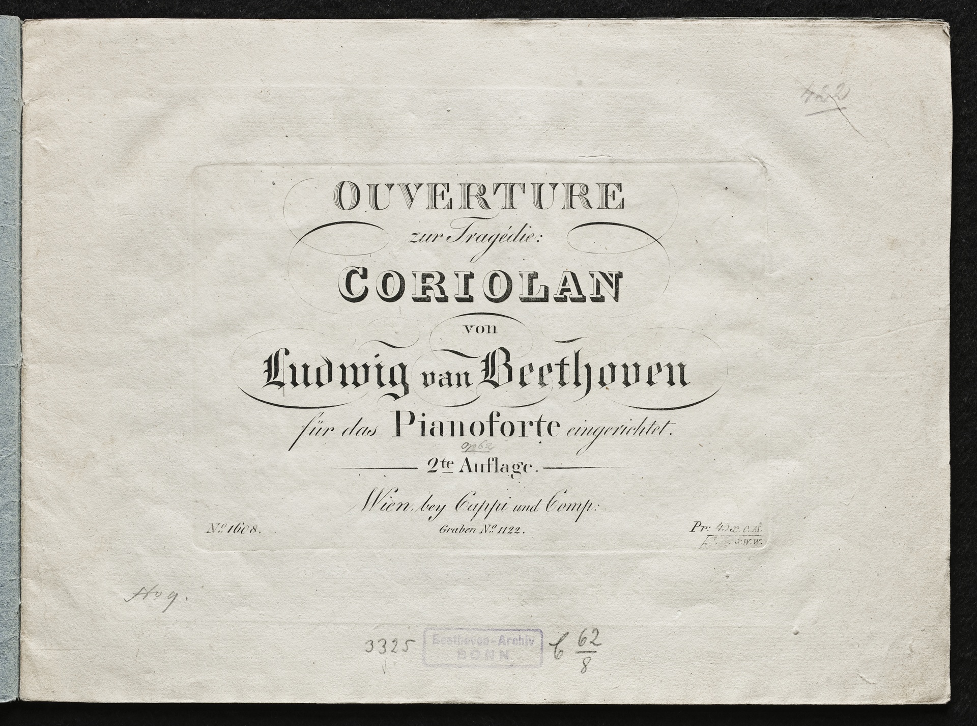 Ludwig van Beethoven, Ouvertüre (c-Moll) zu Heinrich Joseph von Collins Trauerspiel "Coriolan" op. 62, Klavierauszug, Cappi, 1608