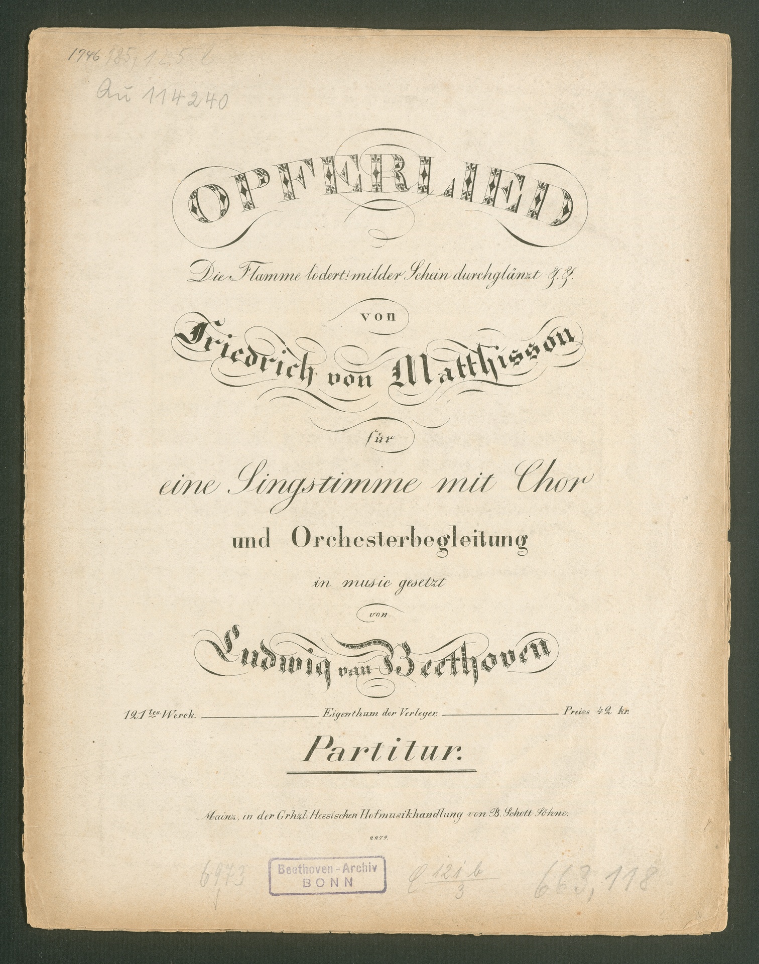 Ludwig van BeethovenFriedrich von Matthisson, "Opferlied" für Singstimme, Chor und Orchester op. 121b, Partitur, Schott, 2279