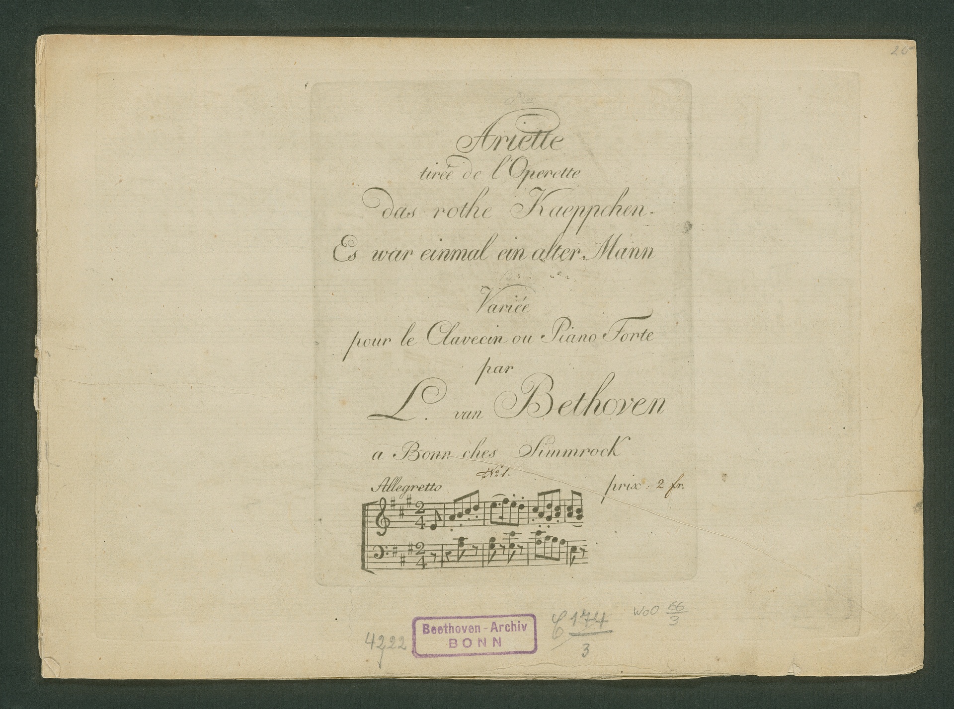 Ludwig van Beethoven, Variationen über die Ariette "Es war einmal ein alter Mann" aus Karl Ditters von Dittersdorfs Singspiel "Das rote Käppchen" für Klavier (A-Dur) WoO 66, Simrock, 3