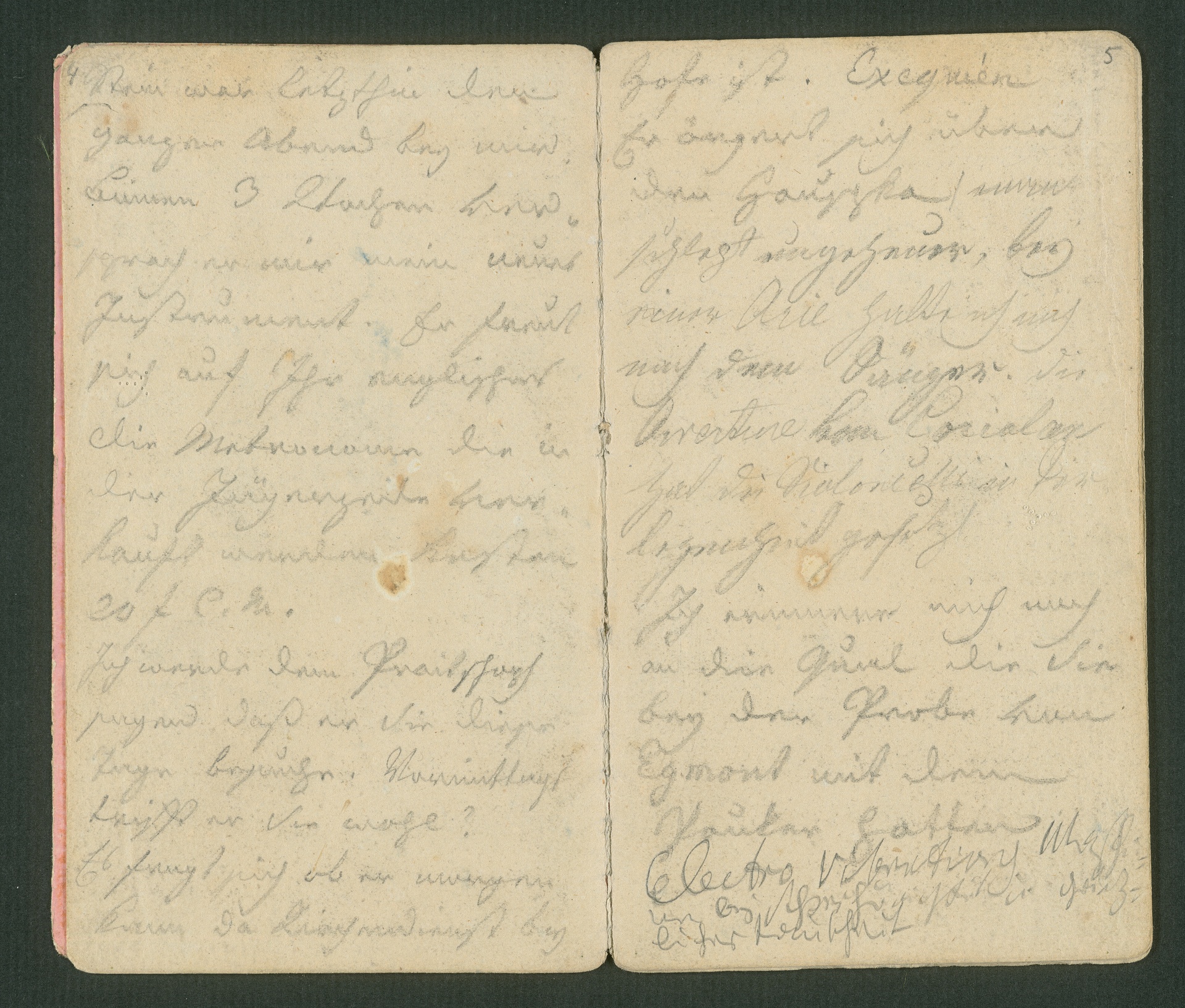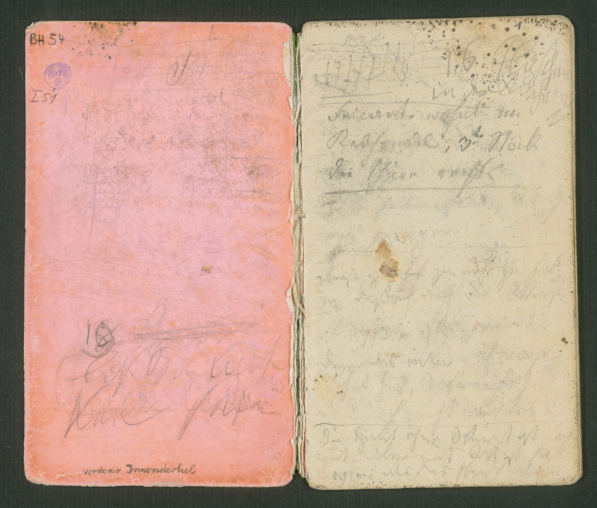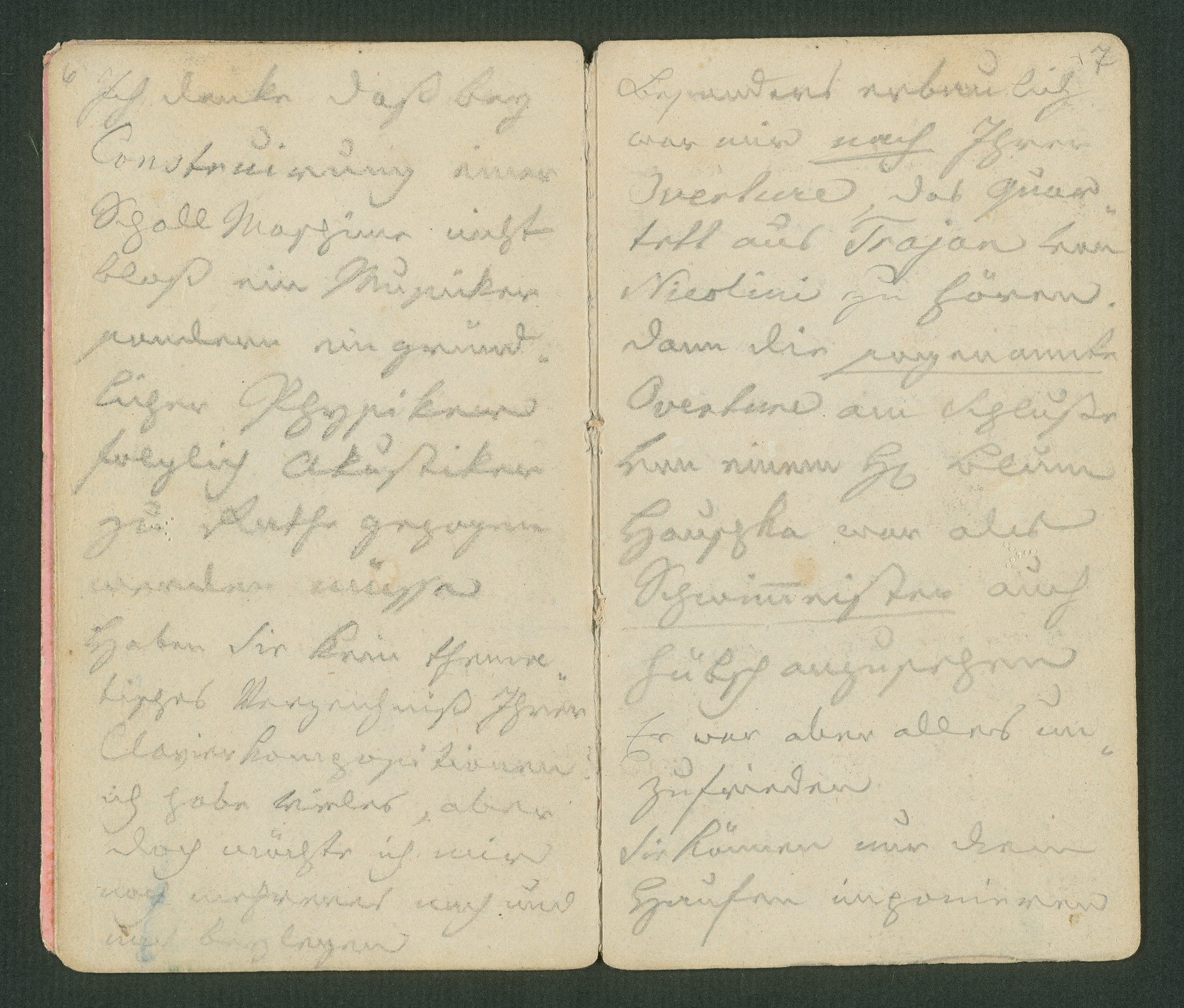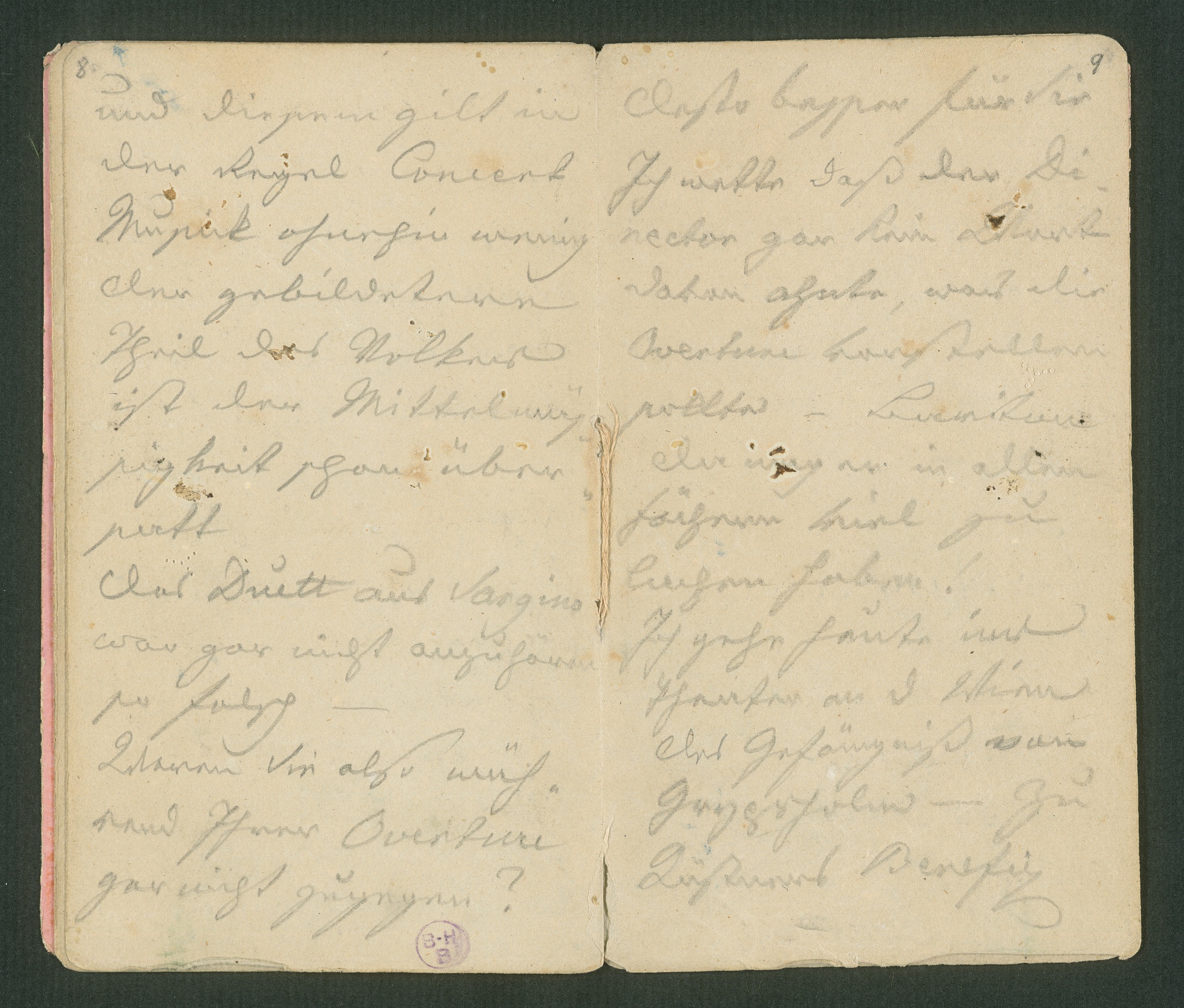 Because of his deafness Beethoven had to use booklets from 1818 onwards in order to communicate with the outside world. Visitors wrote down what they wanted to say, Beethoven usually answered in spoken. Now and then he used the booklets as musical sketch books or to take notes. All in all there are 139 booklets. The Beethoven-Haus owns two conversation booklets. The remaining 137 booklets are at the Berlin State Library, Prussian Cultural Heritage. Among the conserved booklets, the present one is the oldest. (J.R.)
