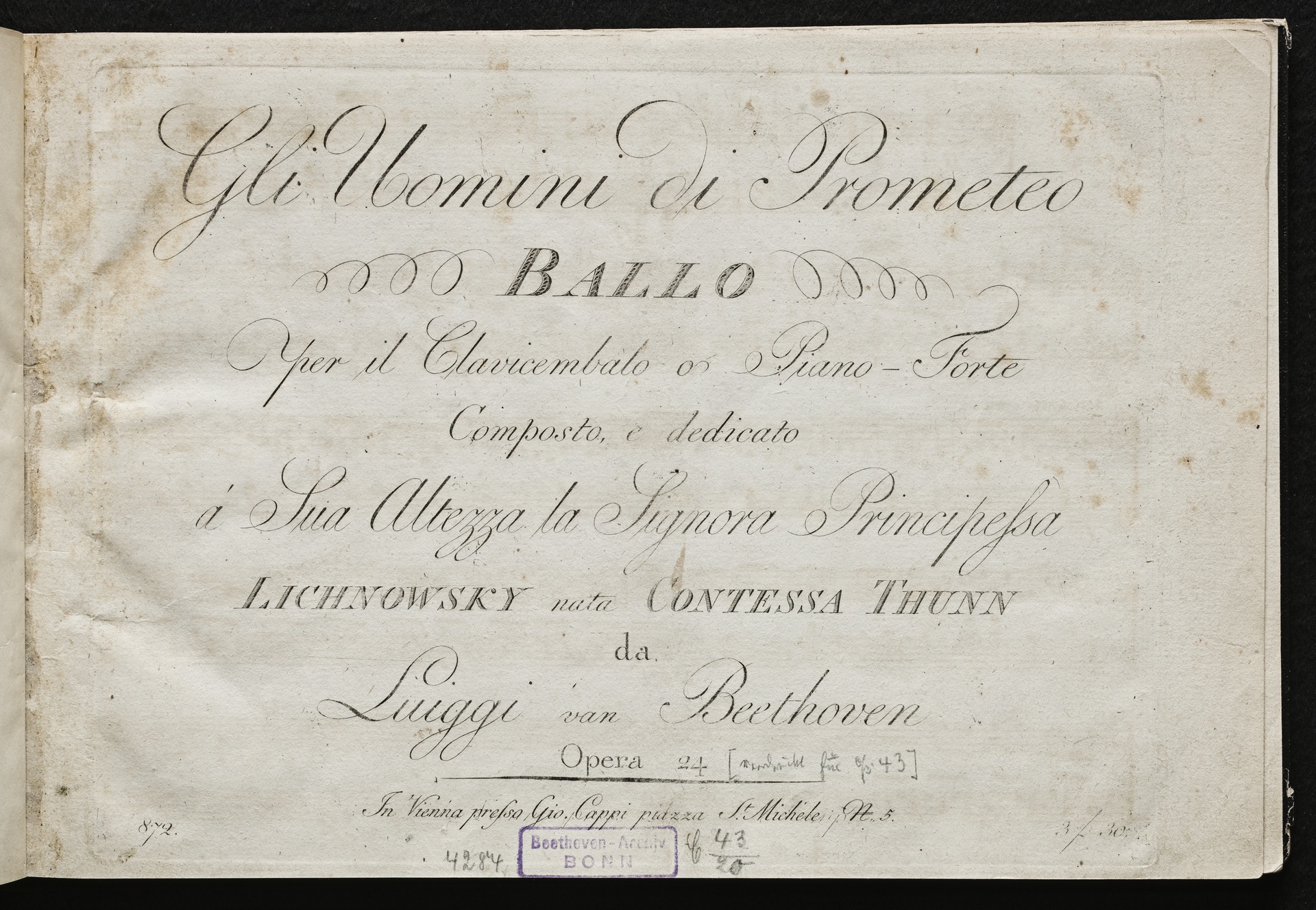 Ludwig van Beethoven, "Die Geschöpfe des Prometheus", Ballett von Salvatore Viganò op. 43, Bearbeitung für Klavier, Cappi, 872