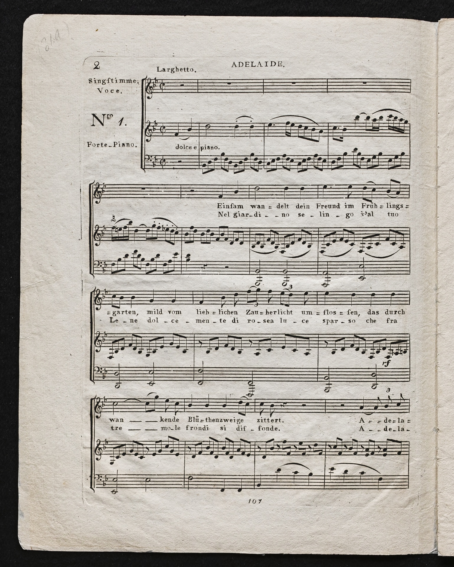 Ludwig van Beethoven, "Adelaide", "Zärtliche Liebe", "An die Hoffnung", Lieder für Singstimme und Klavier op. 46, WoO 123 und op. 32, Zulehner, 107