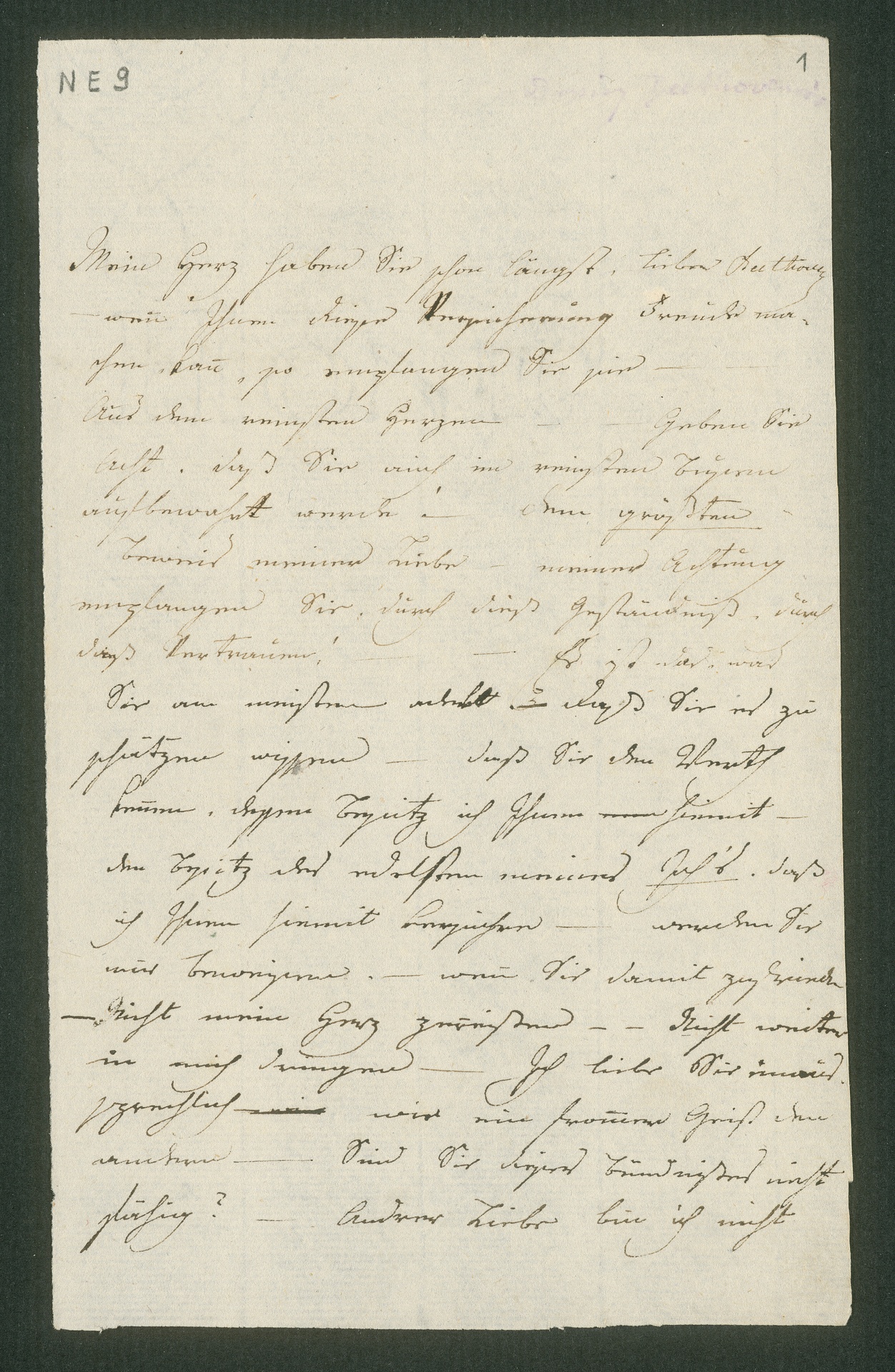 Josephine von Deym drafts a letter in which she admits her love and affection for Beethoven. However, she does qualify this, "I love you inexpressibly - as one pious mind loves another - are you not able to do so too? At the moment I am not responsive to other kinds of love -". Their friendship finally failed due to their fundamentally different views of love; Beethoven's was passionate and demanding, Josephine's intimate and friendly.