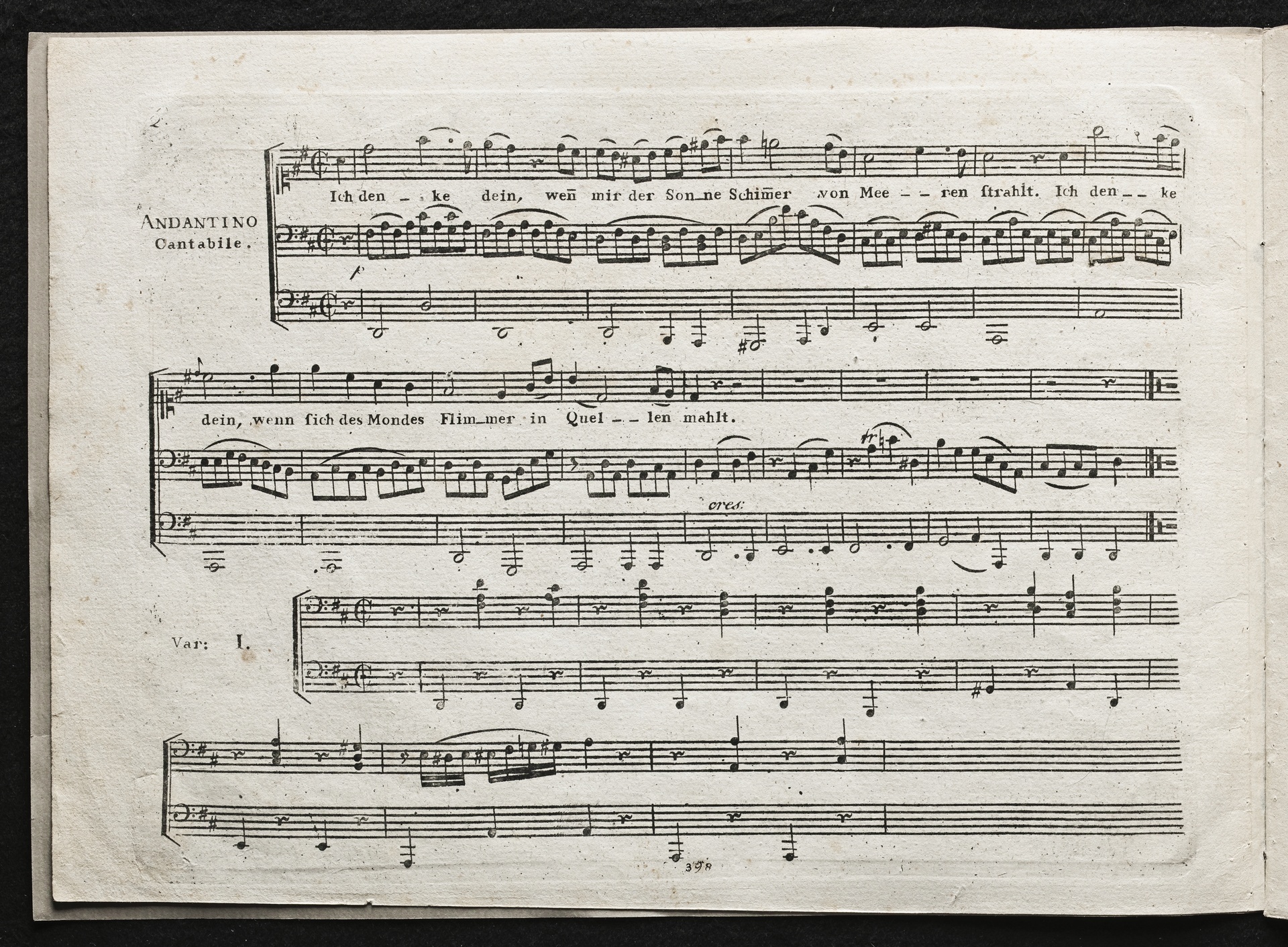 Ludwig van Beethoven, "Ich denke dein", Lied für Singstimme und Klavier zu 4 Händen und Variationen für Klavier zu 4 Händen (D-Dur) WoO 74, Riedl, 398