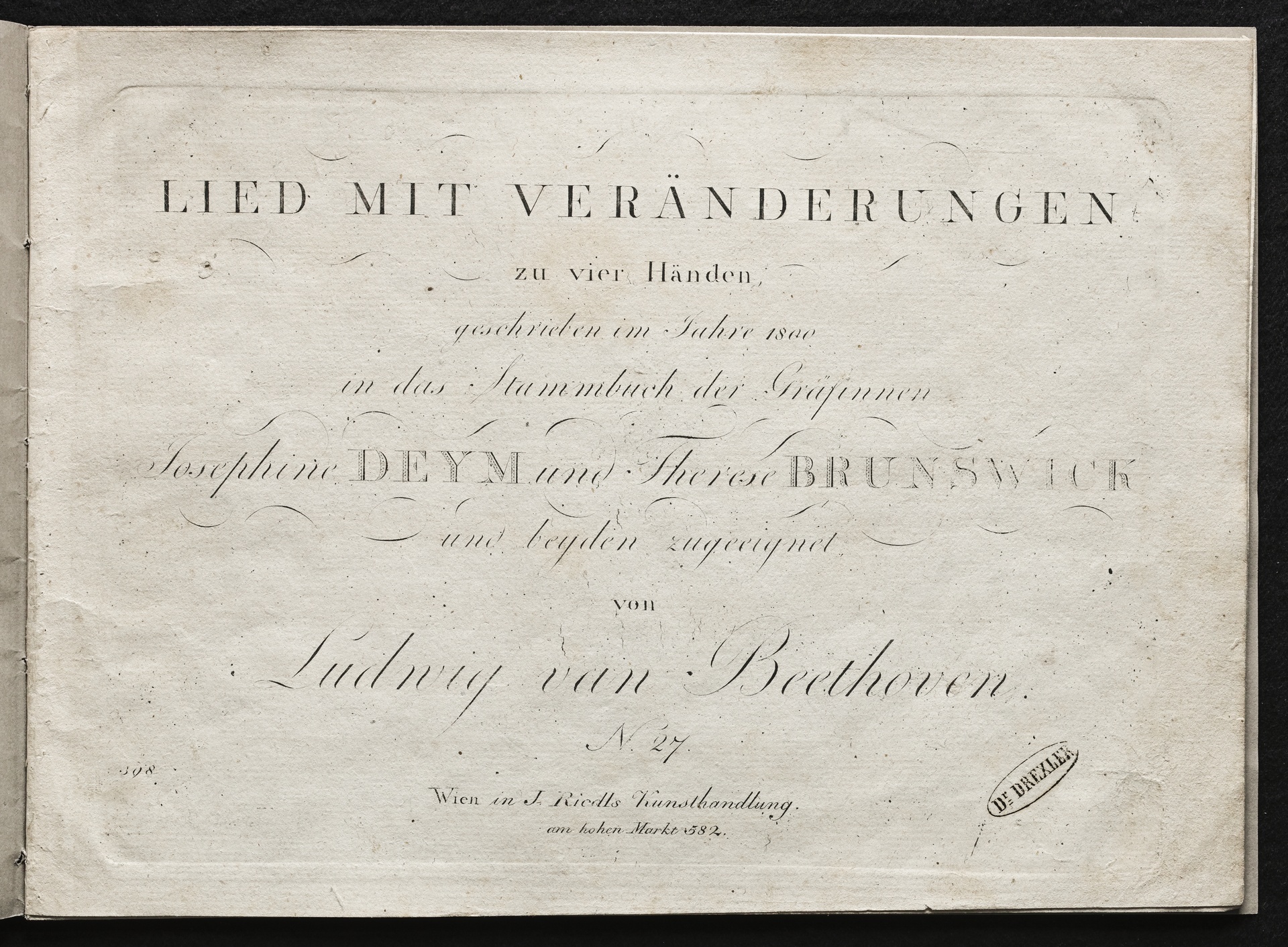 Ludwig van Beethoven, "Ich denke dein", Lied für Singstimme und Klavier zu 4 Händen und Variationen für Klavier zu 4 Händen (D-Dur) WoO 74, Riedl, 398