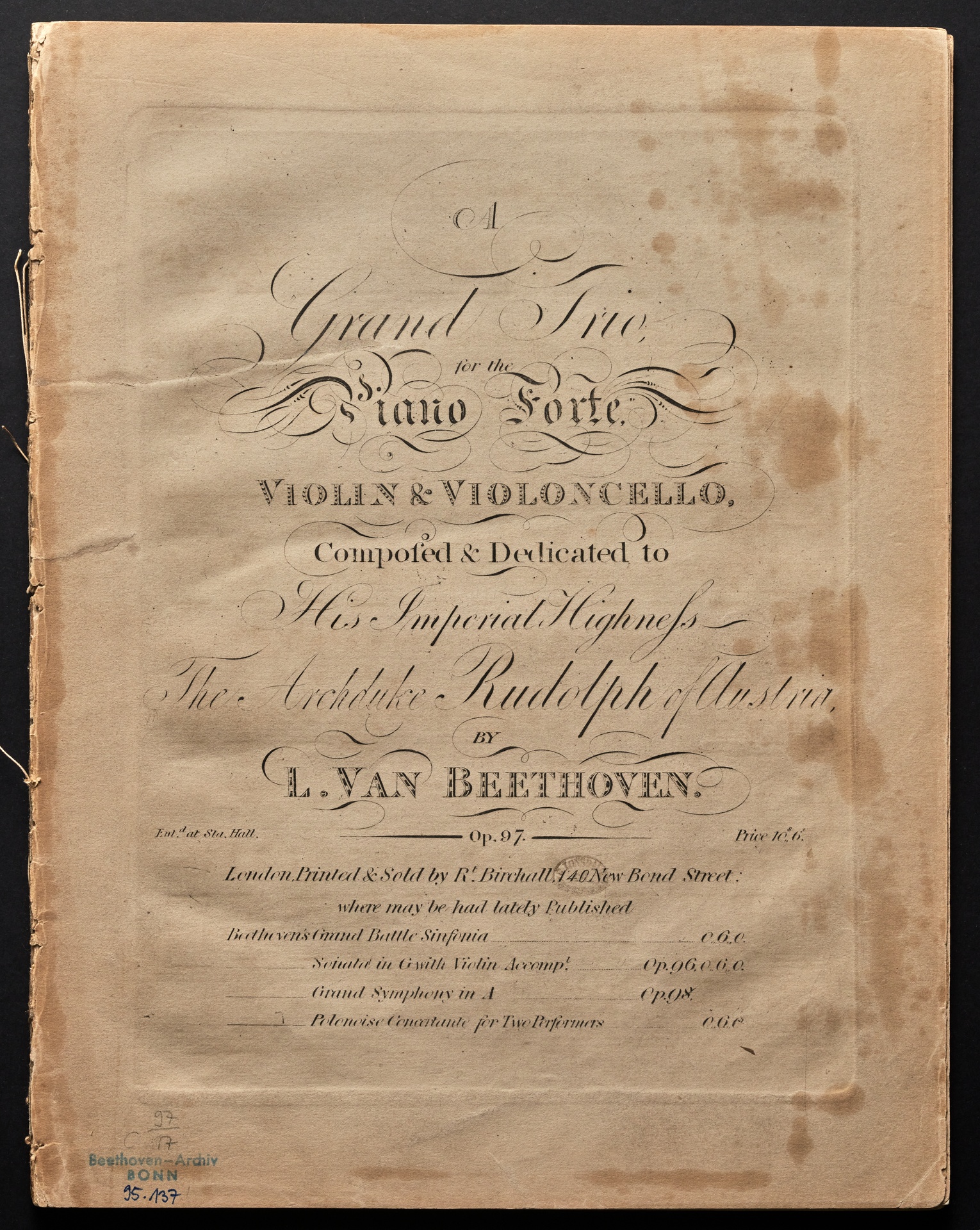 Ludwig van Beethoven, Trio für Klavier, Violine und Violoncello (B-Dur) op. 97, Stimmen, Birchall