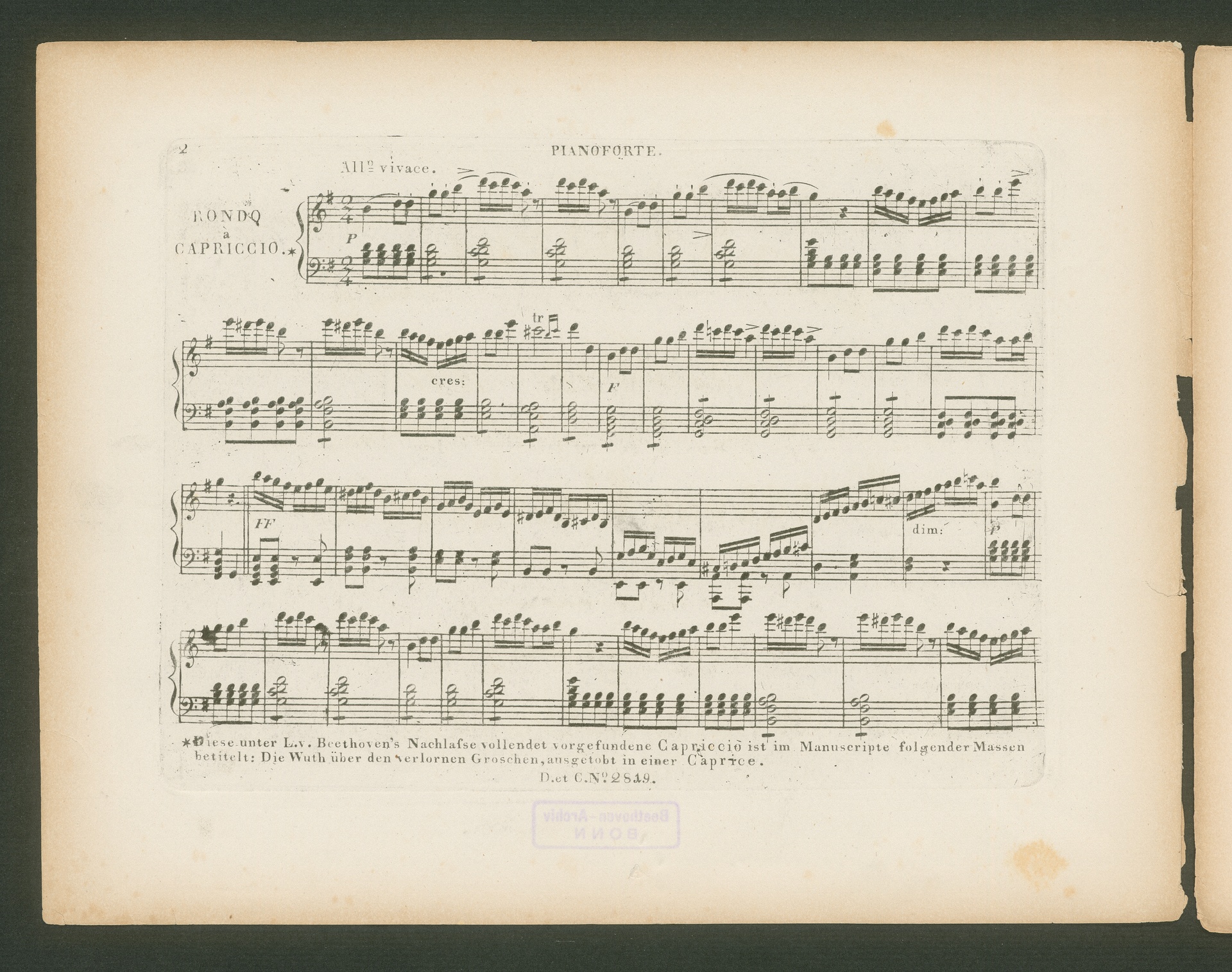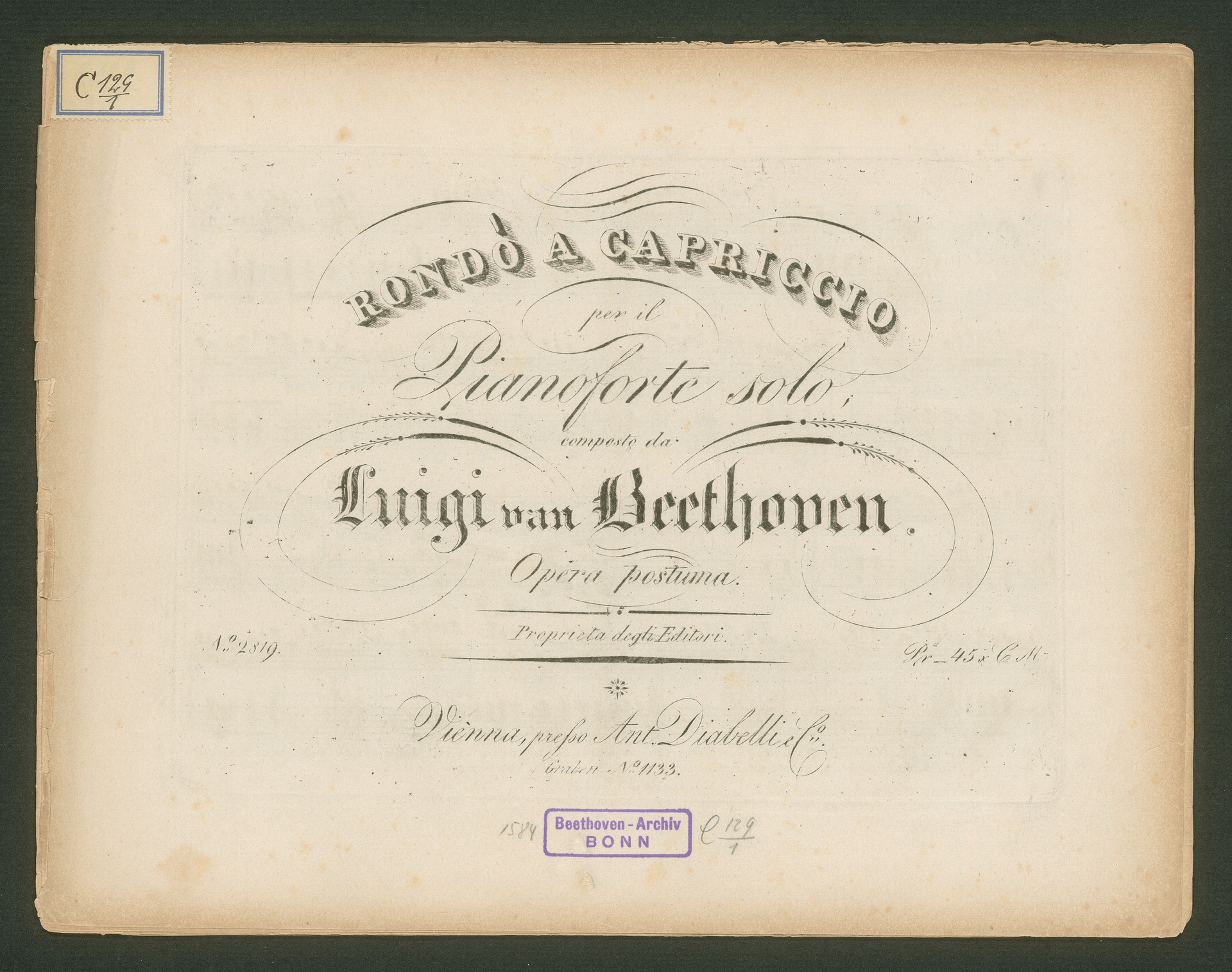 Ludwig van Beethoven, Rondo a capriccio für Klavier (G-Dur) op. 129, Diabelli, 2819